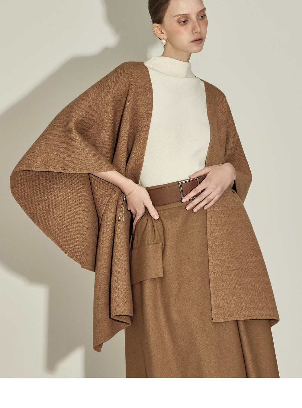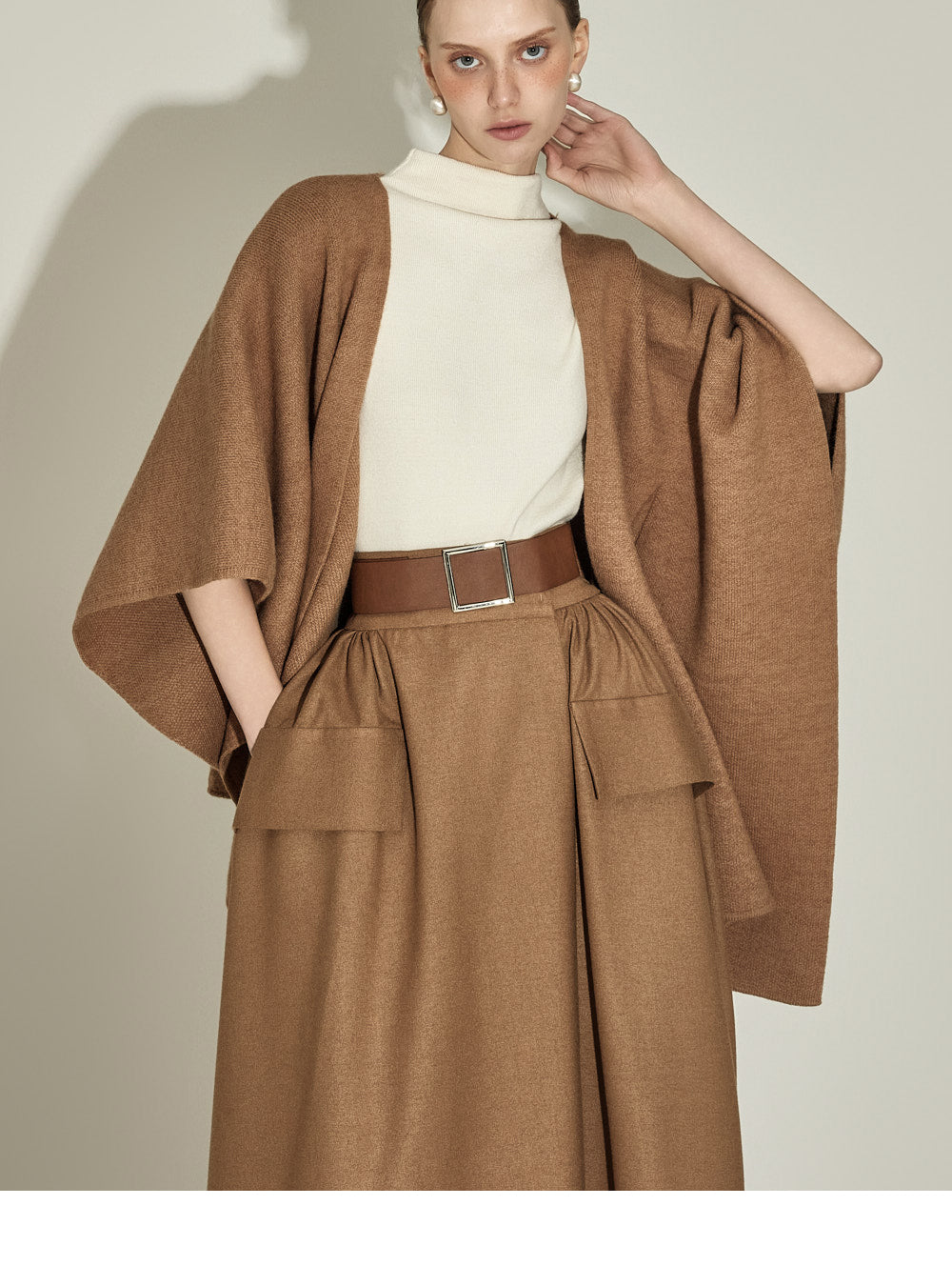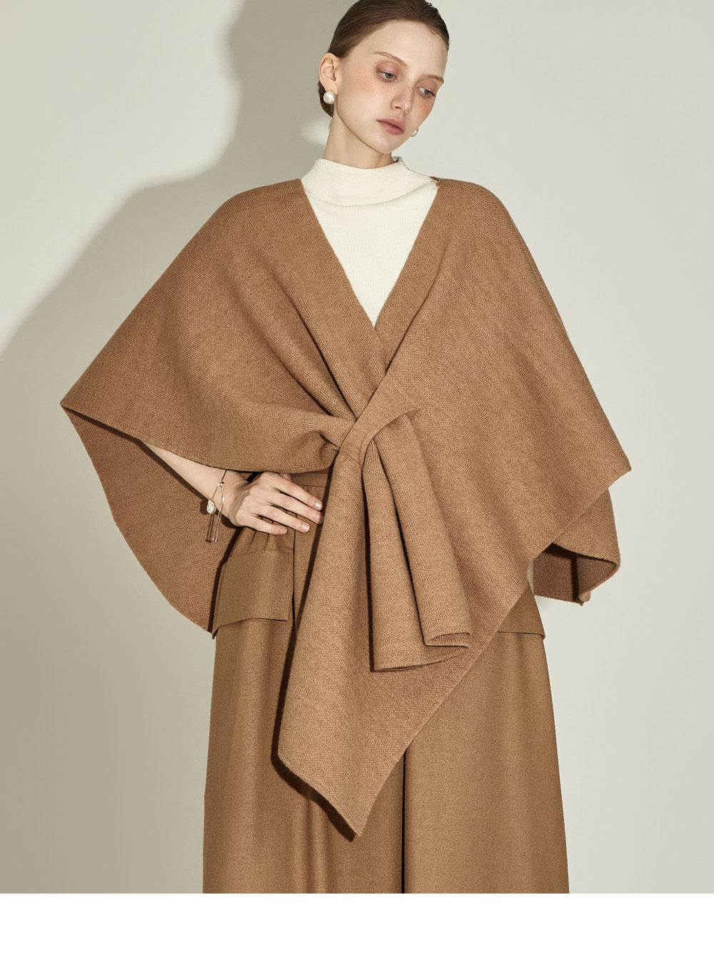 The 174cm model is wearing a size one, CAMEL color.