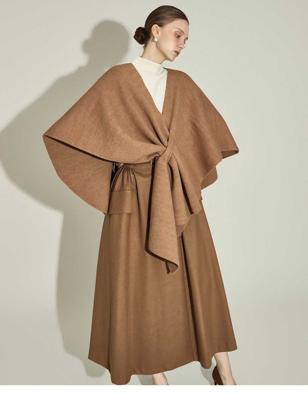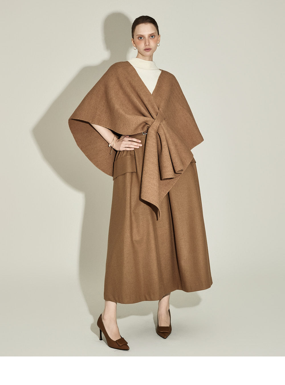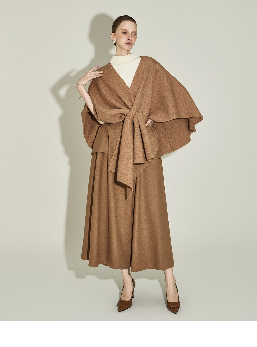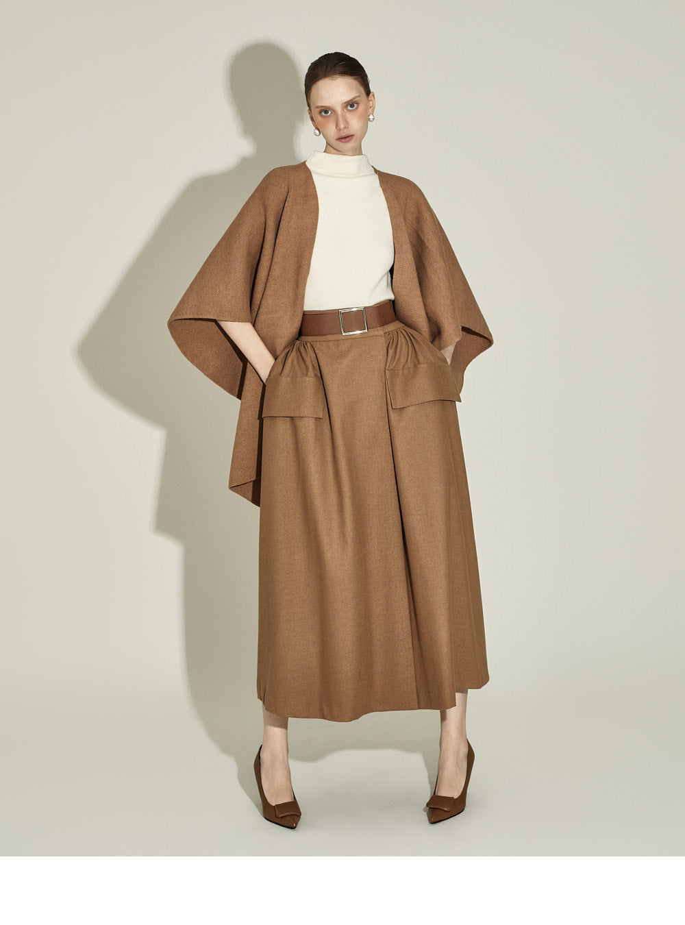 The 174cm model is wearing a size one, CAMEL color.