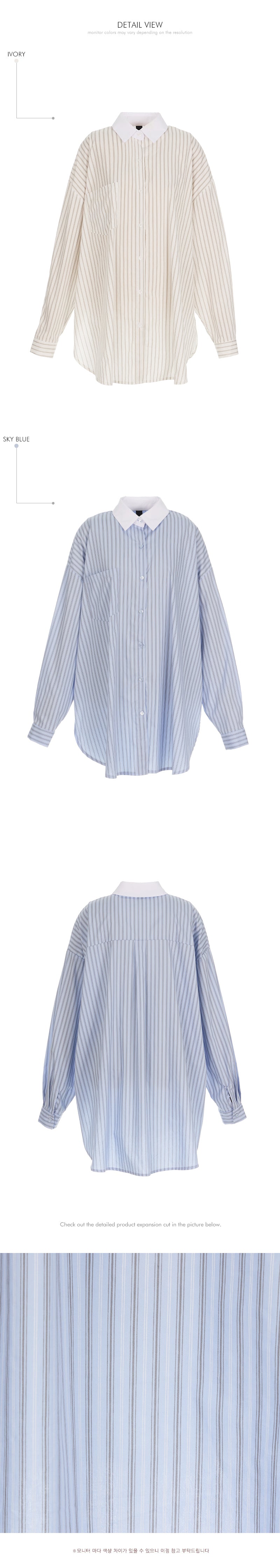 このシャツはコントラストカラーの襟が特徴です