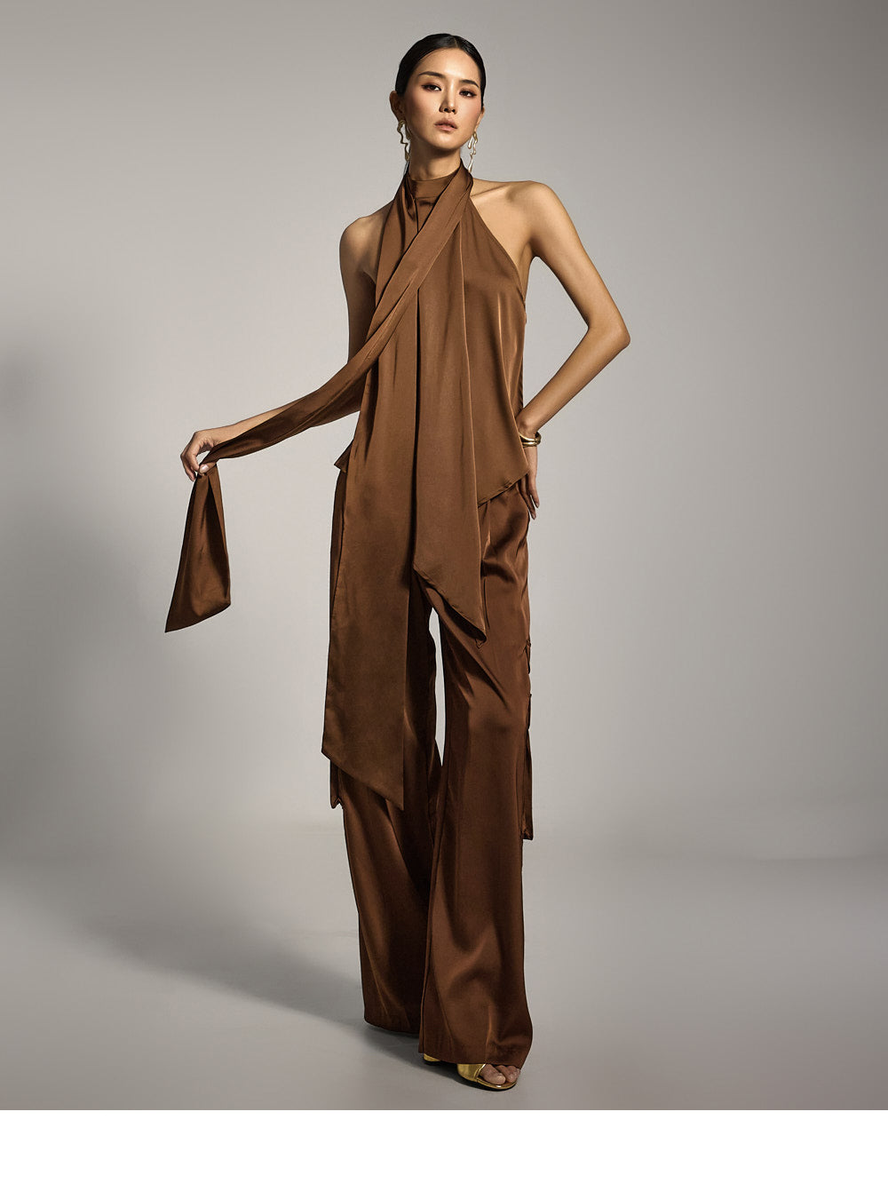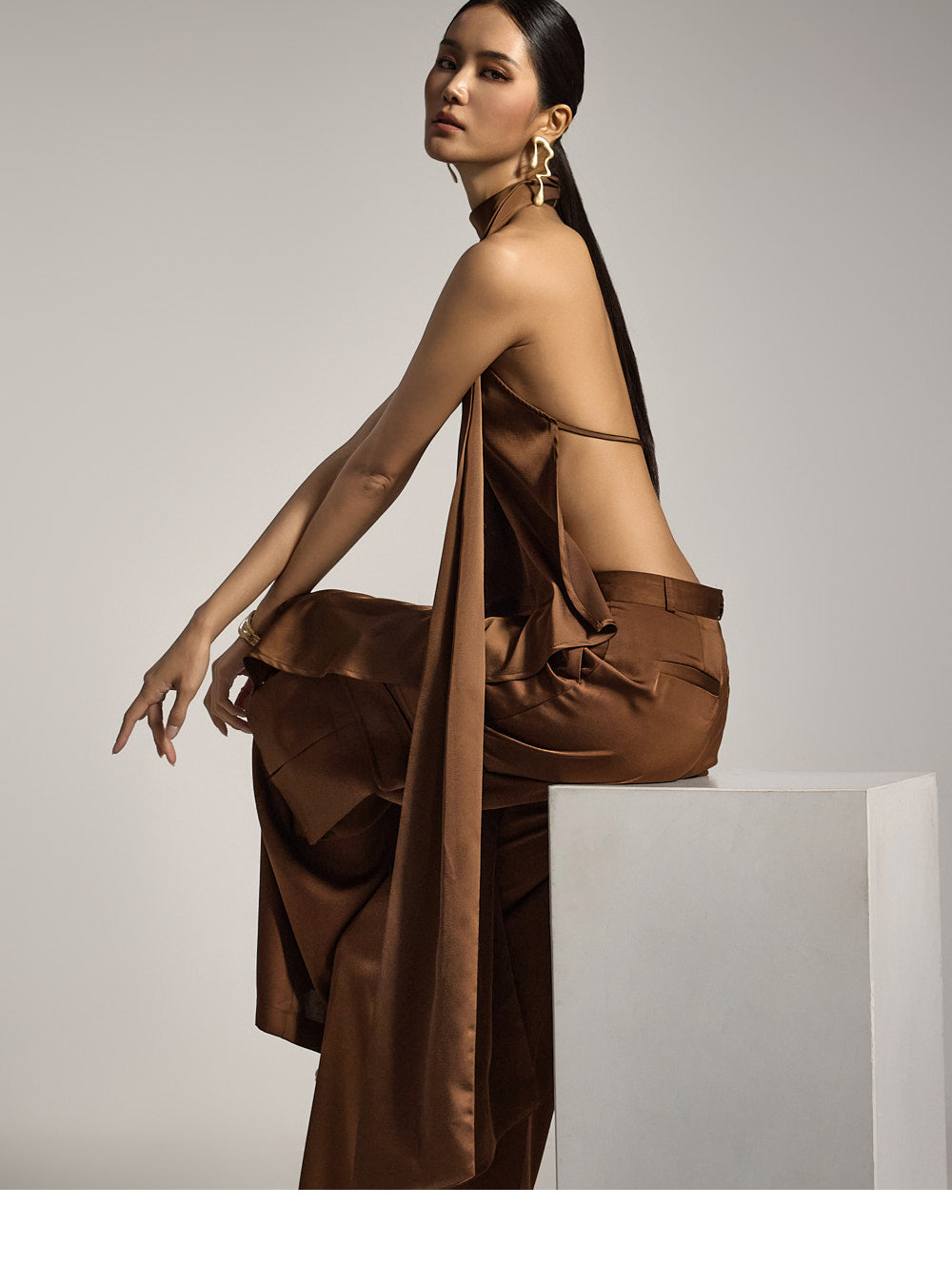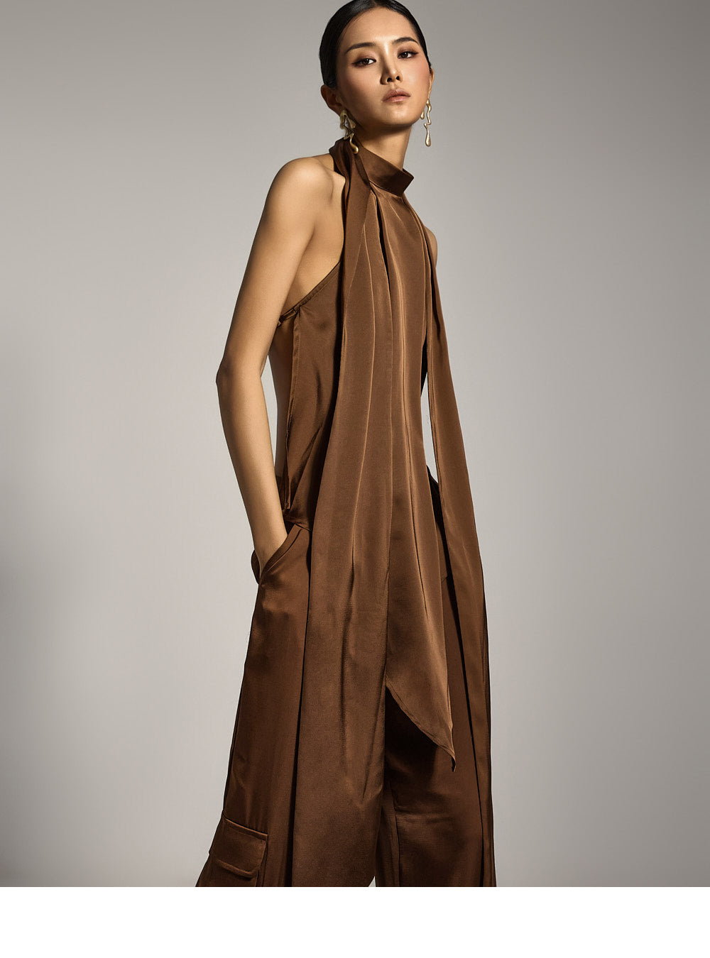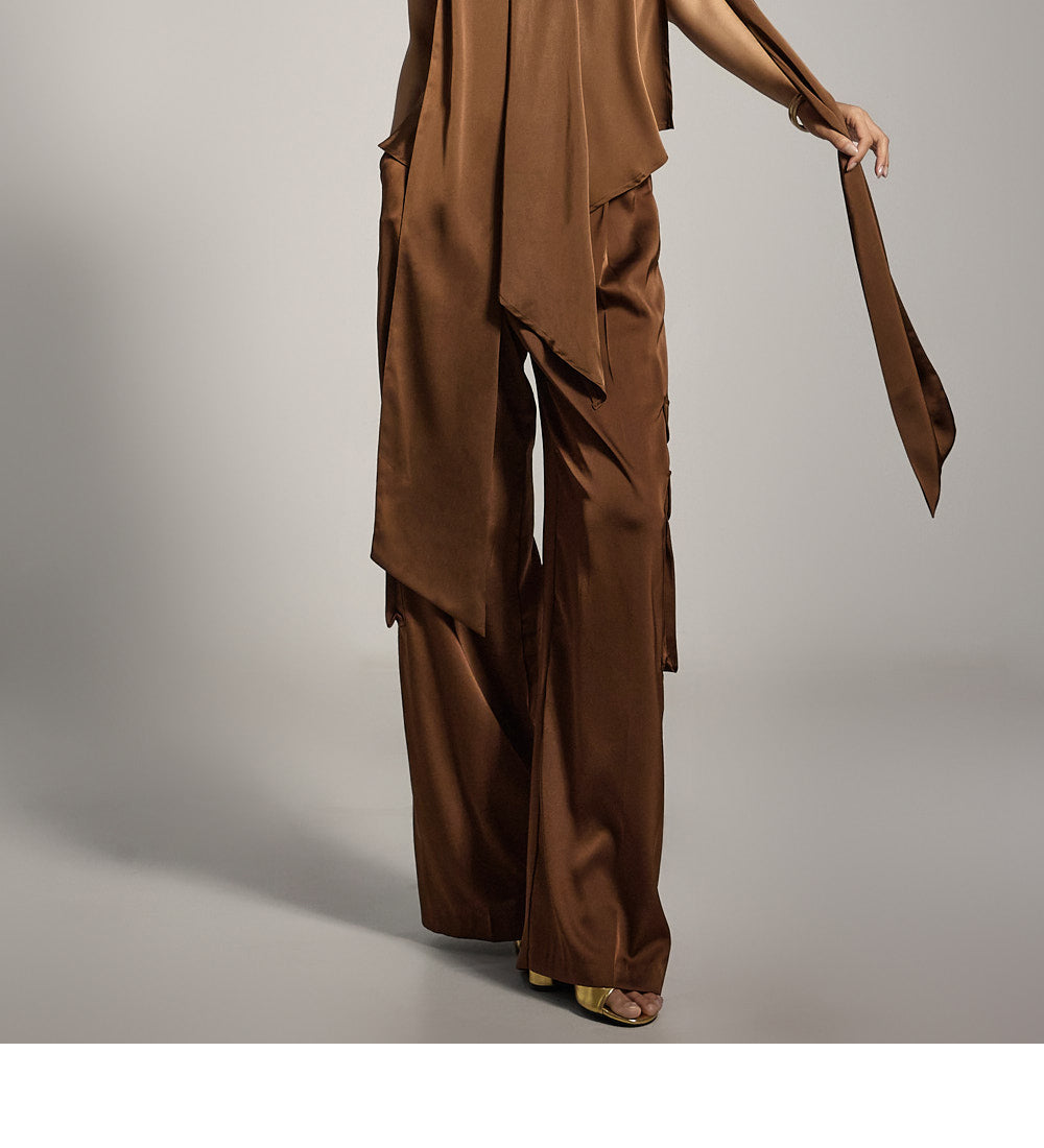 光沢のあるサテン素材を使用し、高級感と柔らかな肌触りを実現。