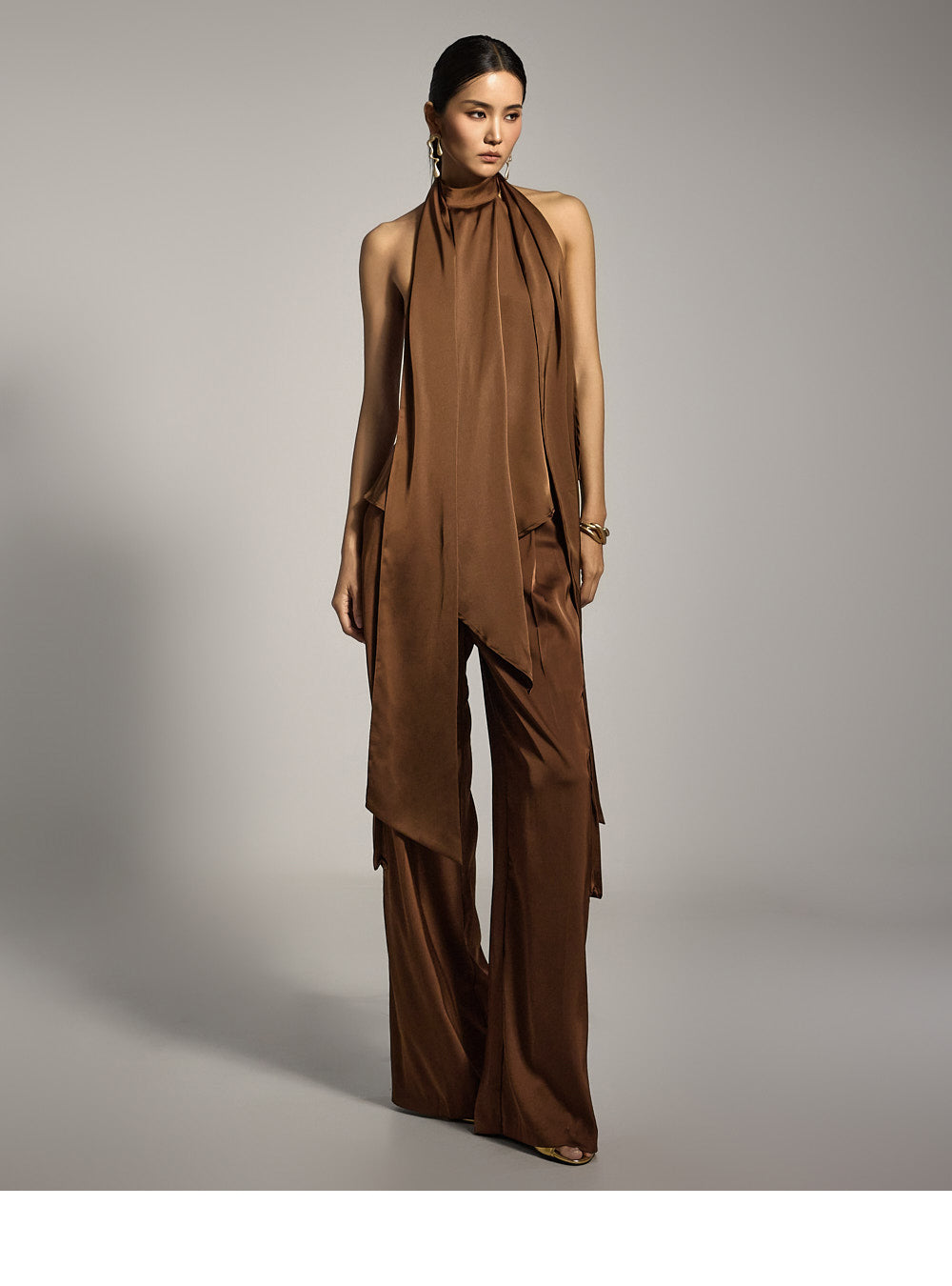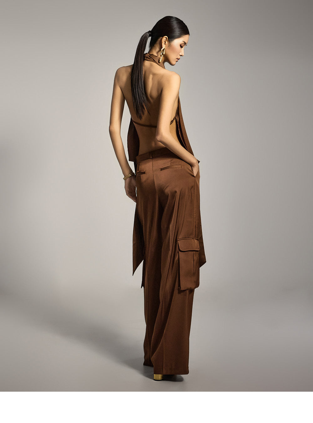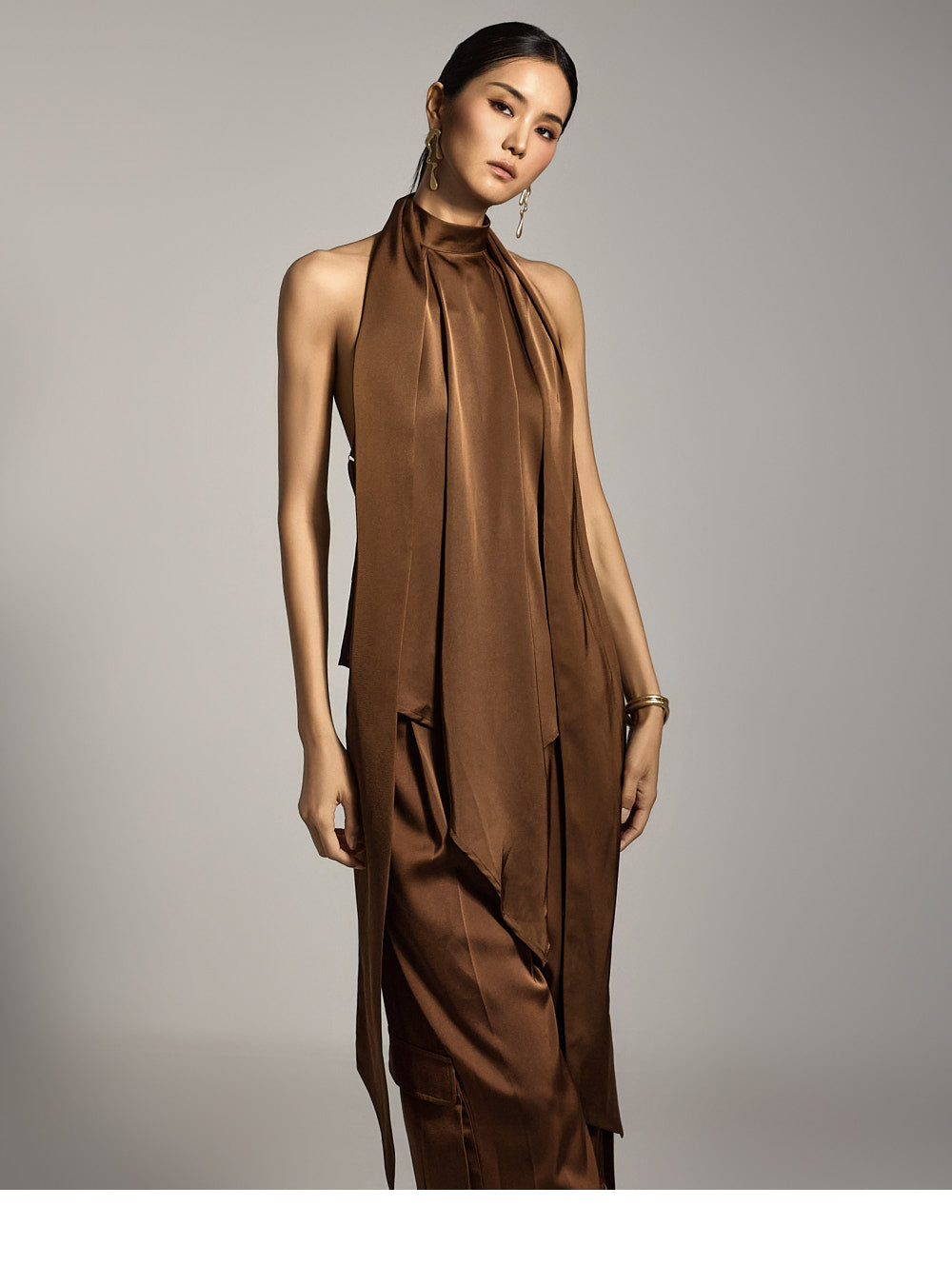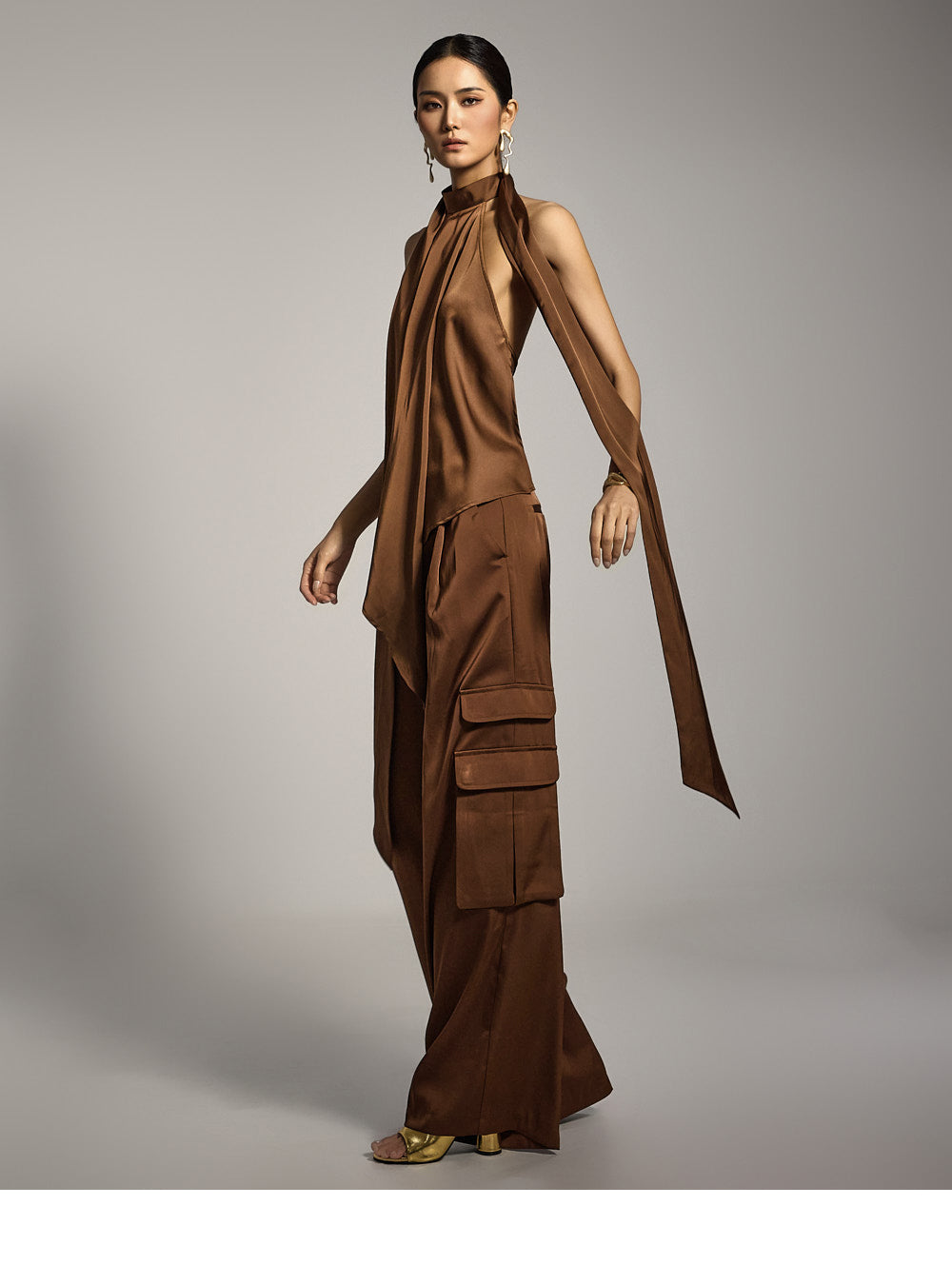 光沢のあるサテン素材を使用し、高級感と柔らかな肌触りを実現。