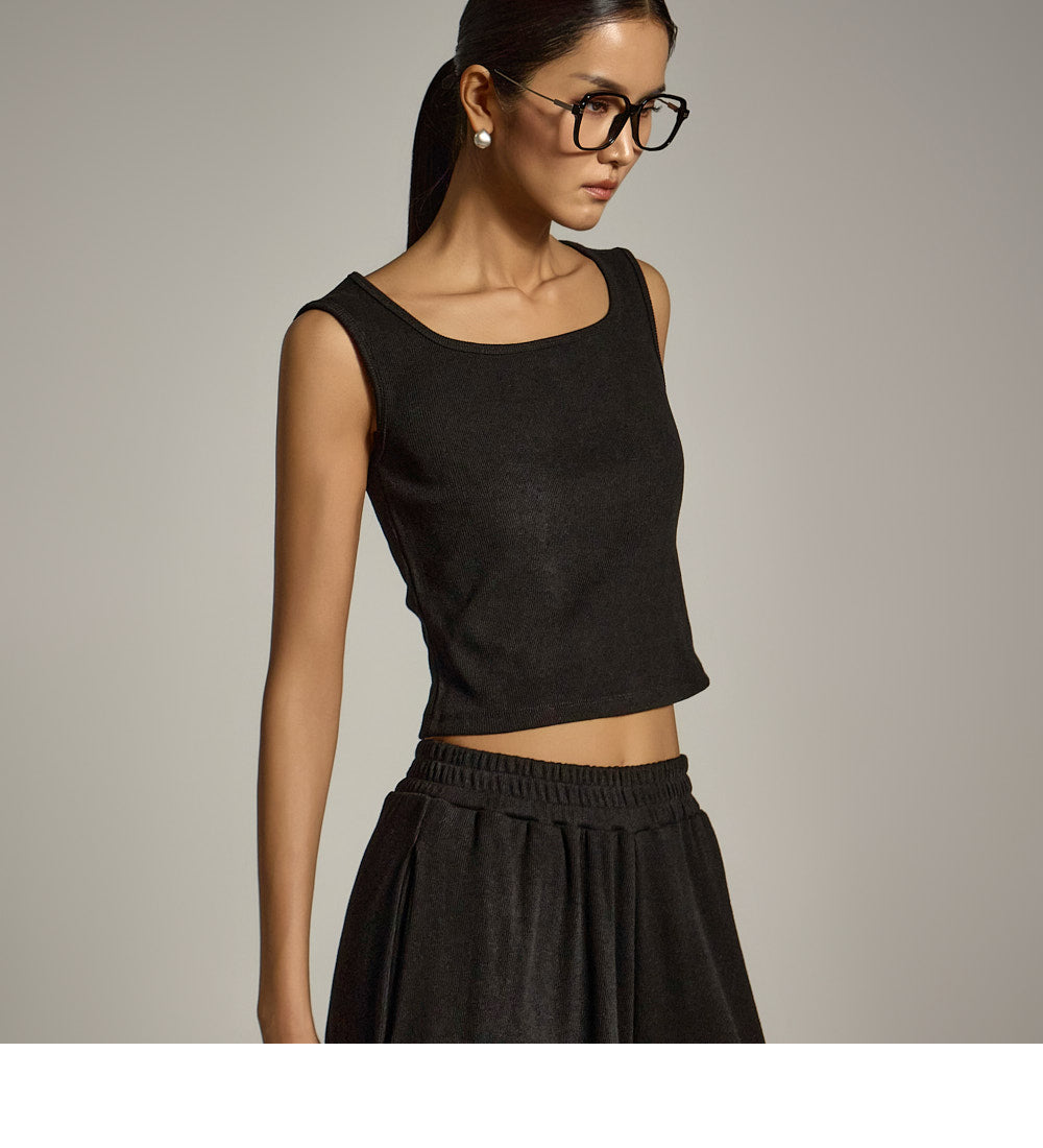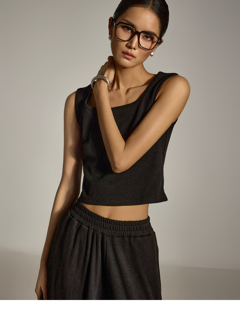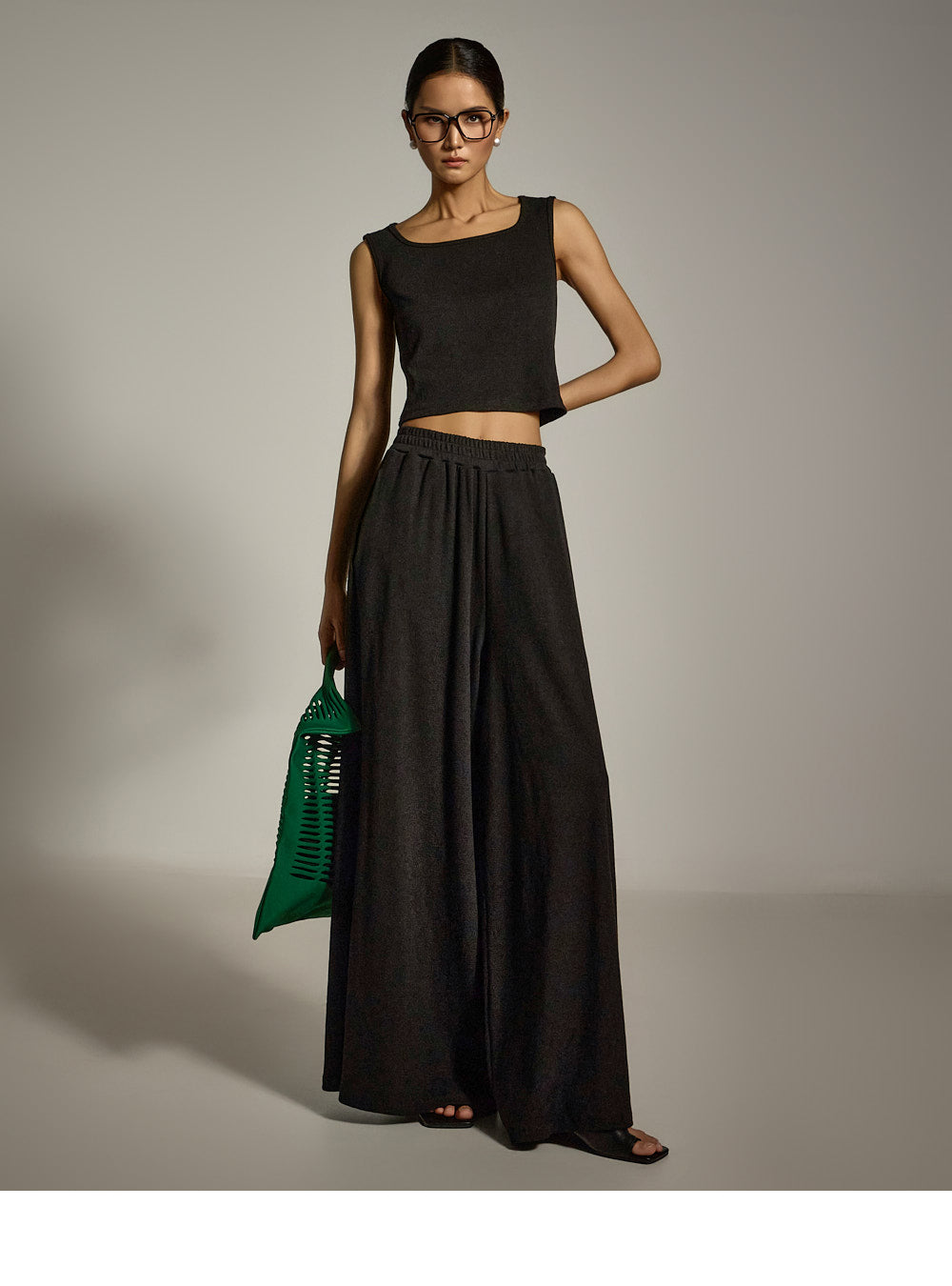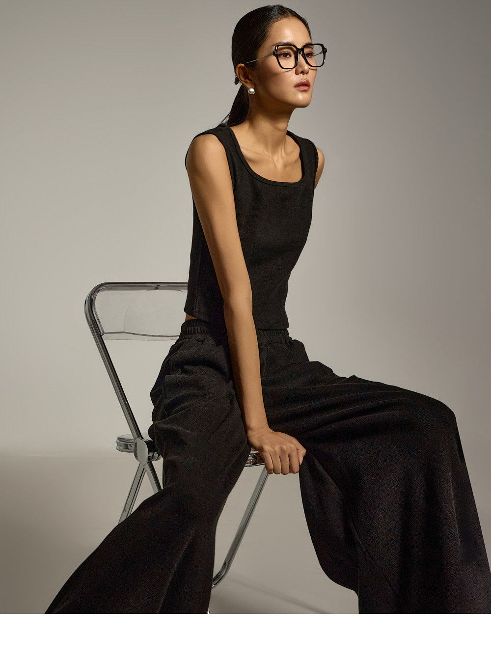 スクエアクロップトップとワイドトレーニングパンツのカジュアルセットです。