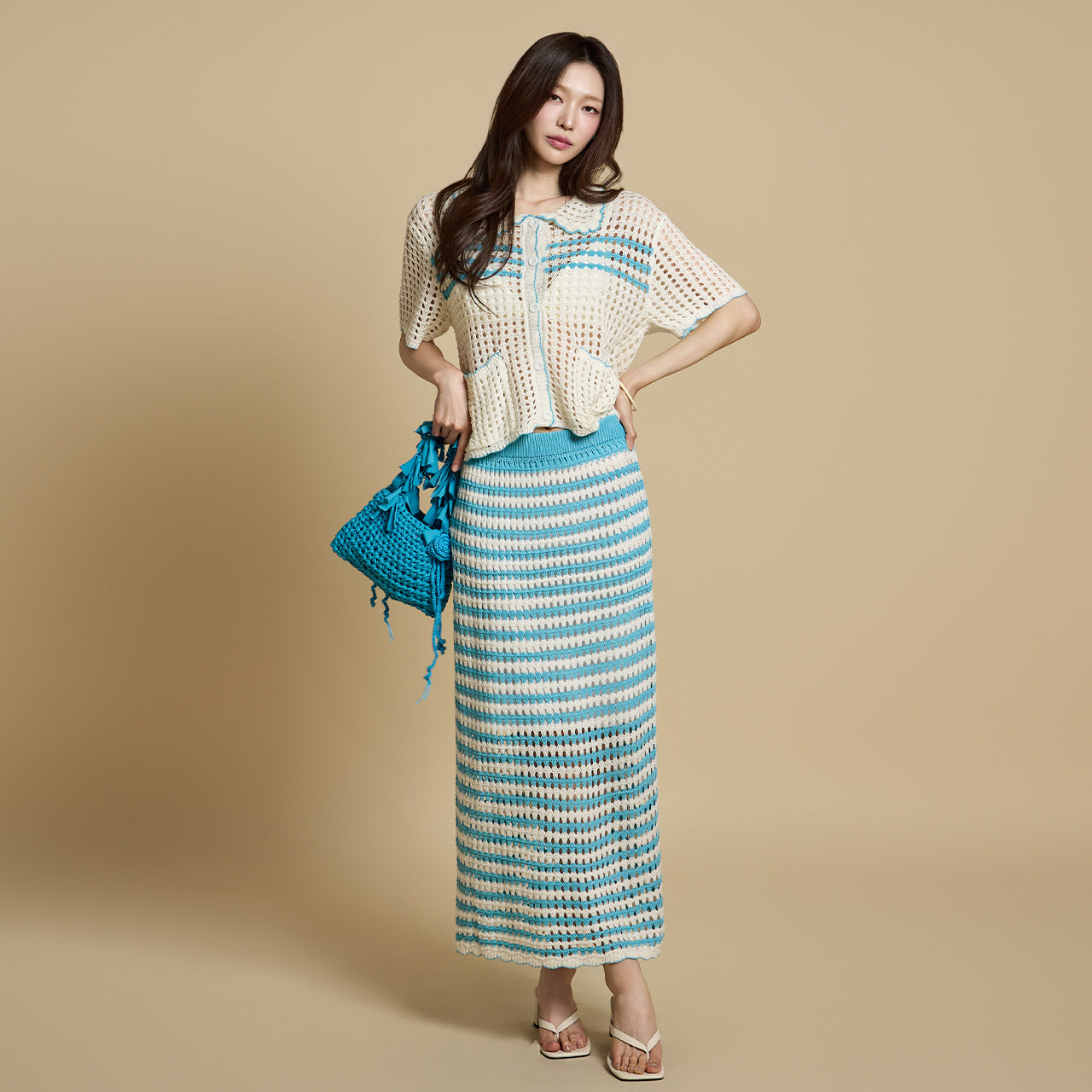涼しげでカジュアルなカーディガンとスカートのセットです。