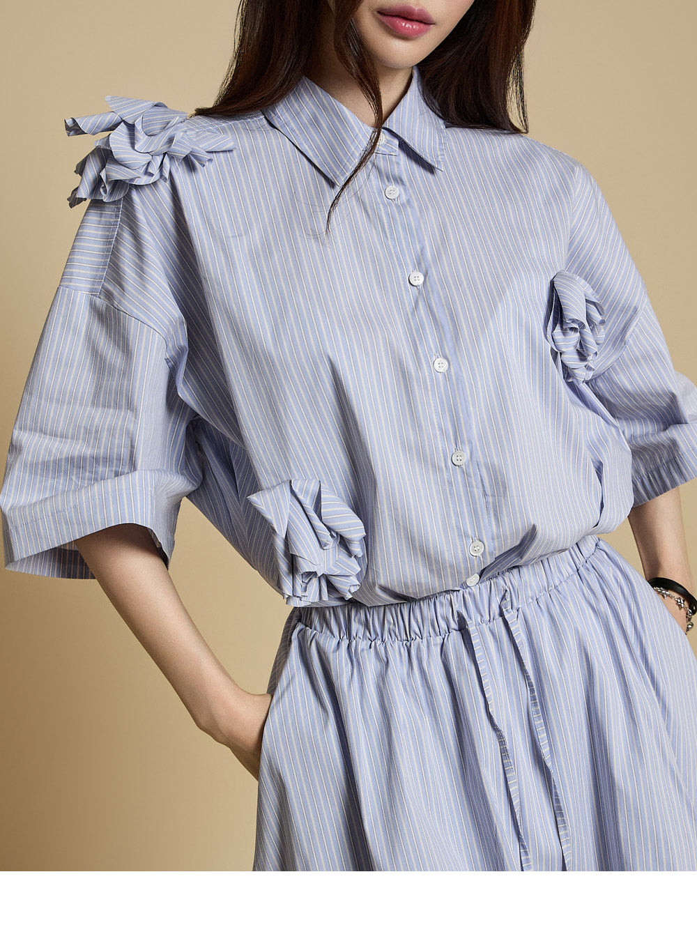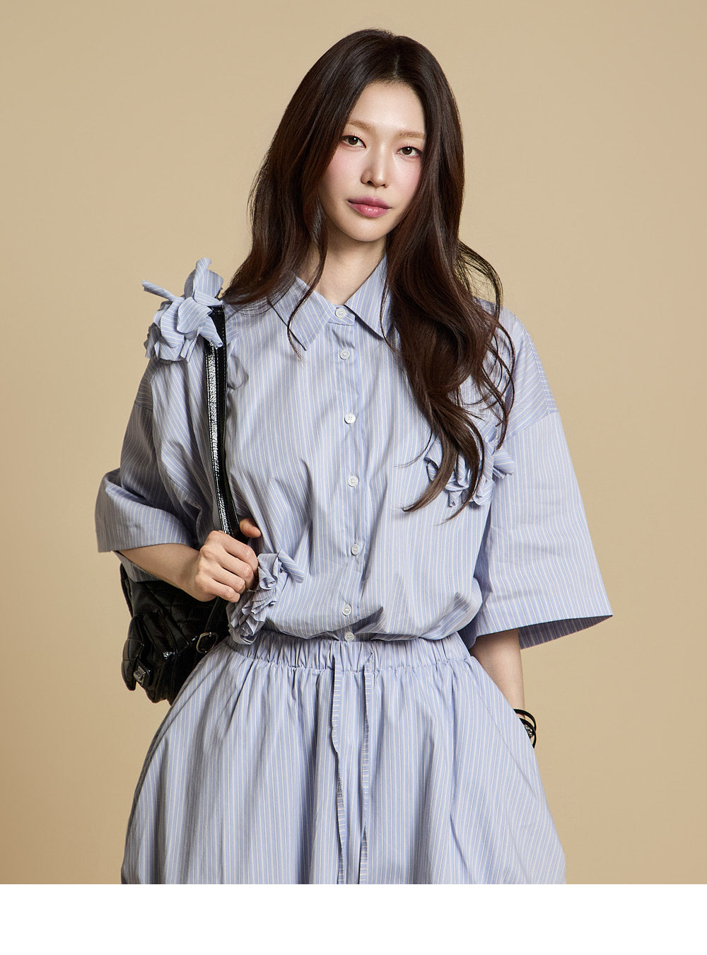シャツとスカートを合わせて着ると、素敵なカジュアルルックが完成します。