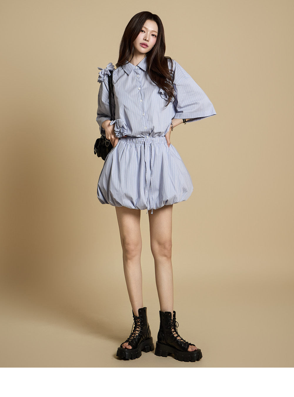スカート部分はバルーンシルエットとミニ丈で、華やかさをプラス。