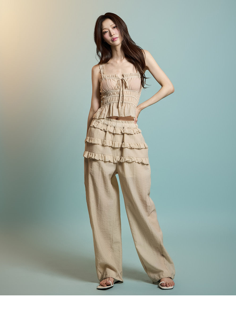 フリルの裾とフロントのタイディテールが魅力的なタッチを添えます。
