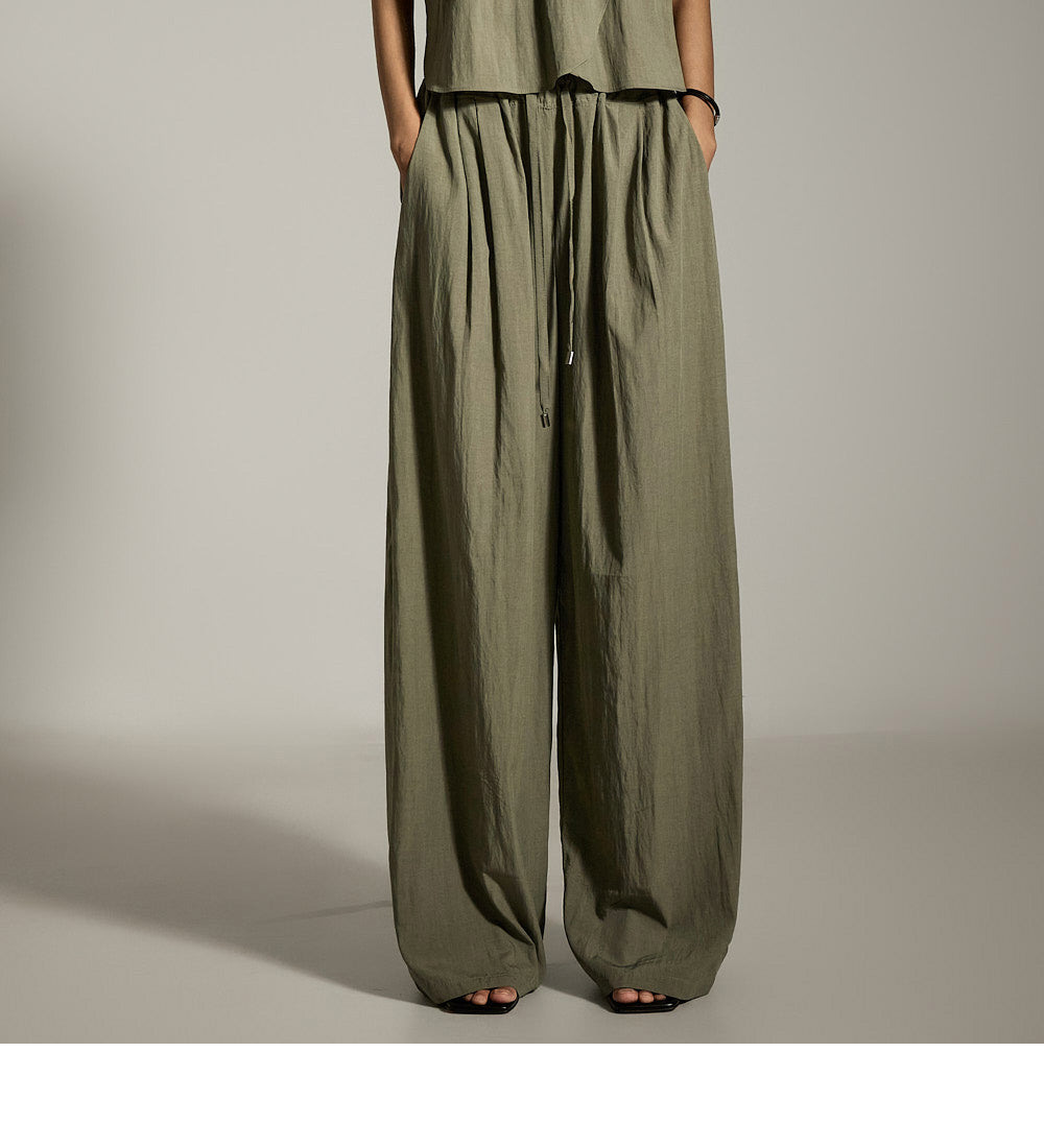 パンツは伸縮性のあるウエストバンドとドローストリングを備え、快適な着心地を提供します。