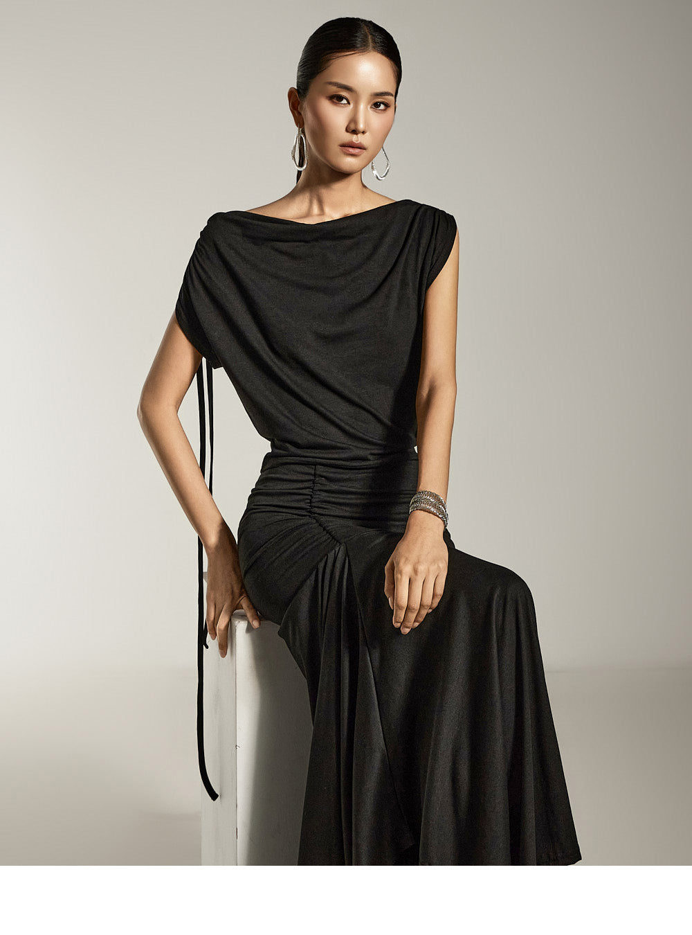 自然に流れるドレープがエレガントで洗練された雰囲気を添えます。