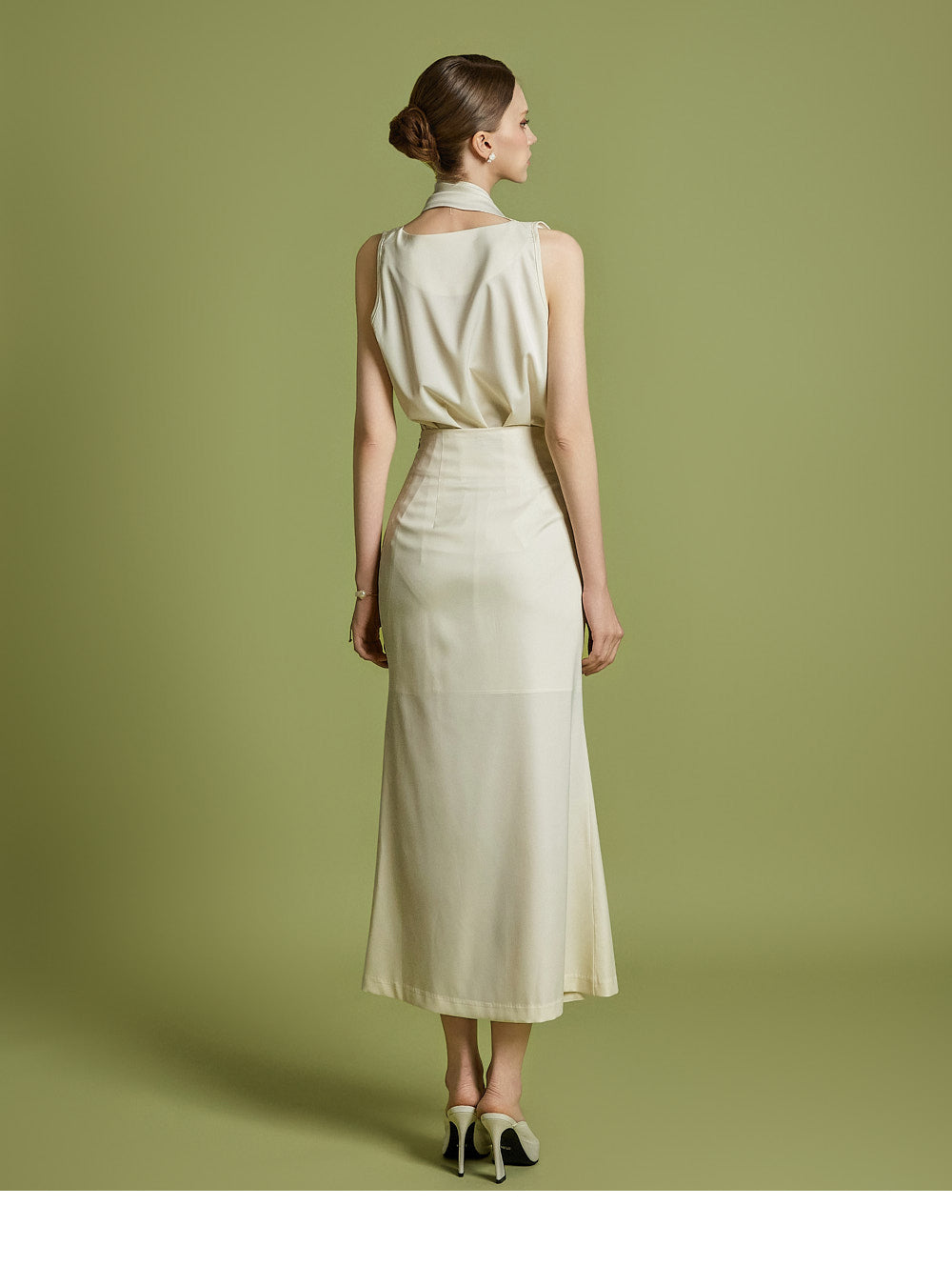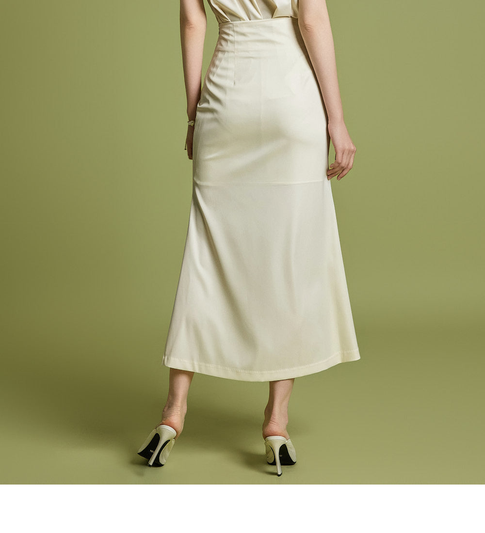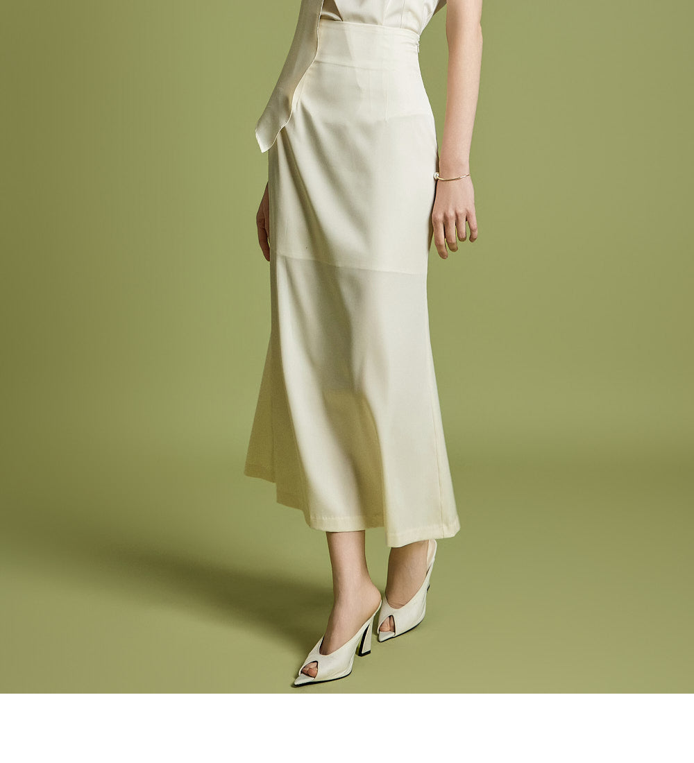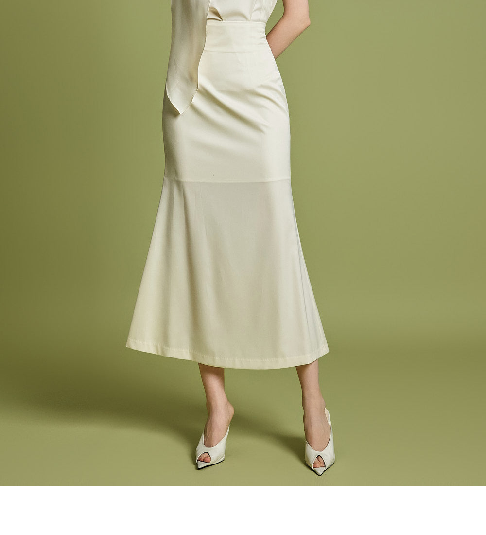 スカートは女性らしいマーメイドカットで仕立てられています。