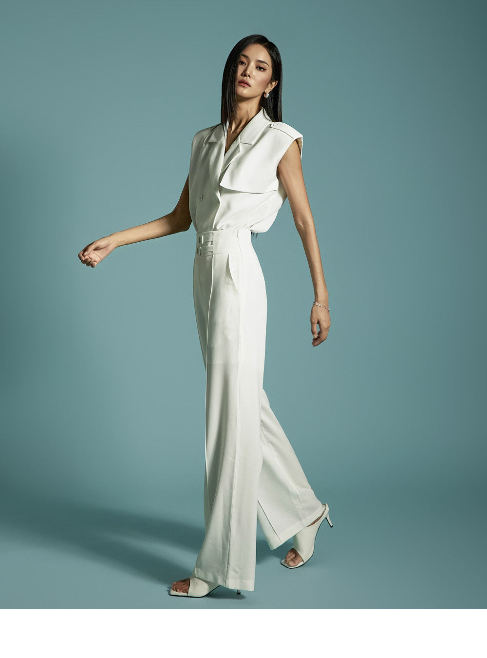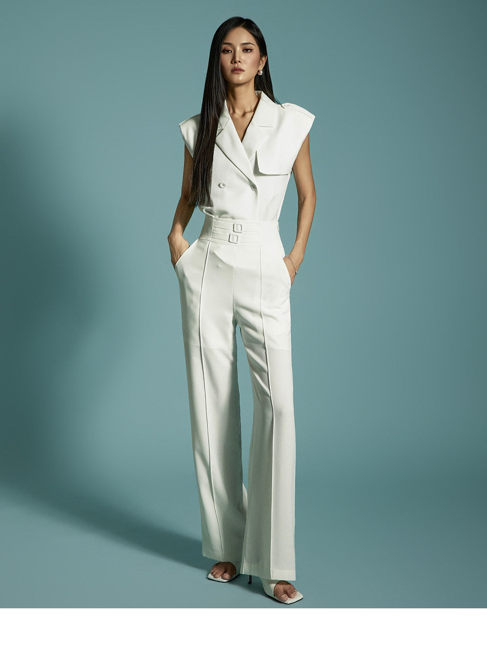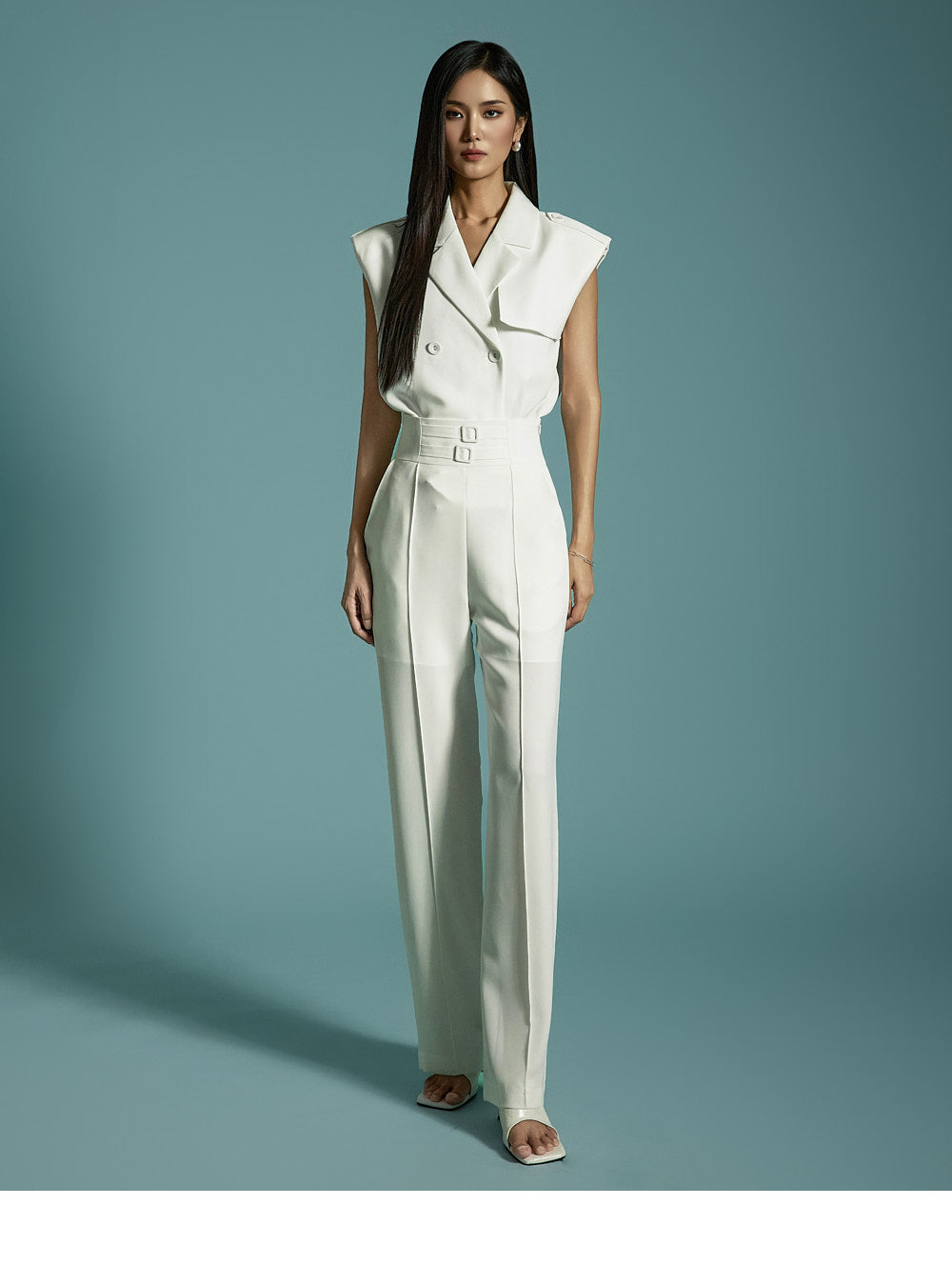 すっきりとした構造的な仕立てにより、フォーマルな場面にも普段のスタイリングにも適したセットとなっています。