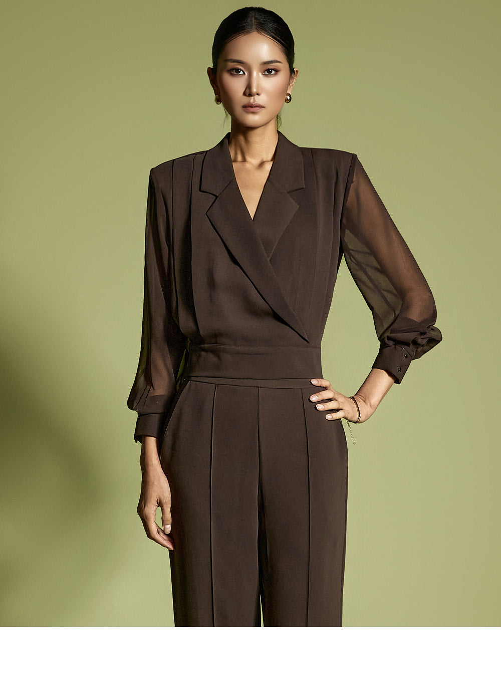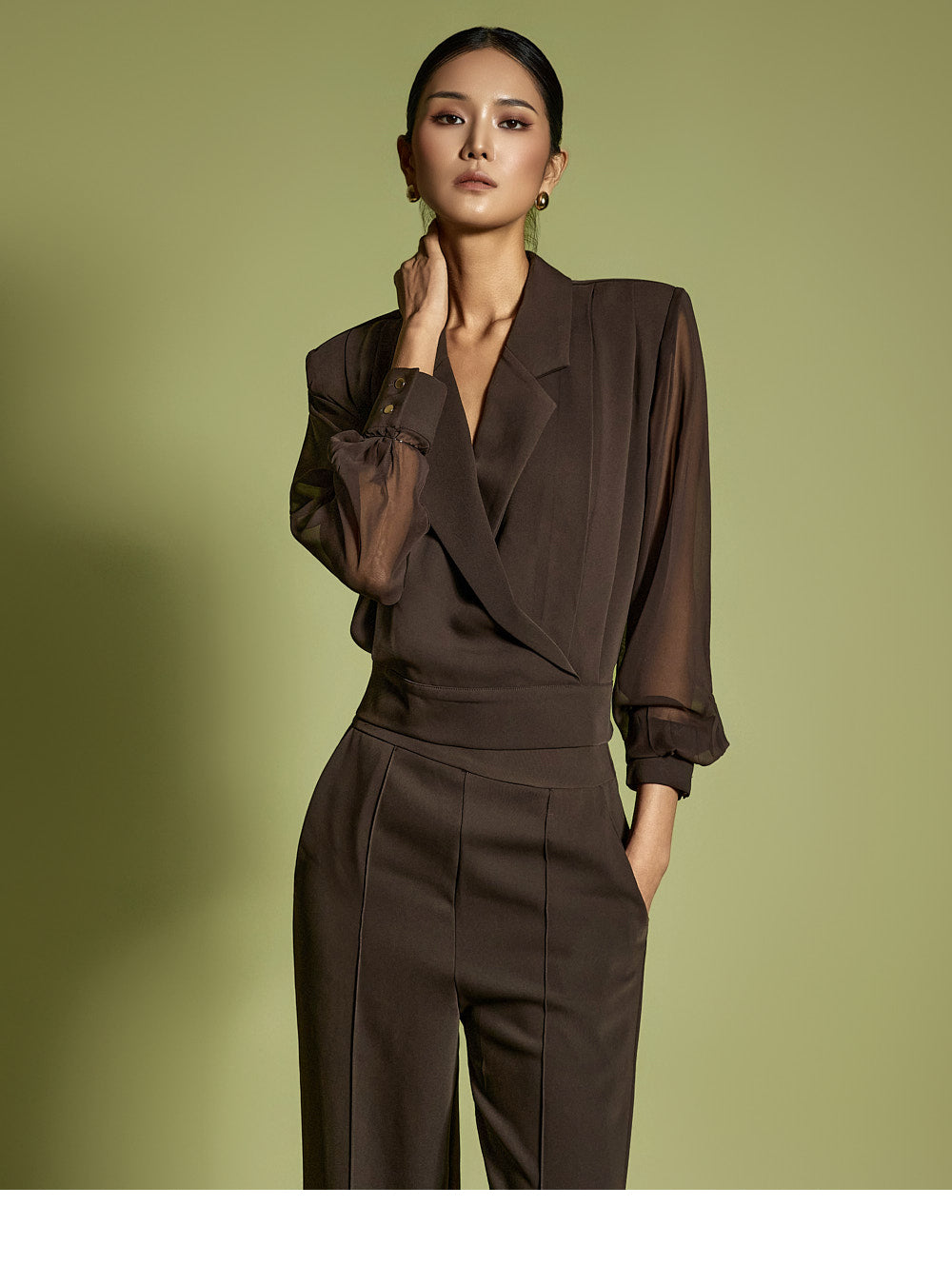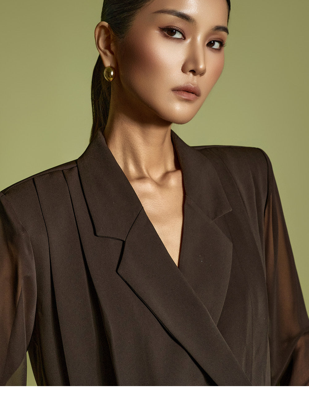 gold buttons on the cuffs and sheer sleeves add delicate accents,