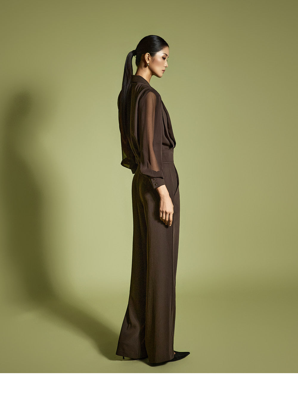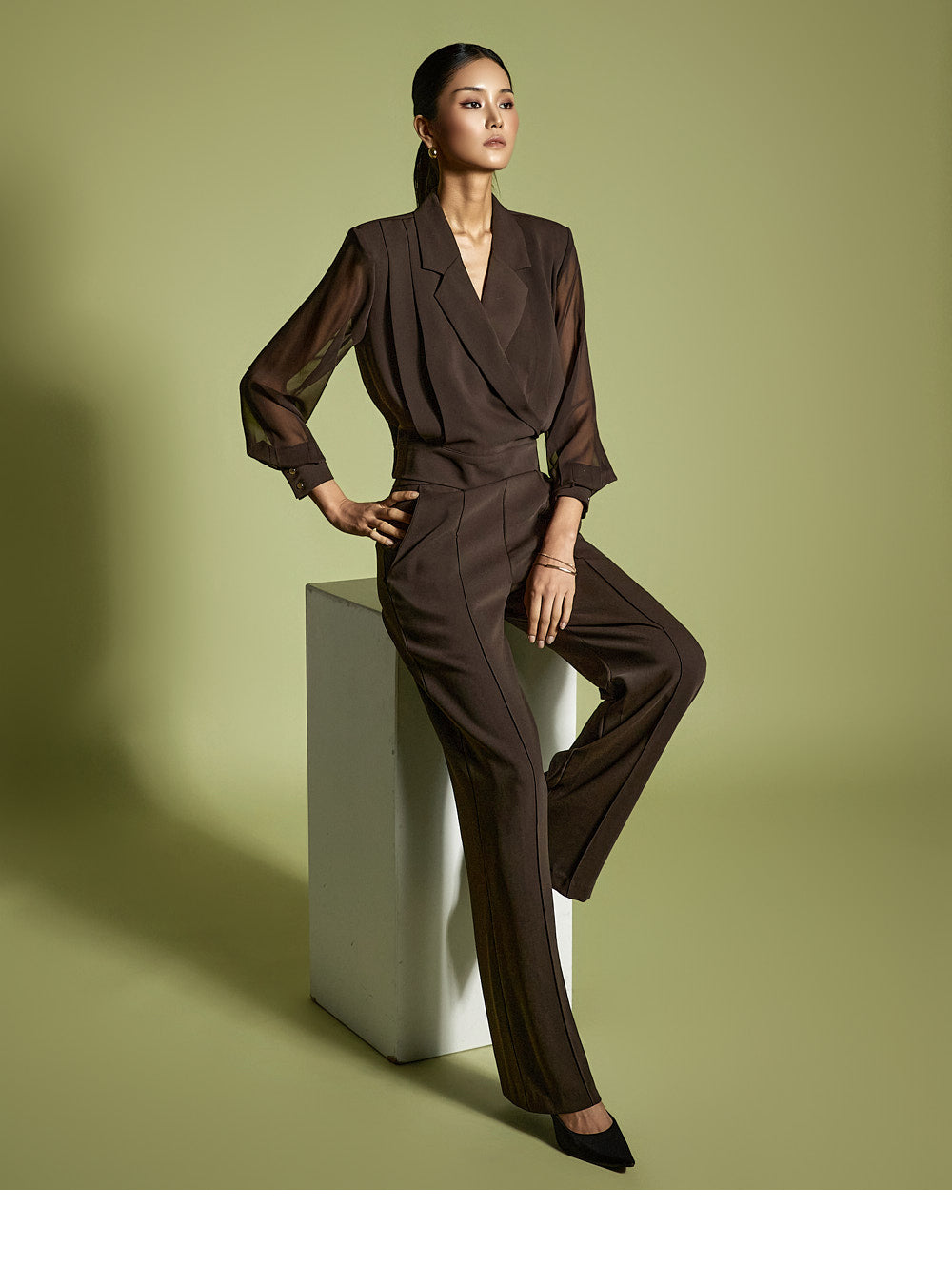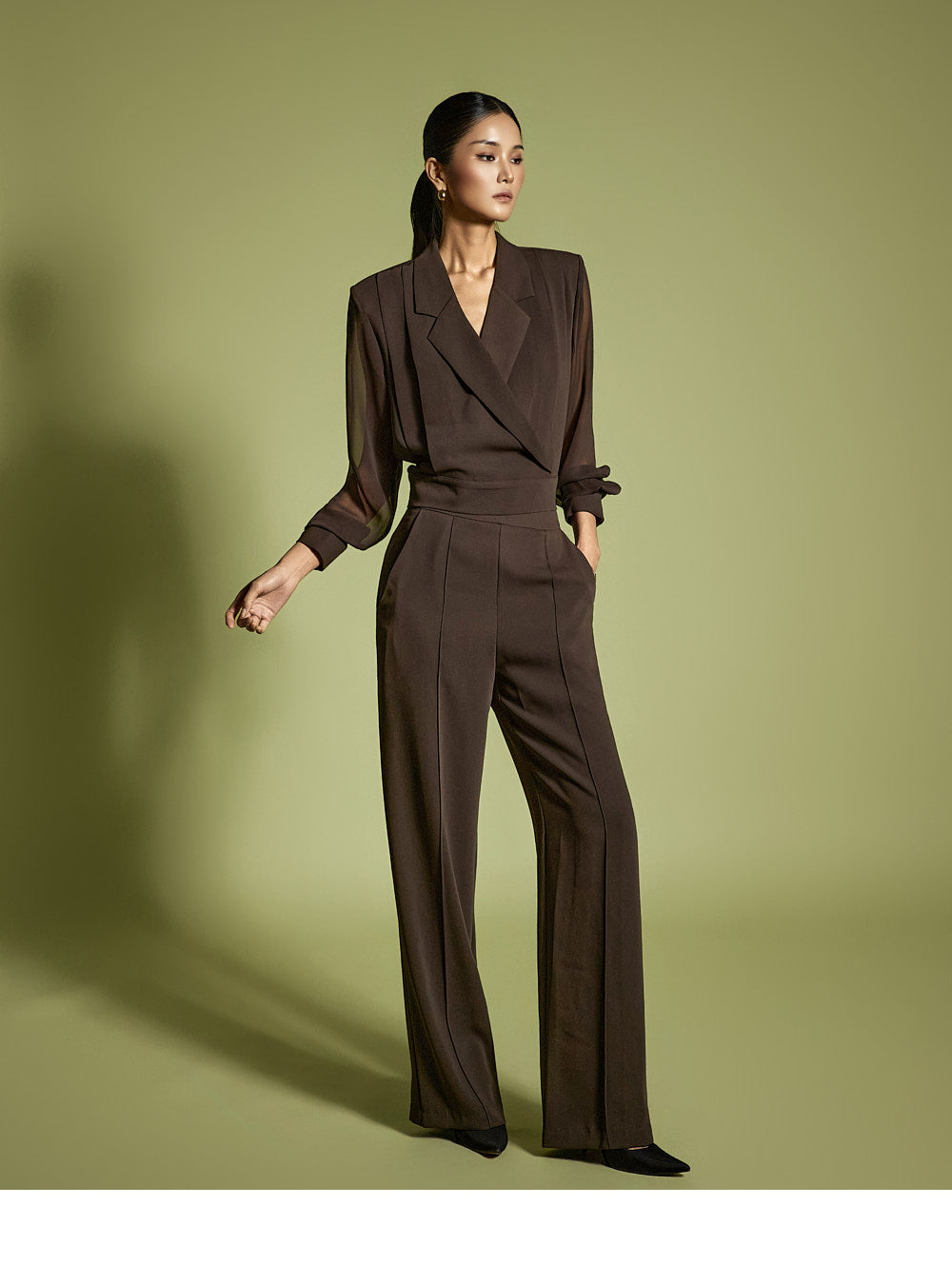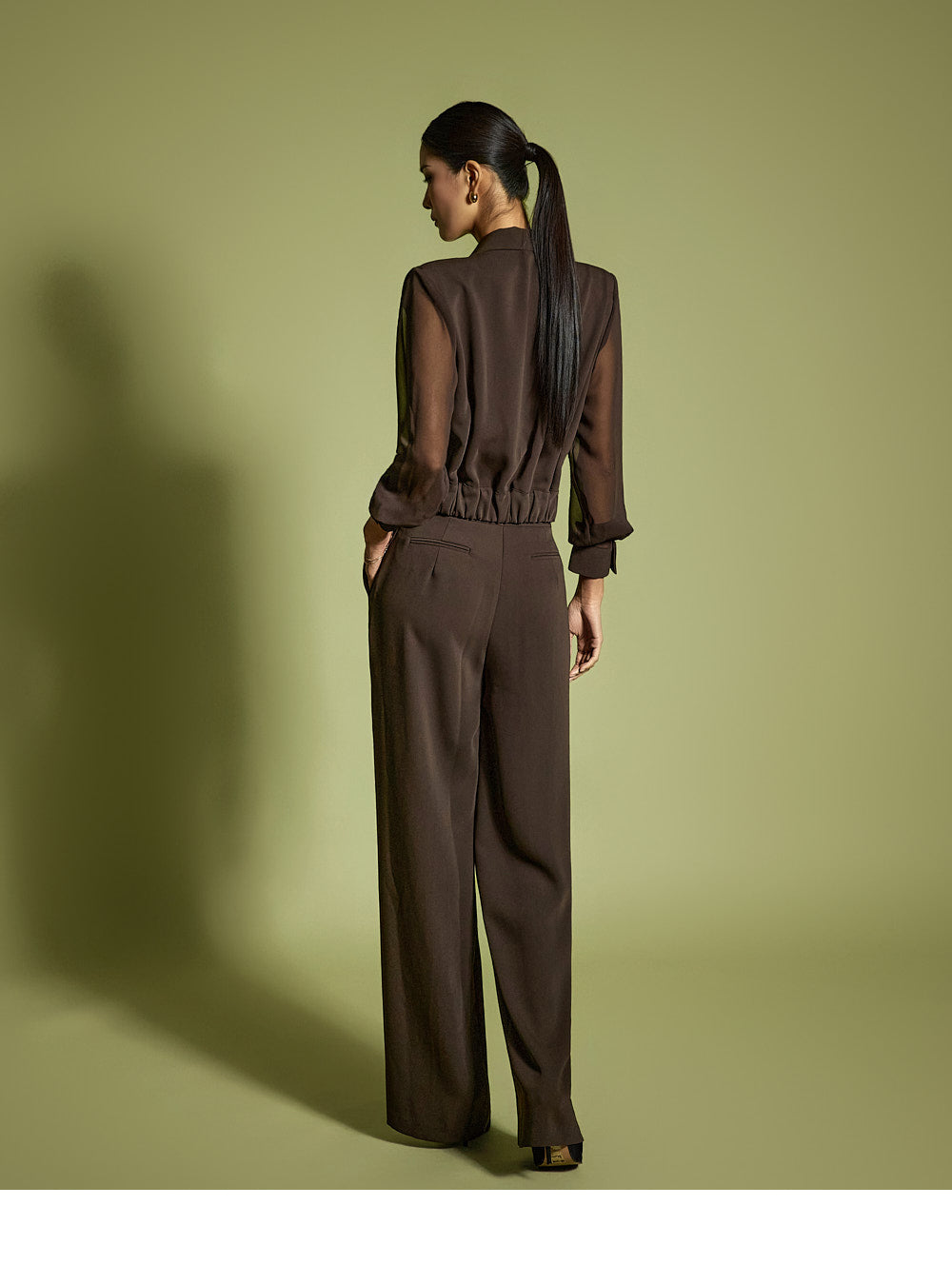 gold buttons on the cuffs and sheer sleeves add delicate accents,