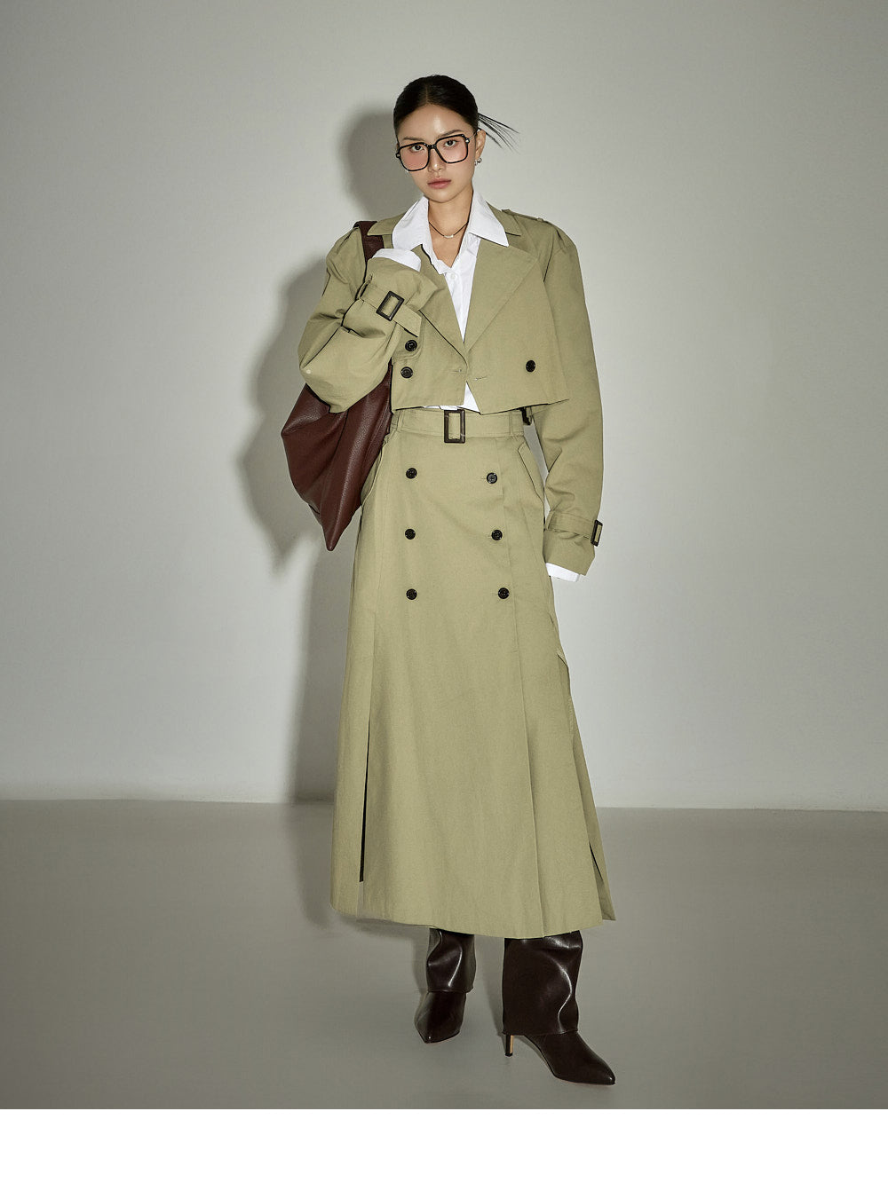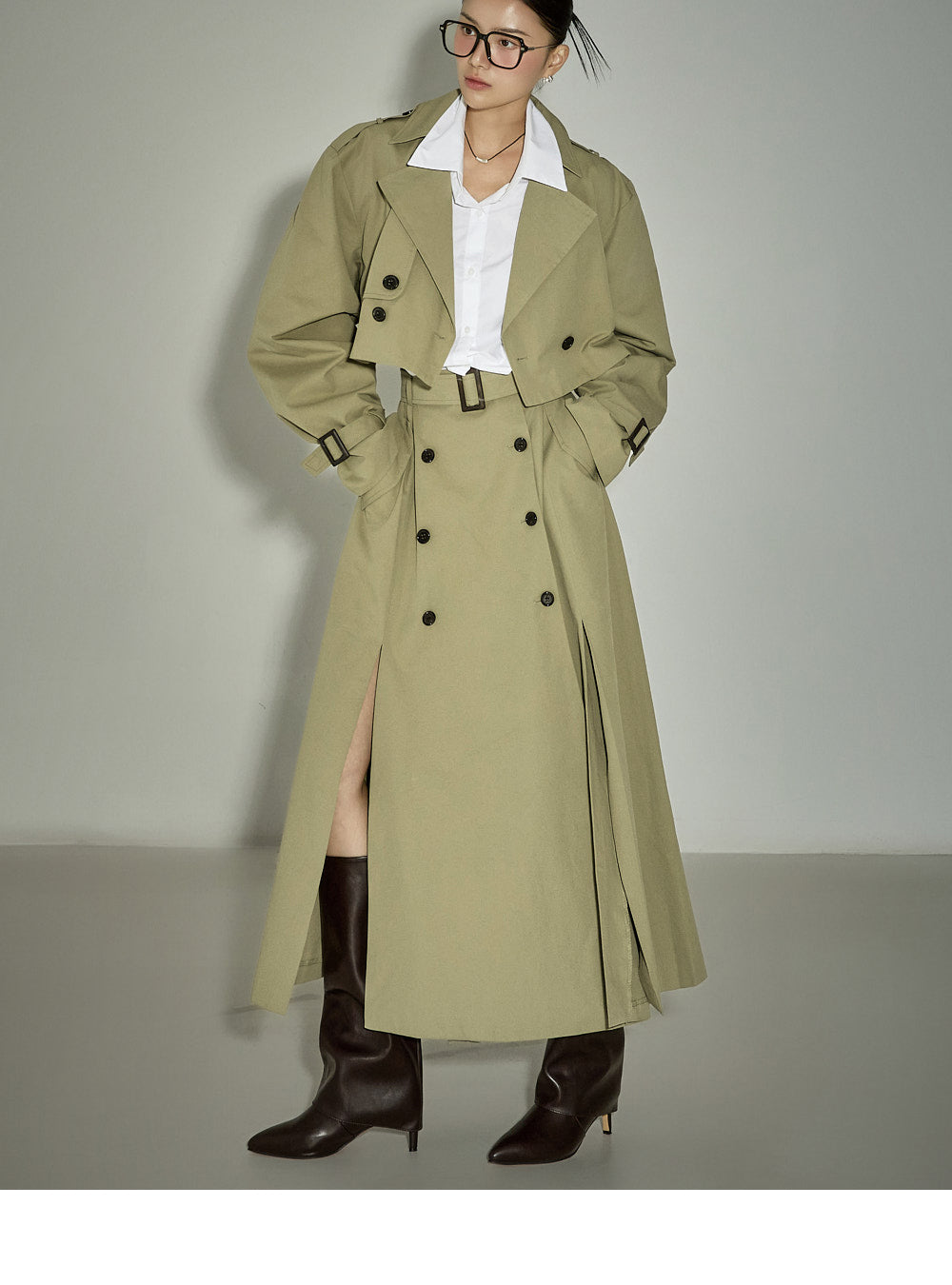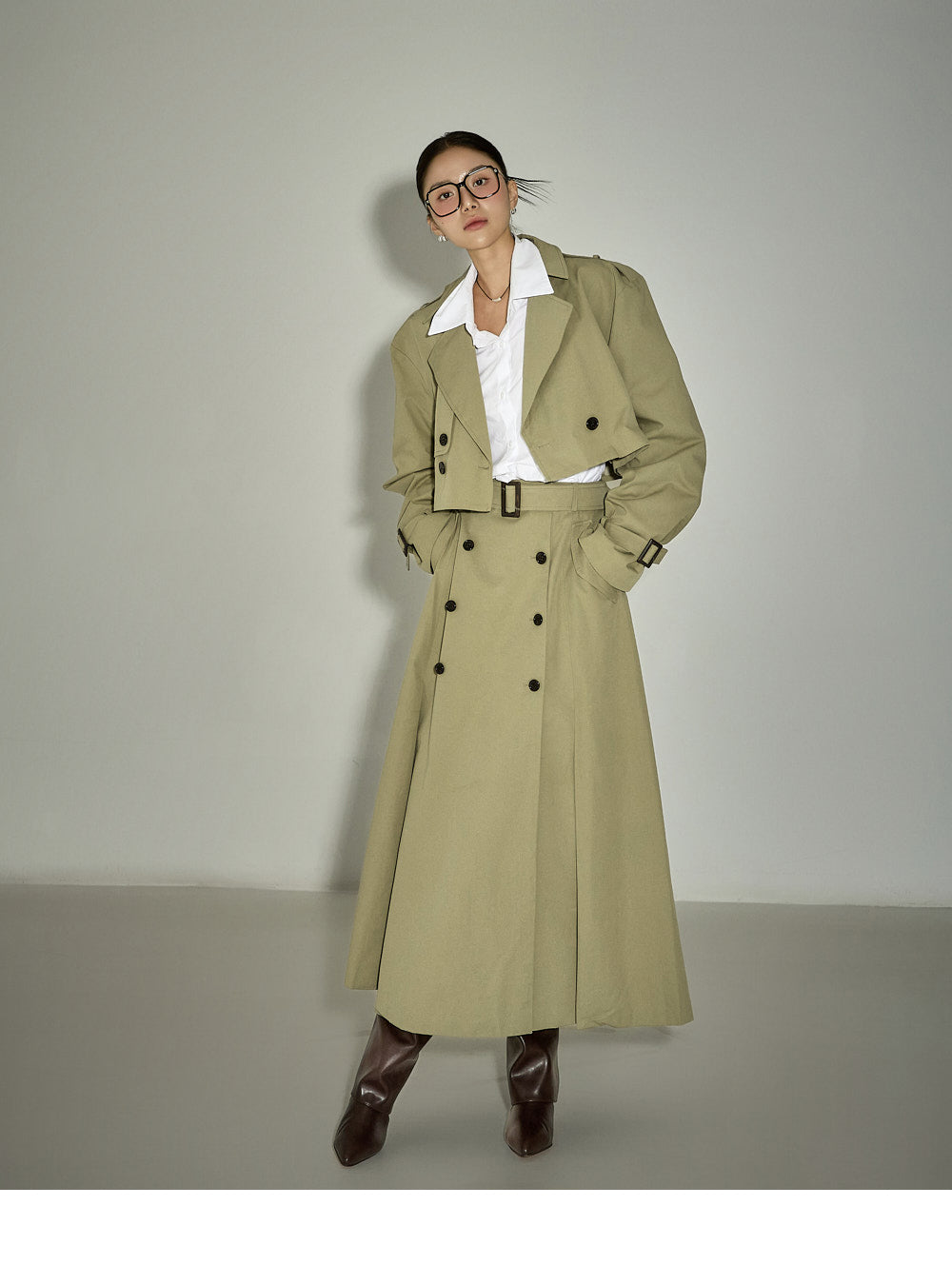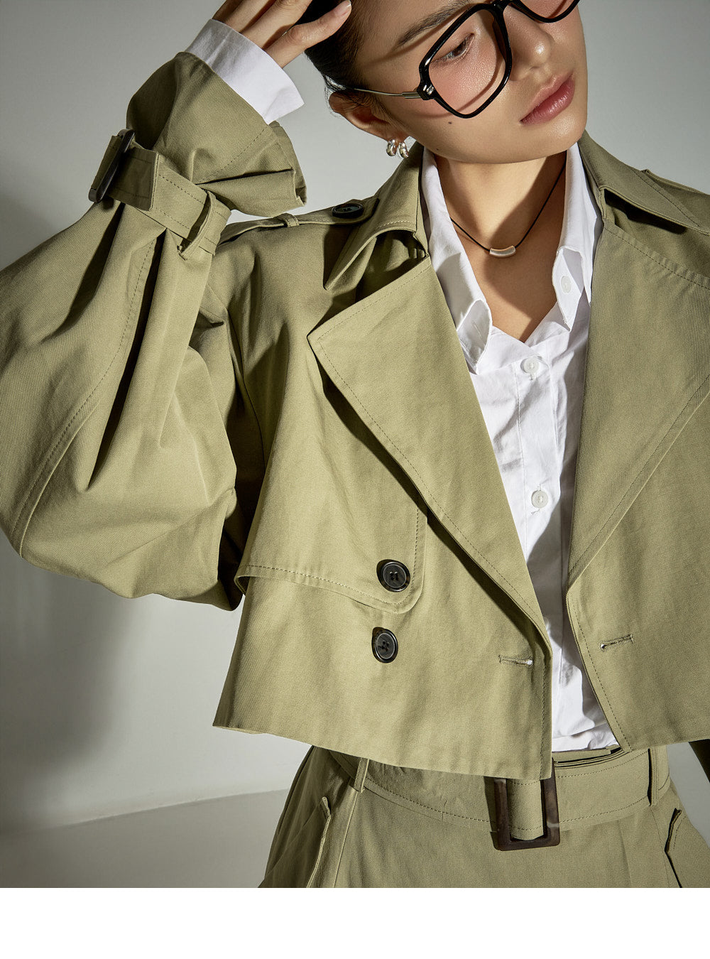 The jacket's cropped length creates a refreshing silhouette,