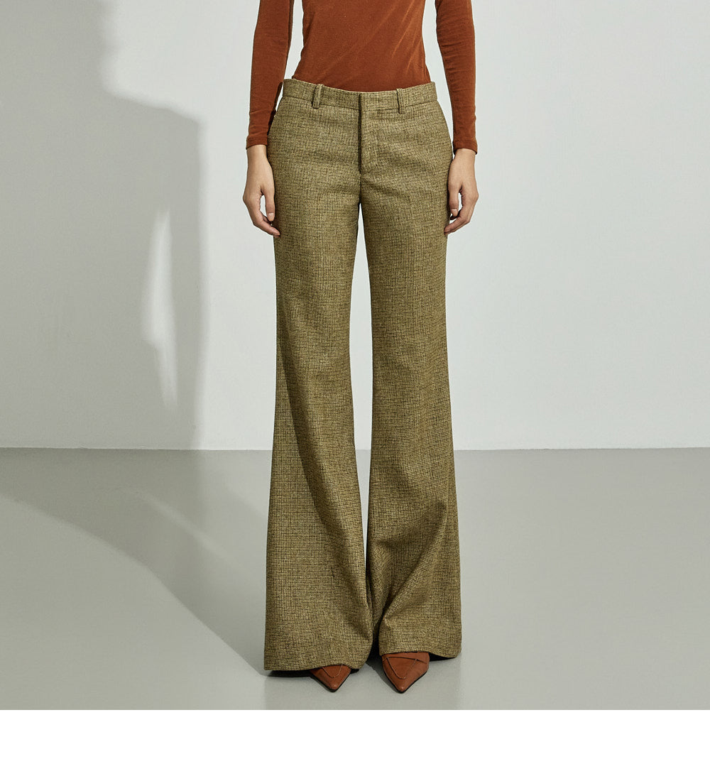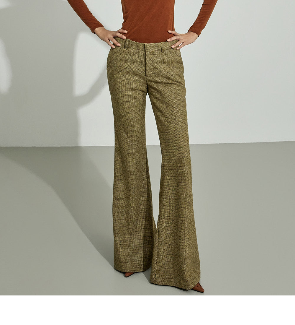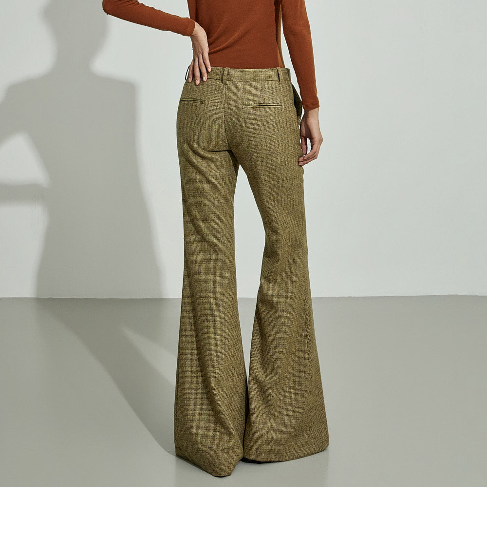 The pants feature a low-rise design with a sophisticated bootcut silhouette,