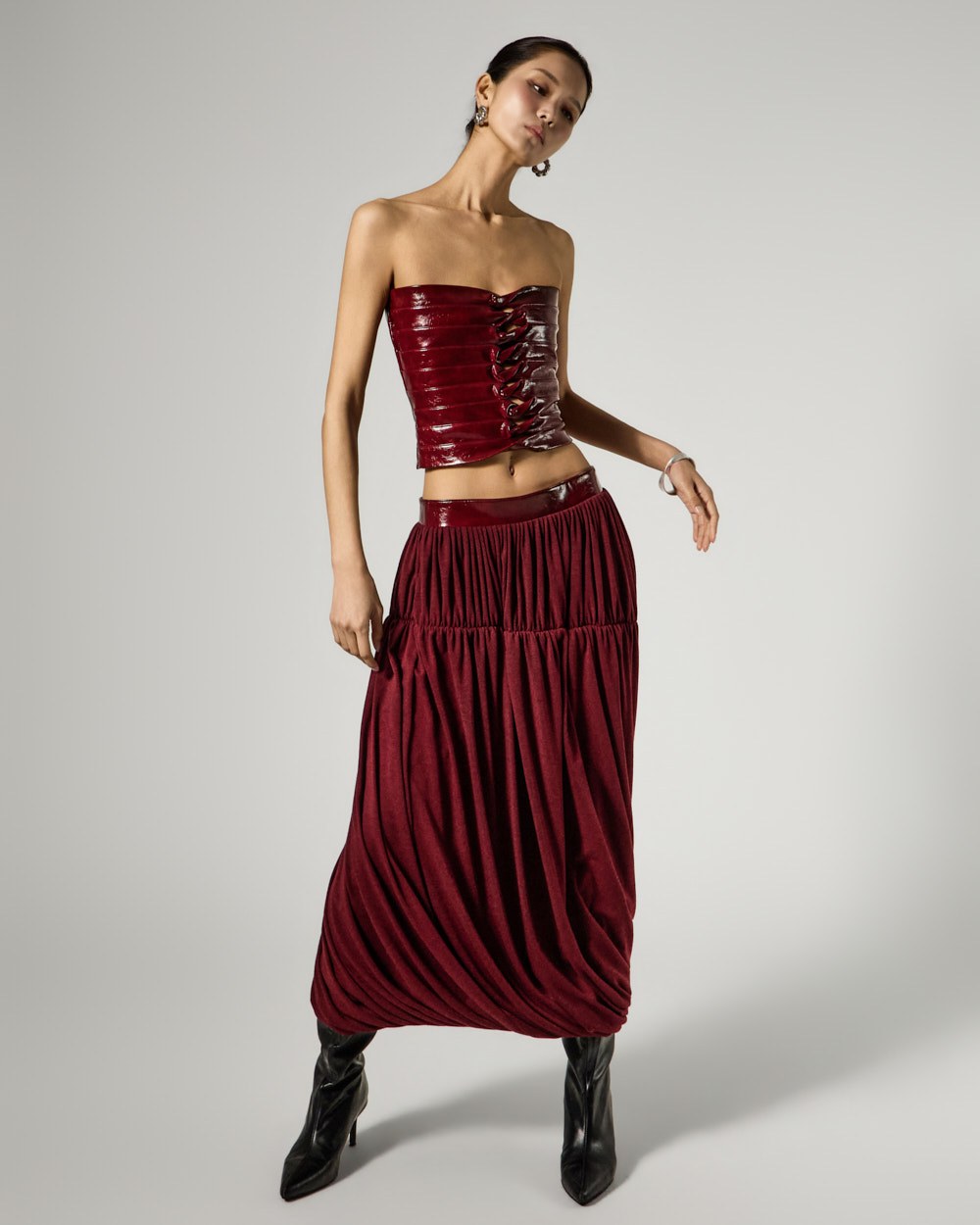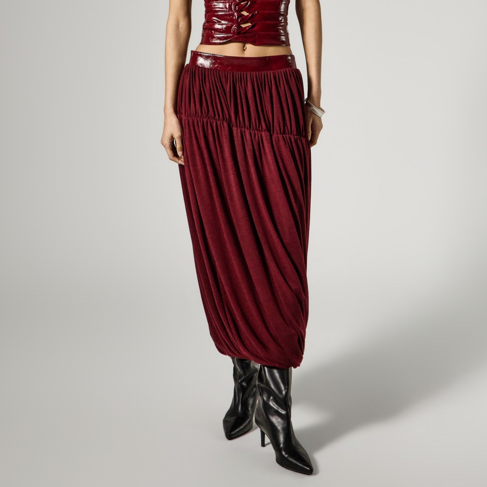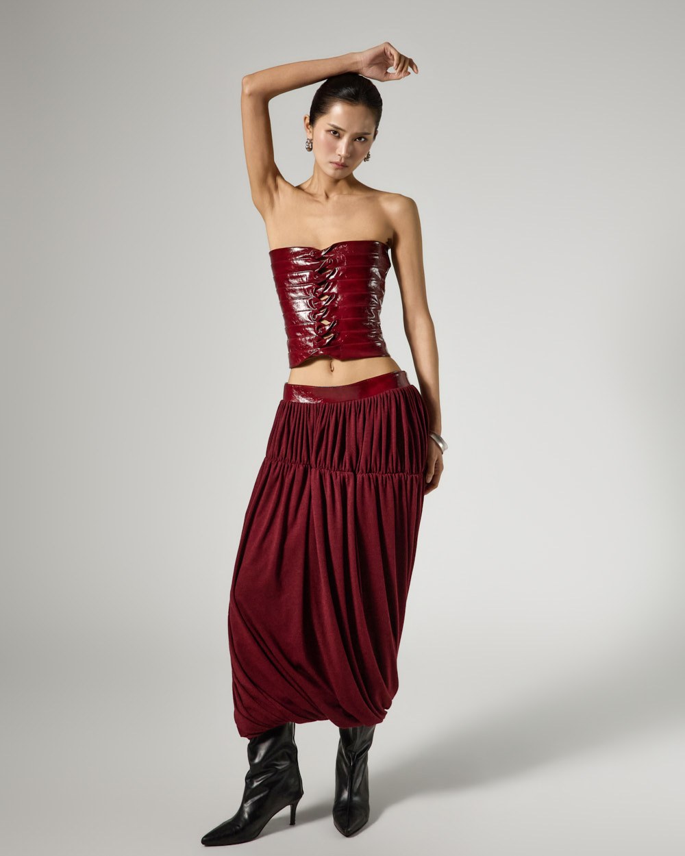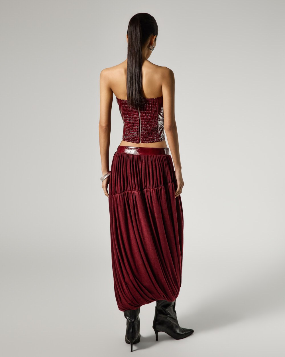 このユニークなトップスとスカートのセットは、個性的なスタイリングにぴったりです。