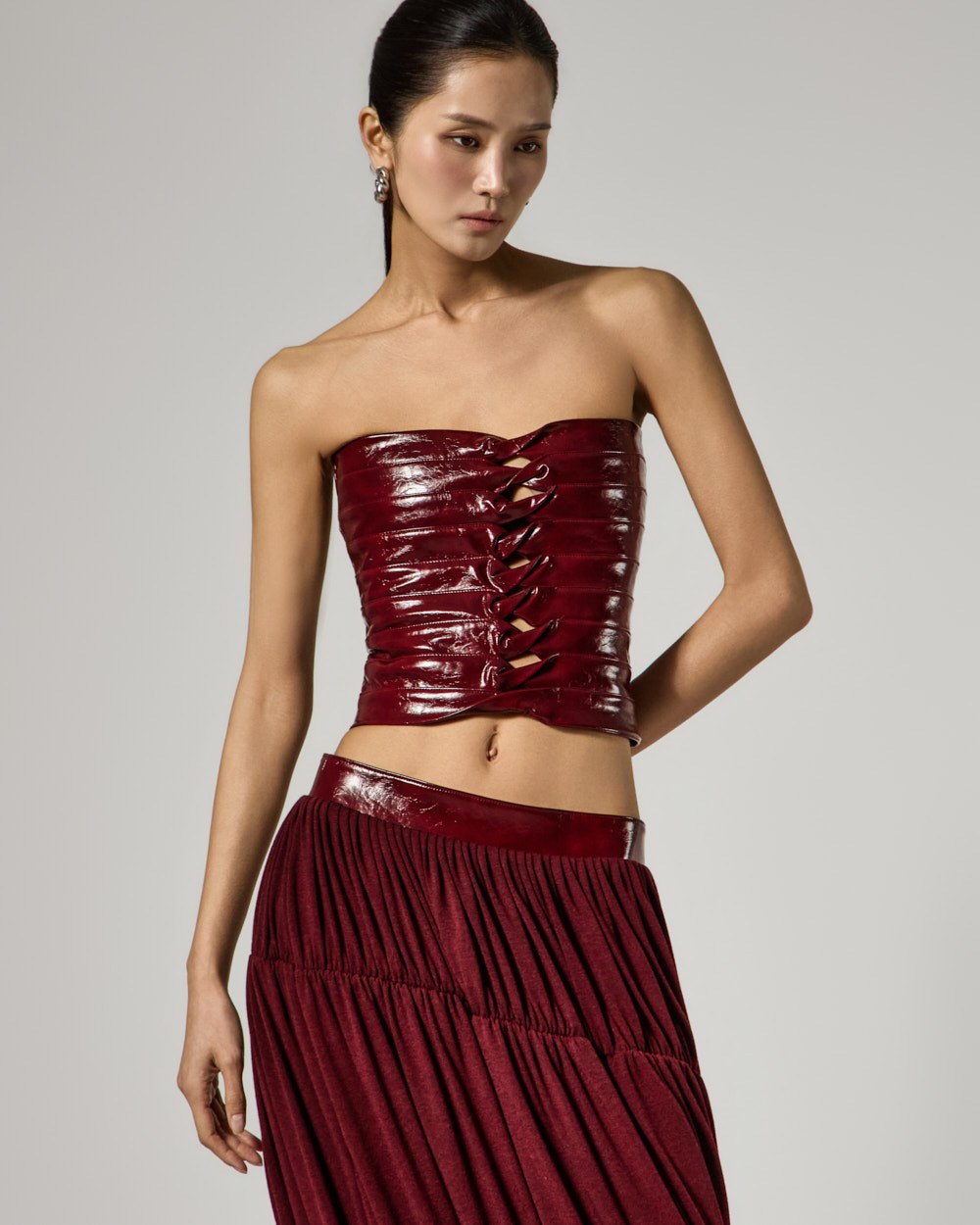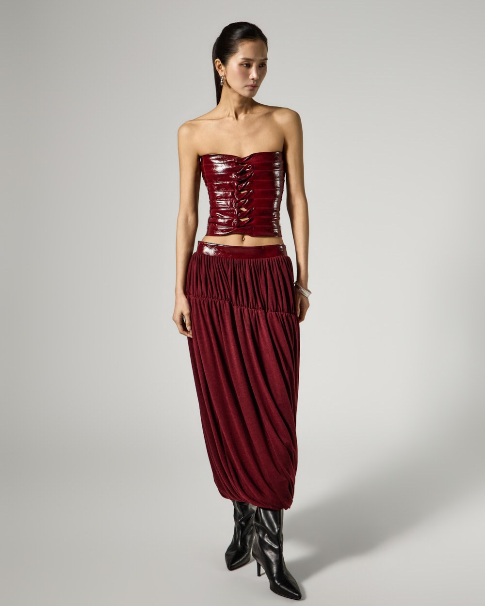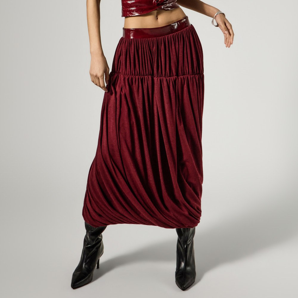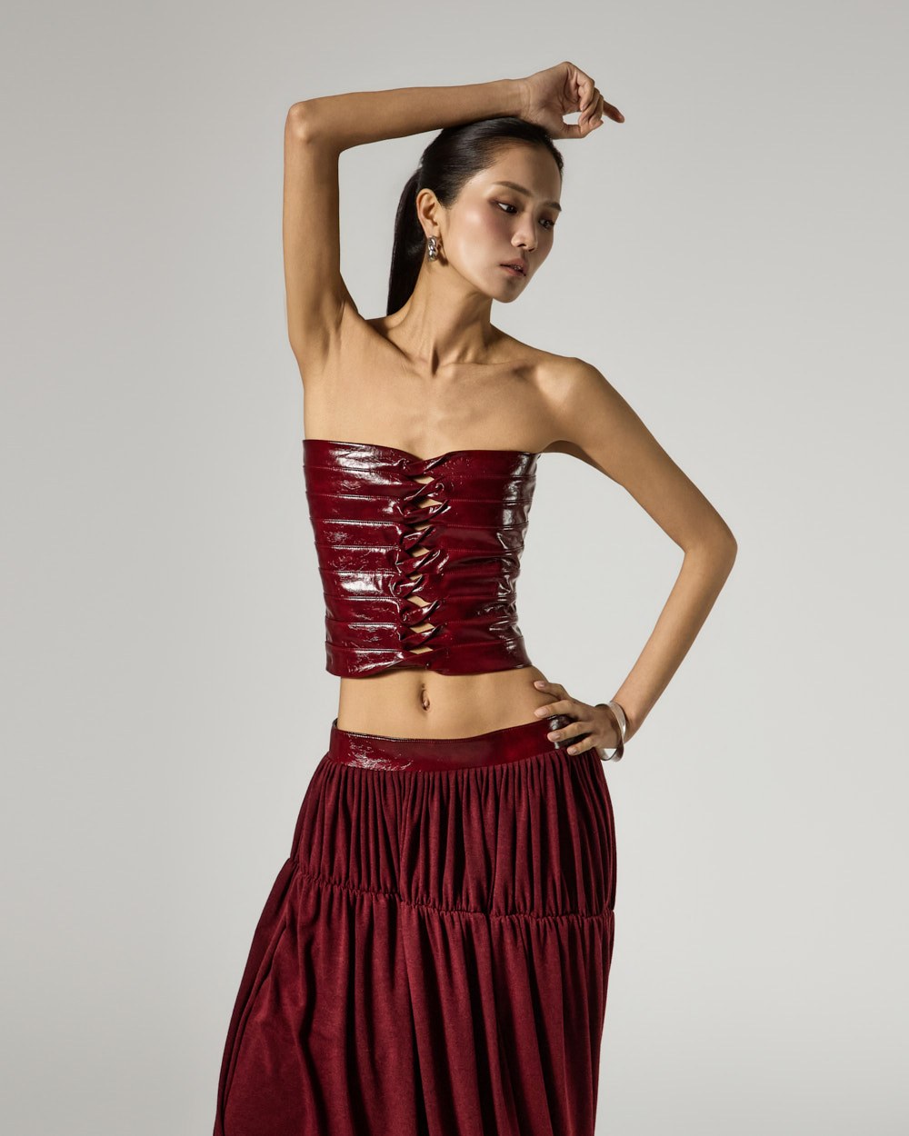 このユニークなトップスとスカートのセットは、個性的なスタイリングにぴったりです。