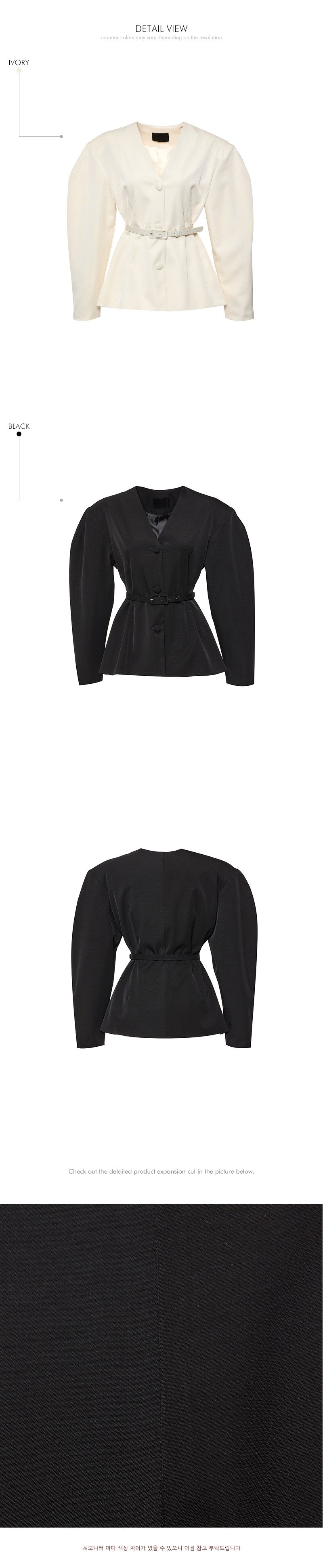 ジャケットは、肩のパフディテールでボリュームのあるシルエットを加え、