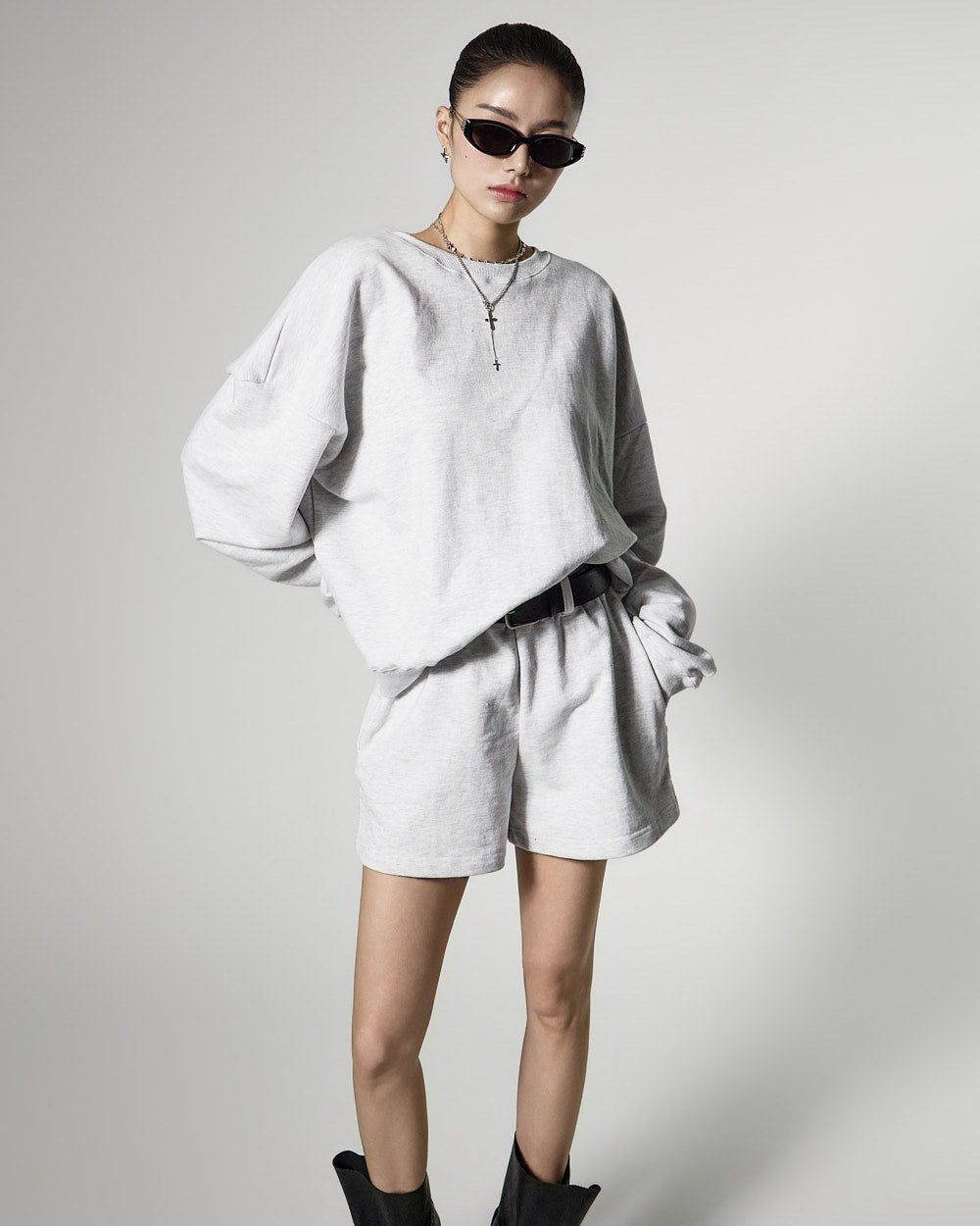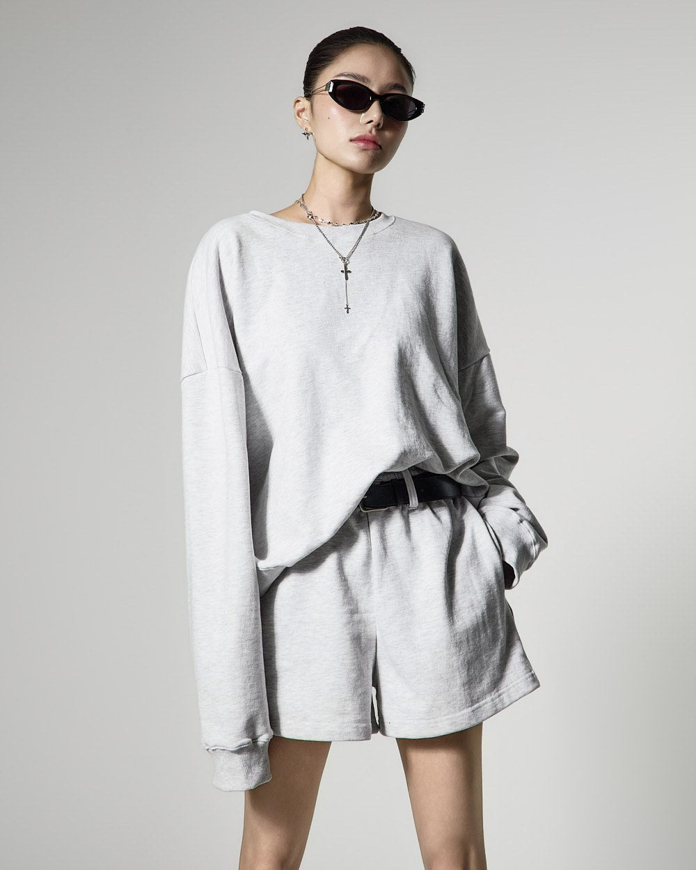 カジュアルな雰囲気のスウェットシャツとパンツのセットです。