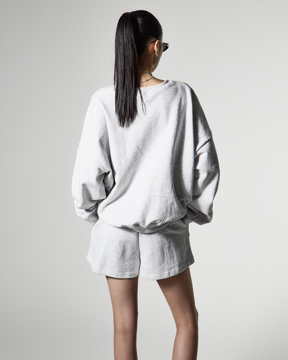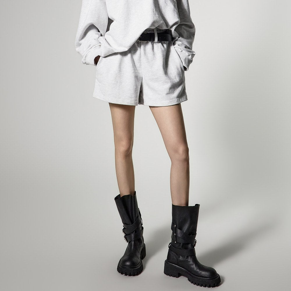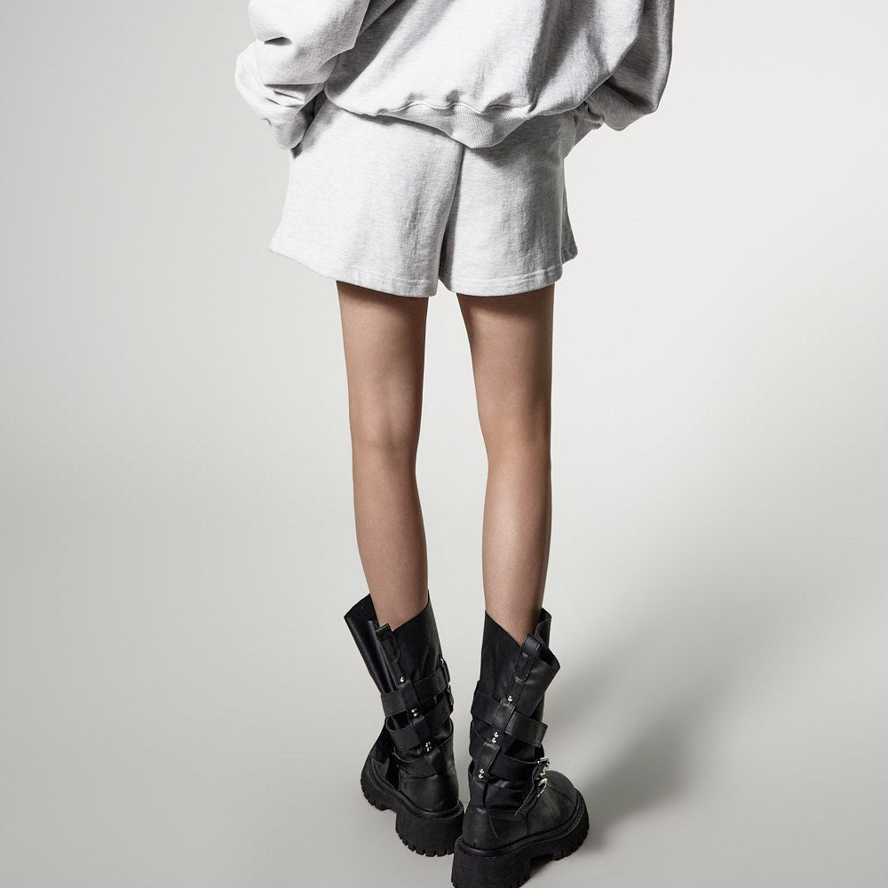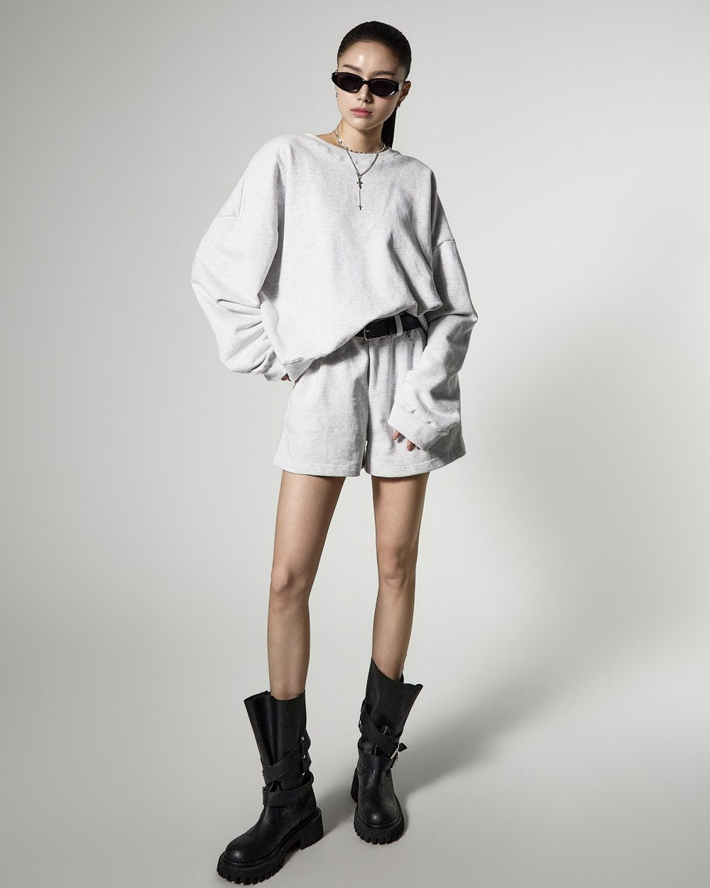 パンツは、活動的な雰囲気を演出するショート丈で、