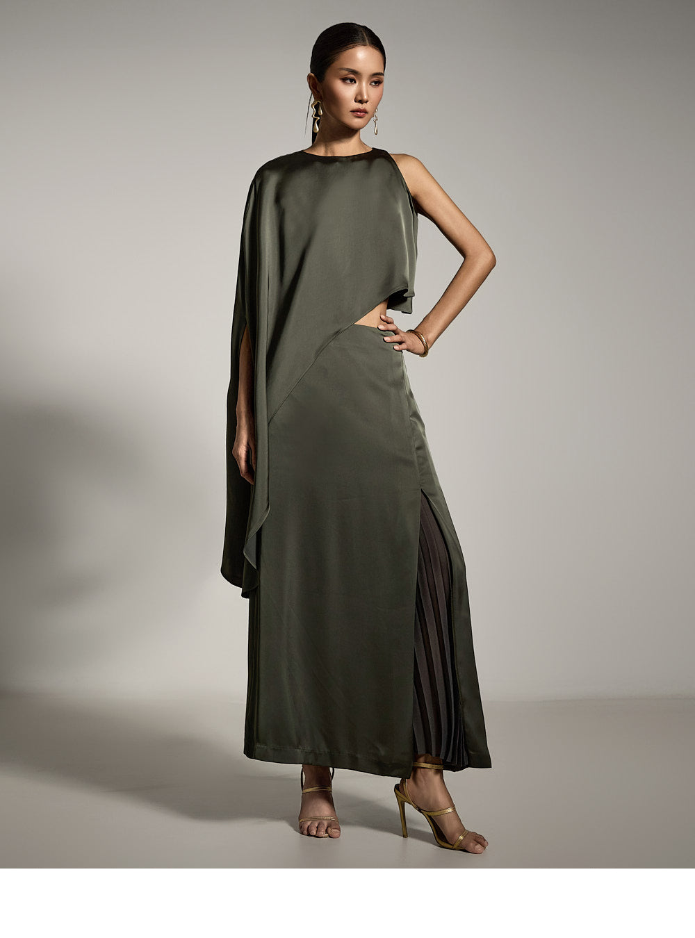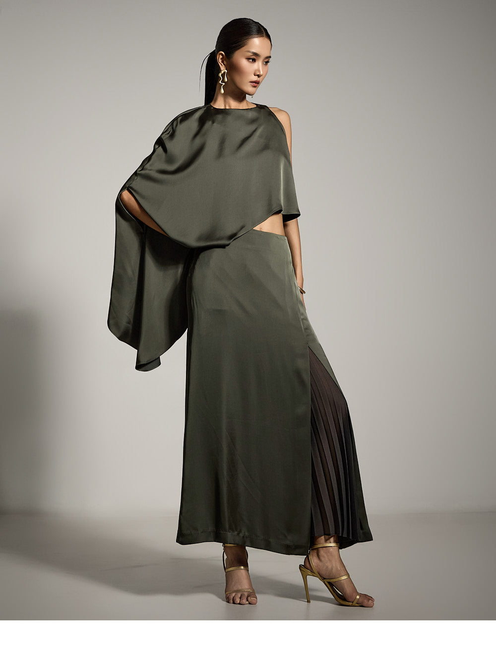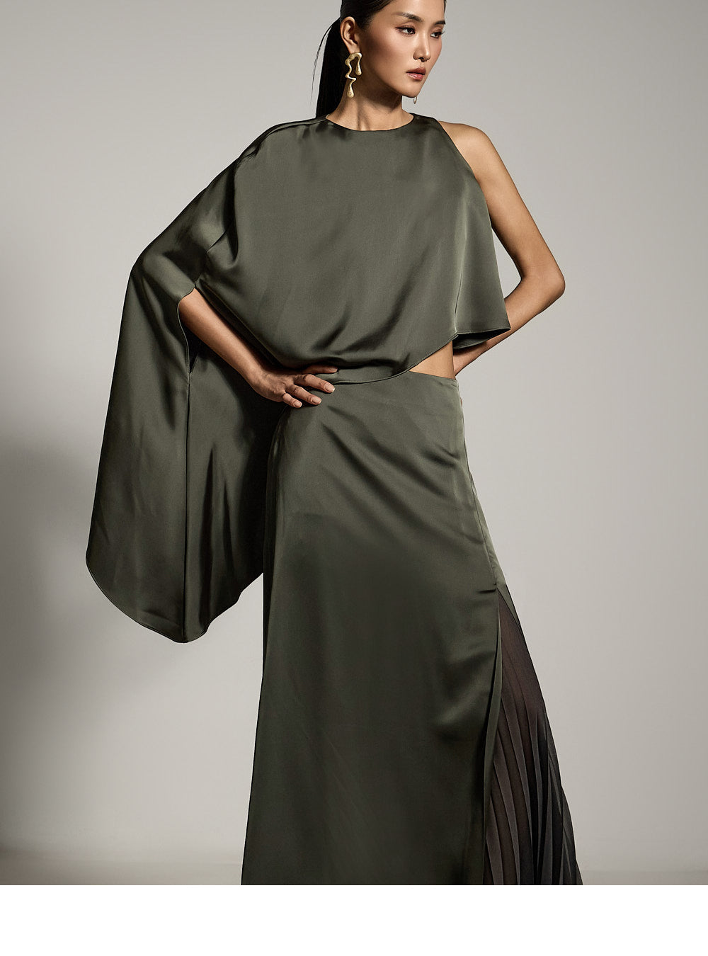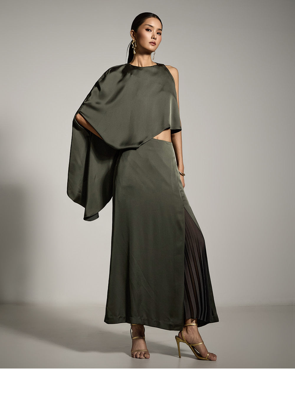 歩くたびに優雅に揺れる繊細なシワプリーツを重ねました。