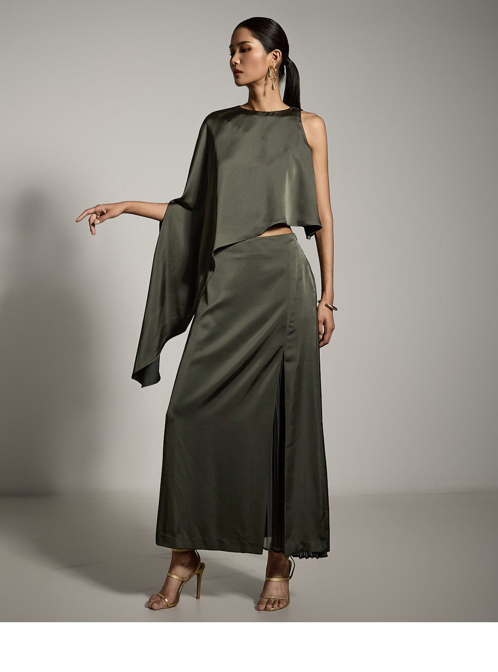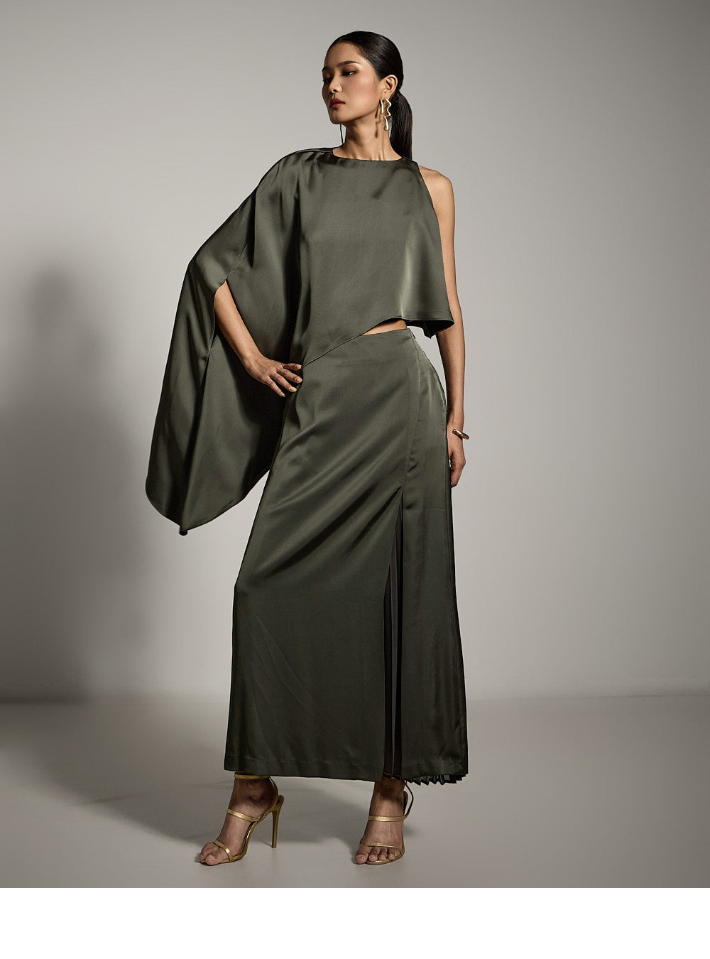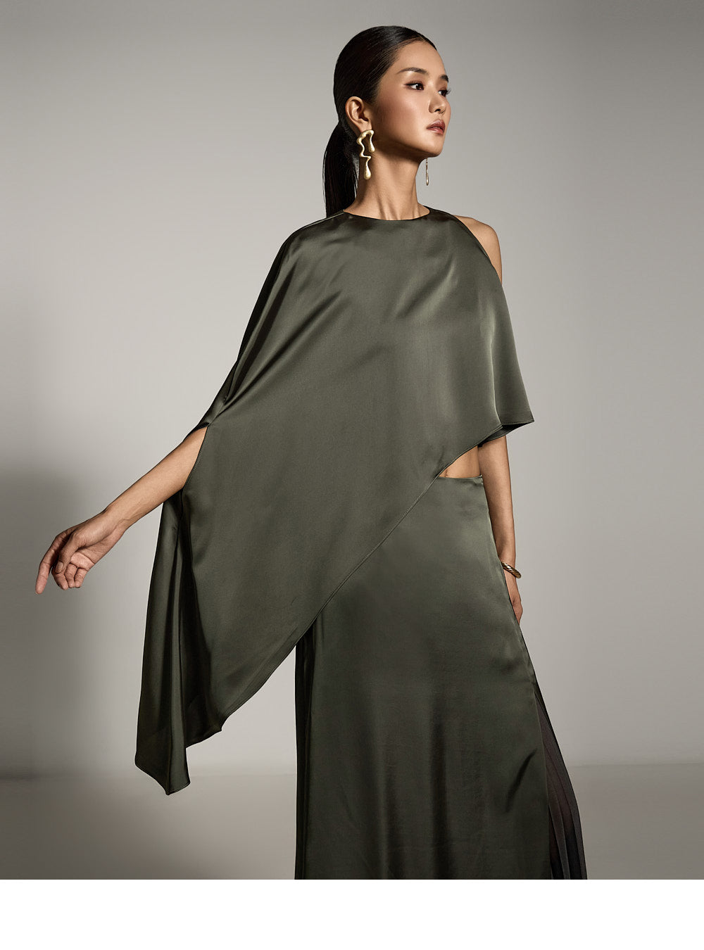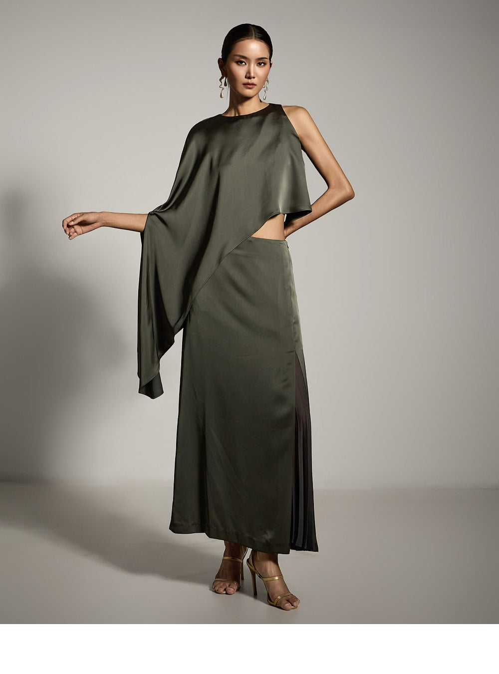 歩くたびに優雅に揺れる繊細なシワプリーツを重ねました。