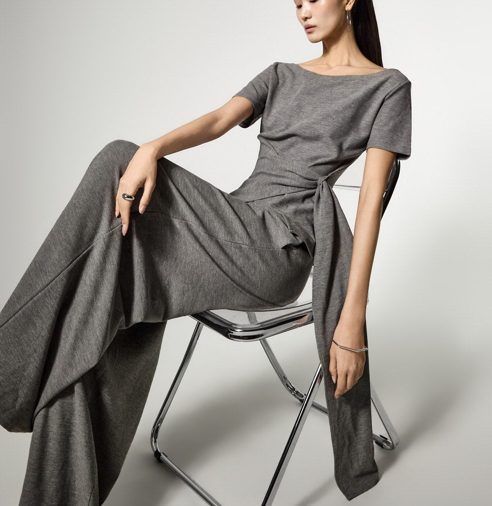 ウエストのストラップディテールがスリムなシルエットを演出し、
