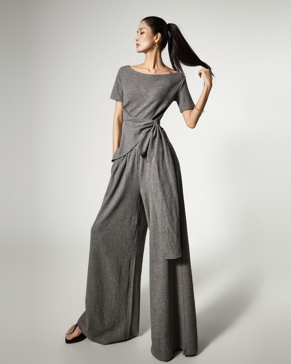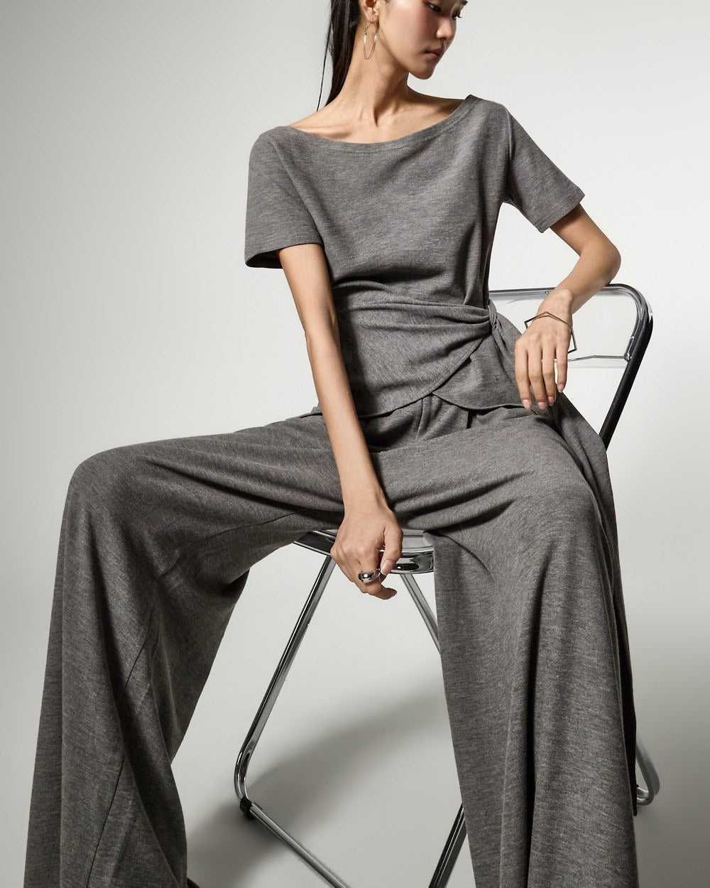 しなやかに流れるような生地が自然なシルエットを作り、