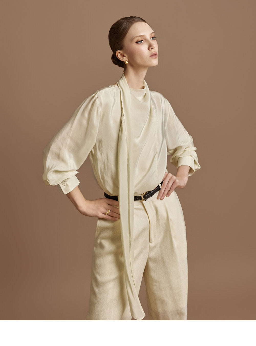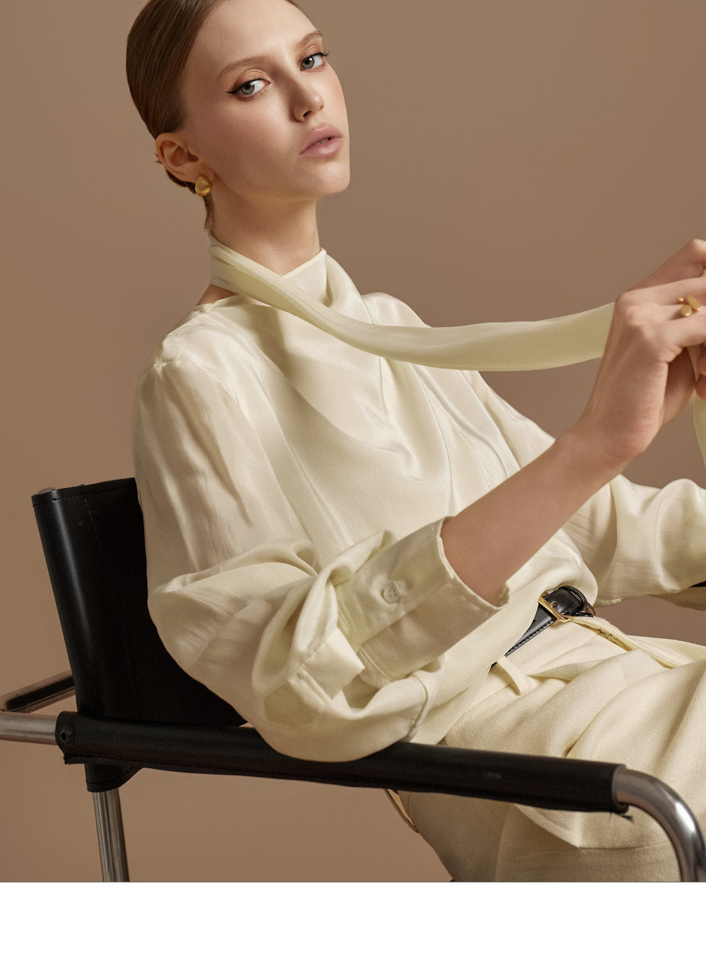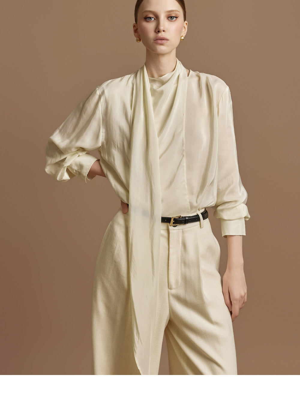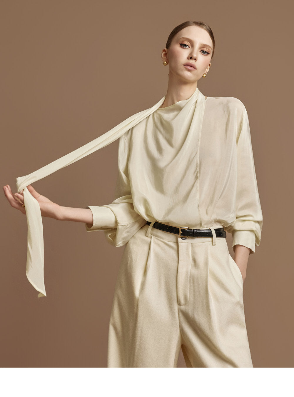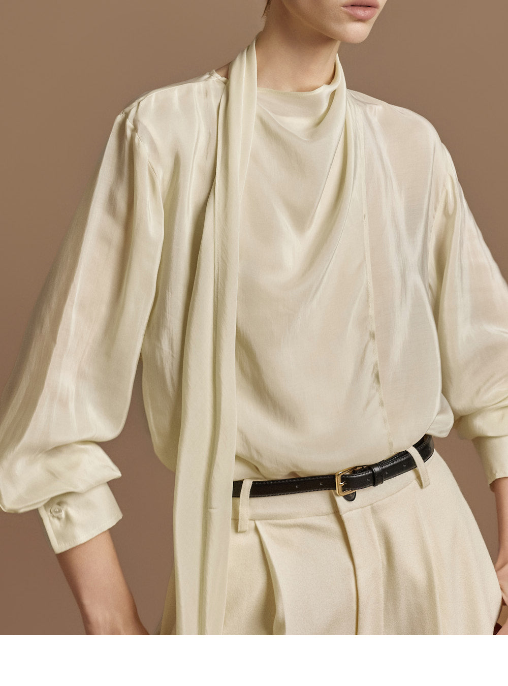 This elegant scarf blouse exudes elegance.