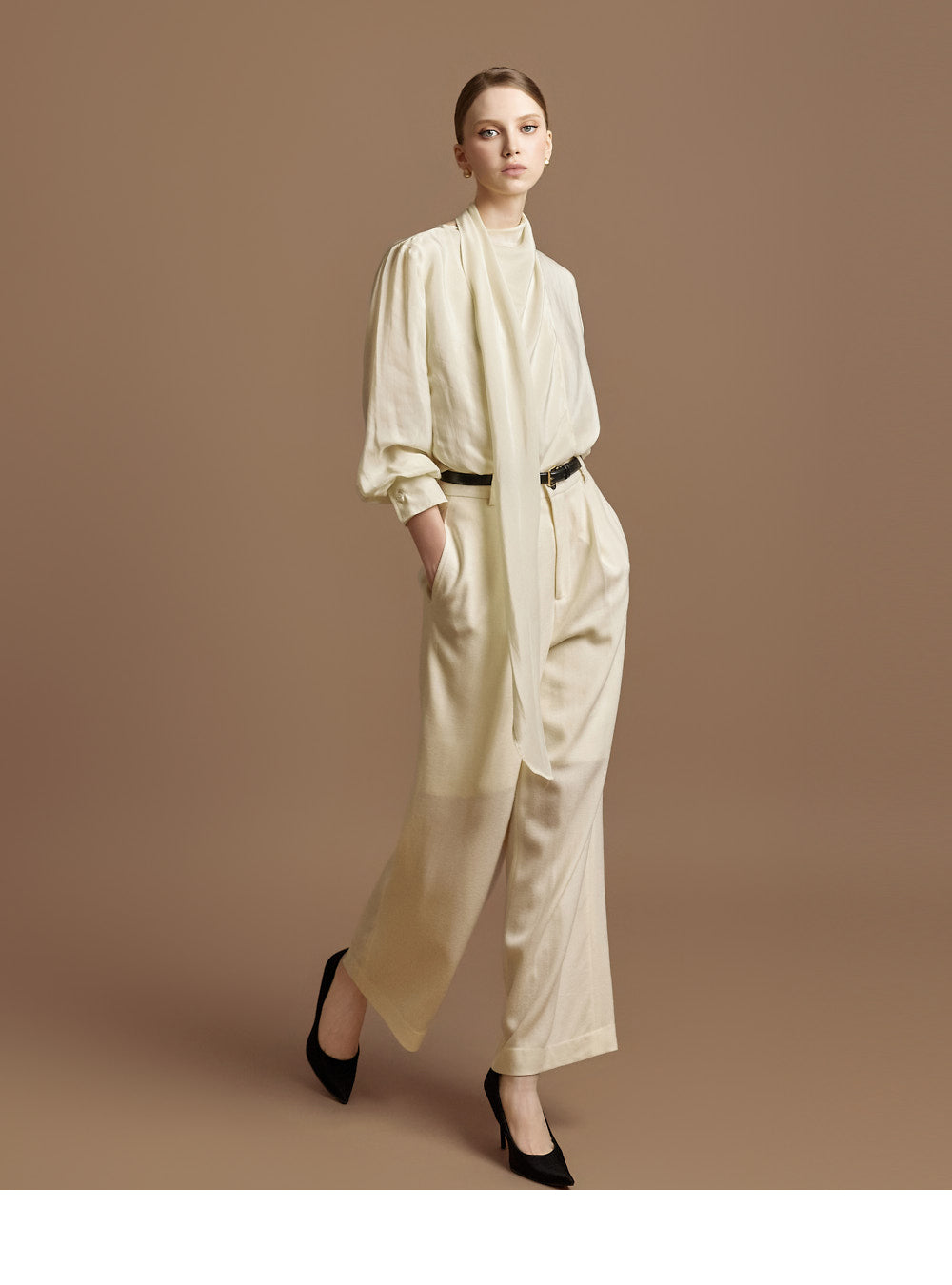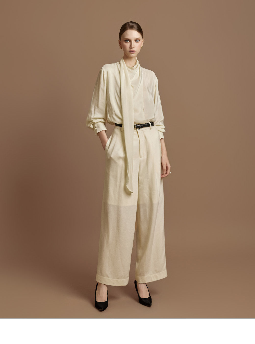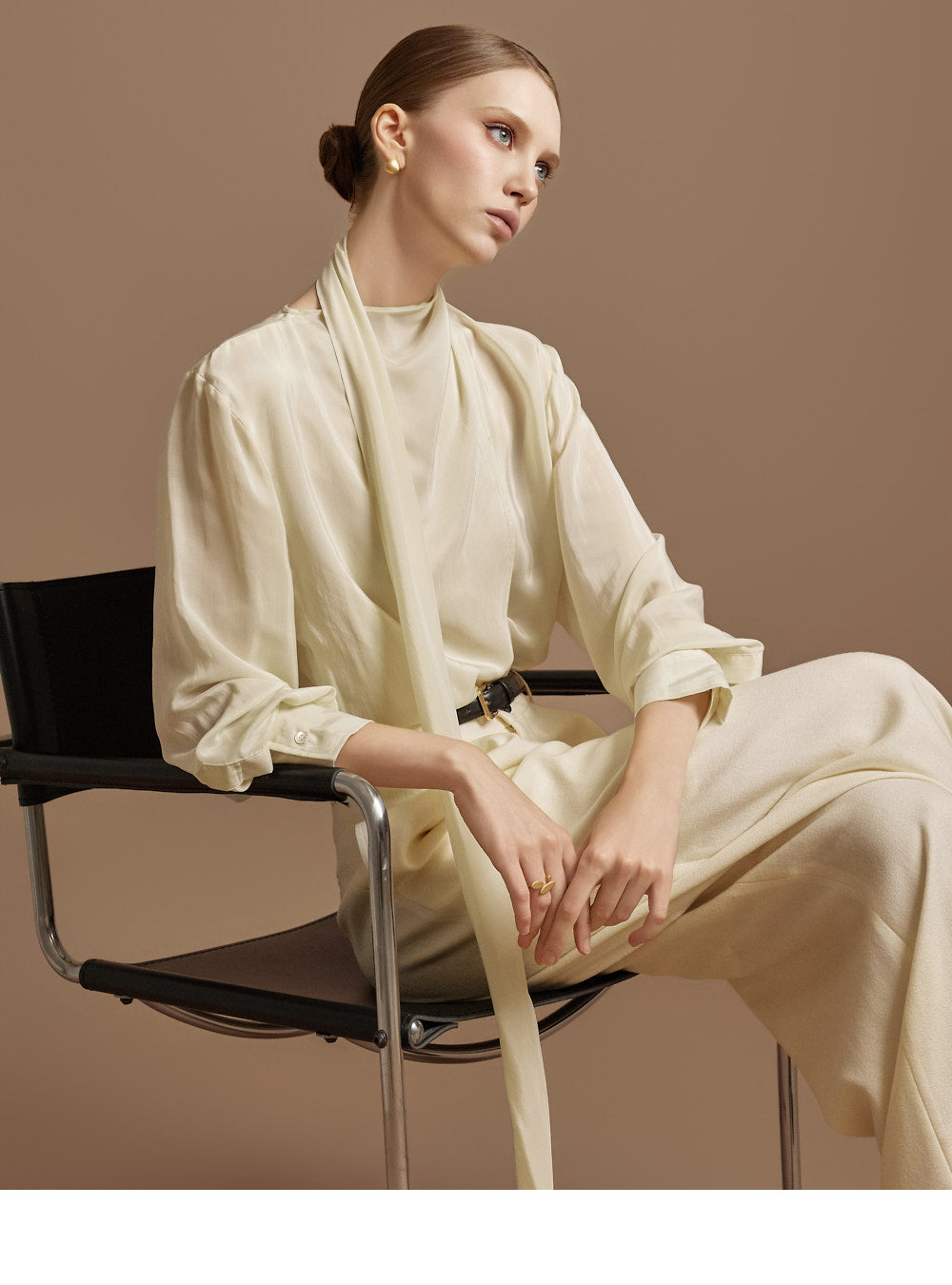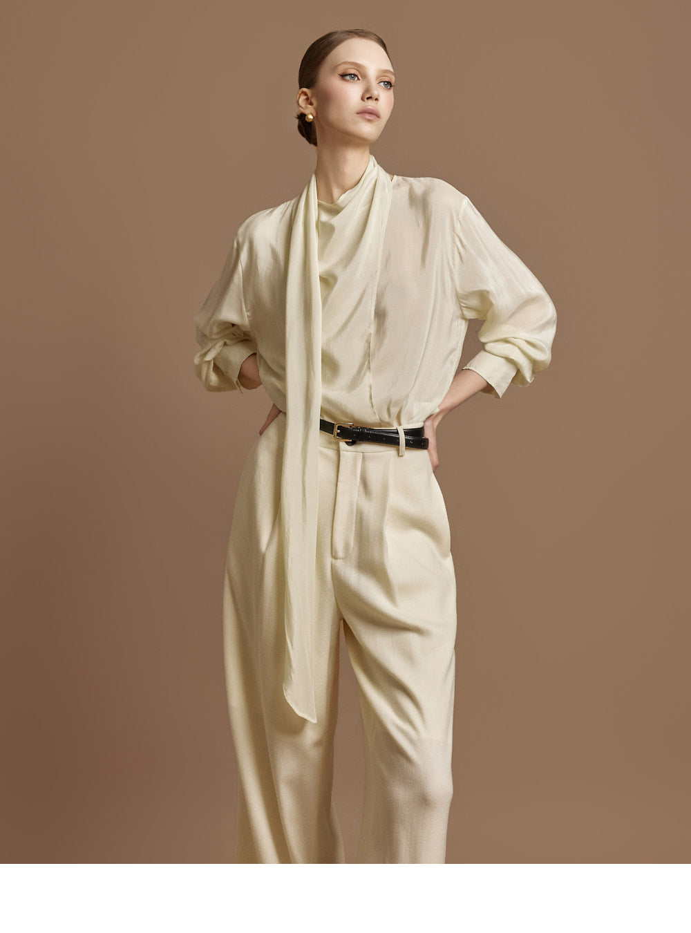 This elegant scarf blouse exudes elegance.