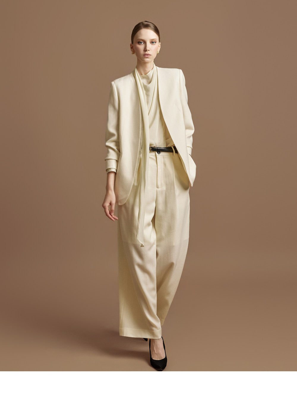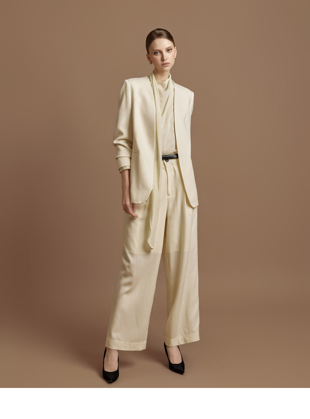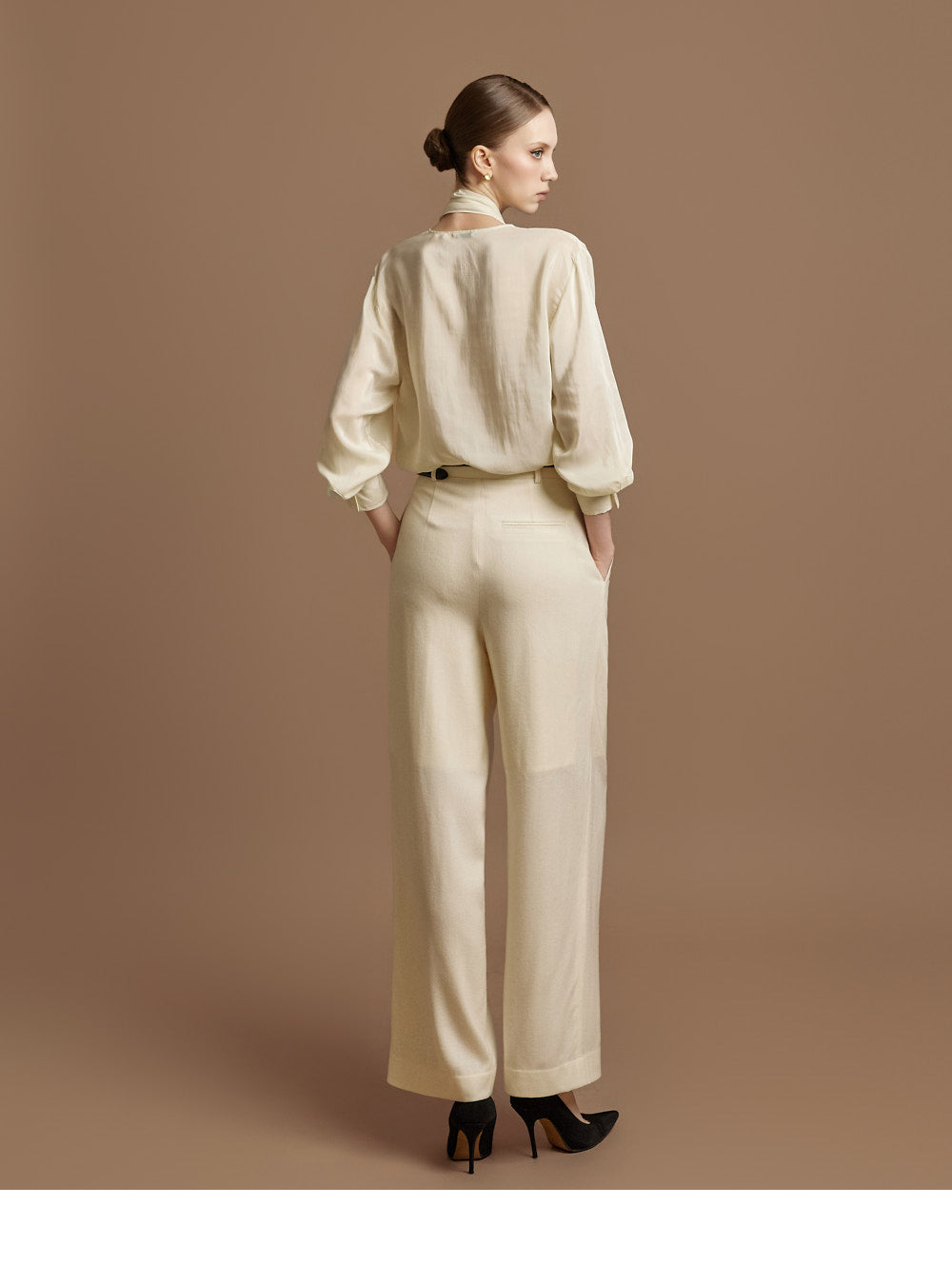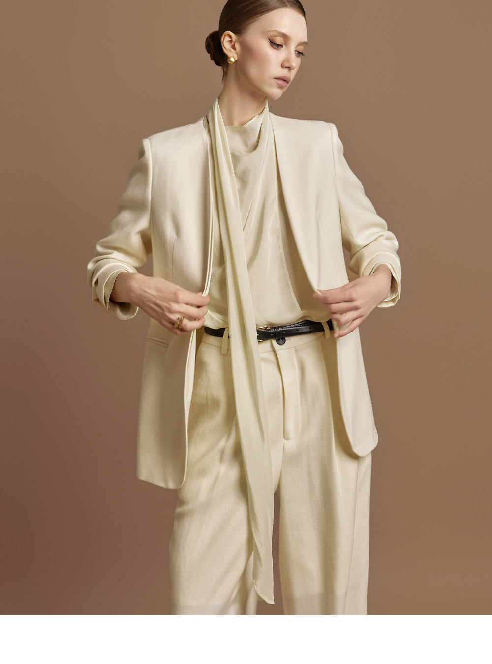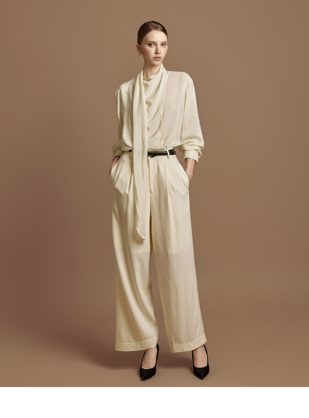 This elegant scarf blouse exudes elegance.