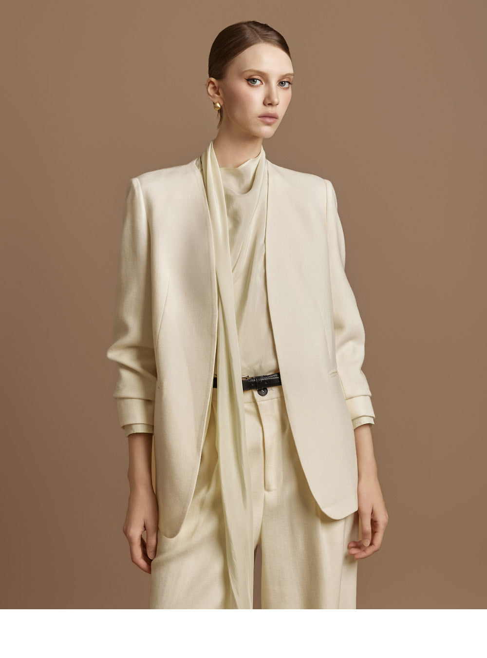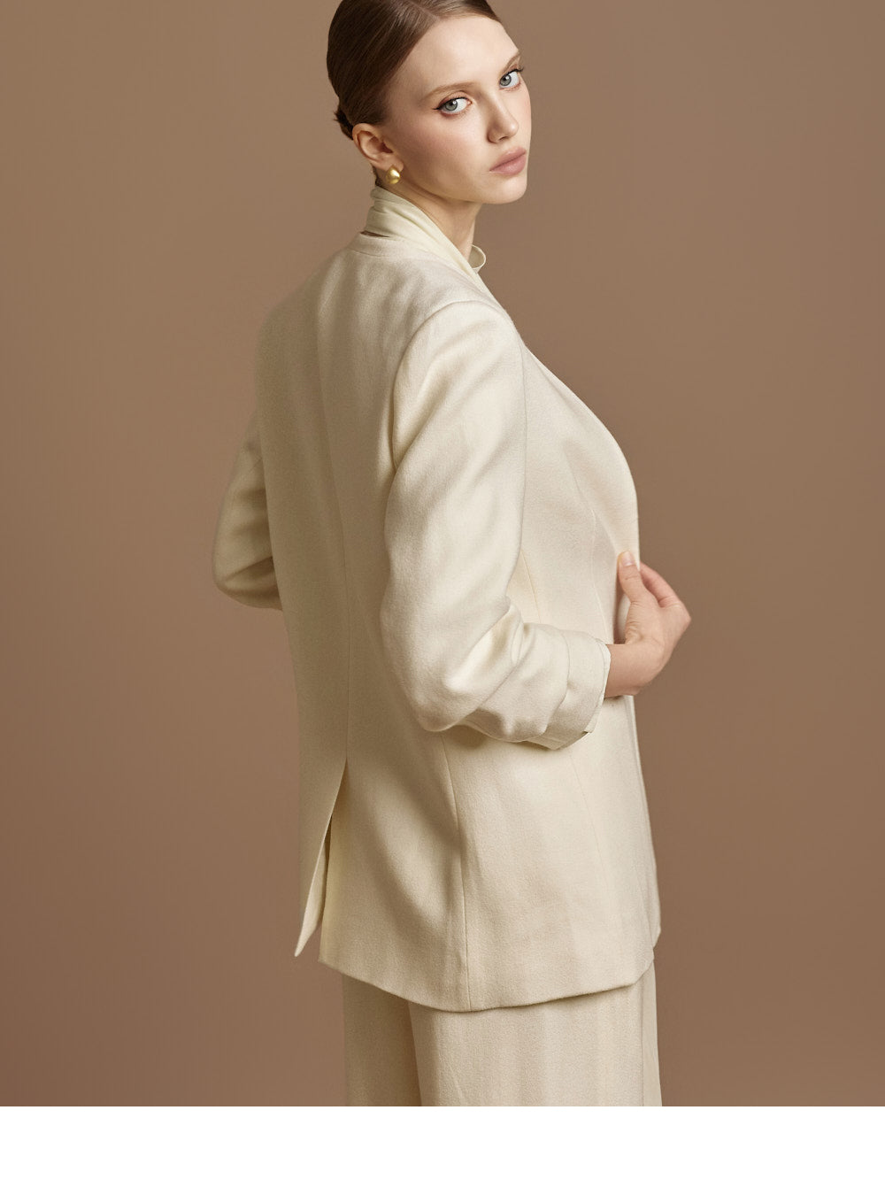 The 174cm model is wearing size ONE in IVORY.