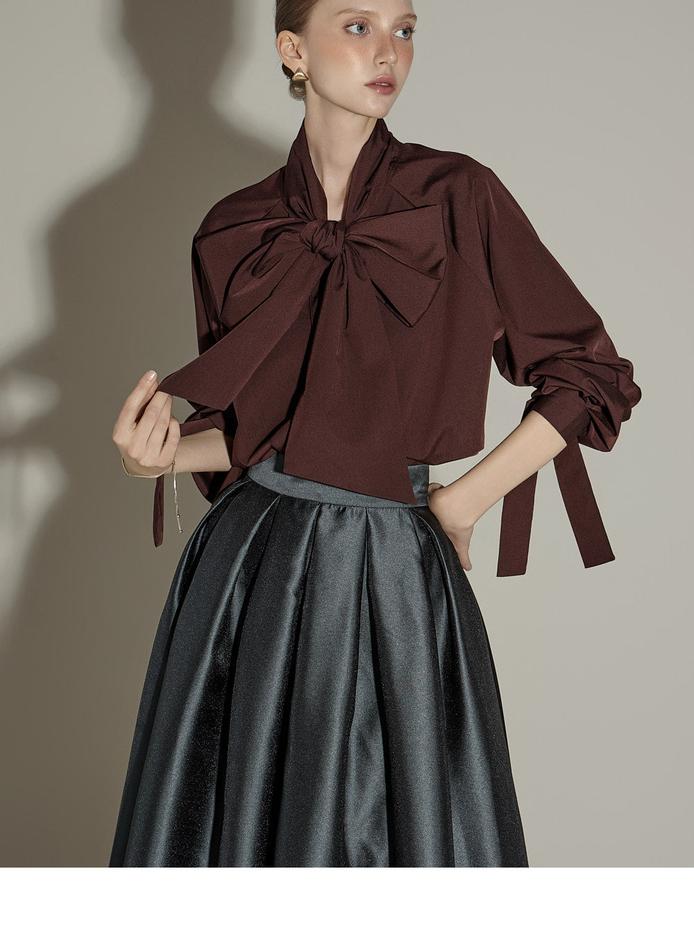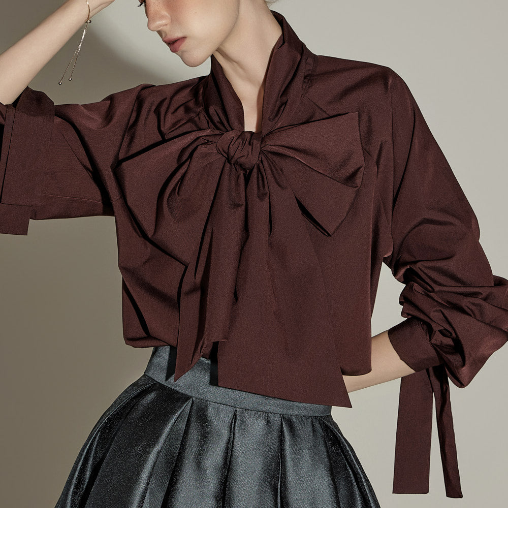 This lovely and elegant ribbon tie blouse exudes style.