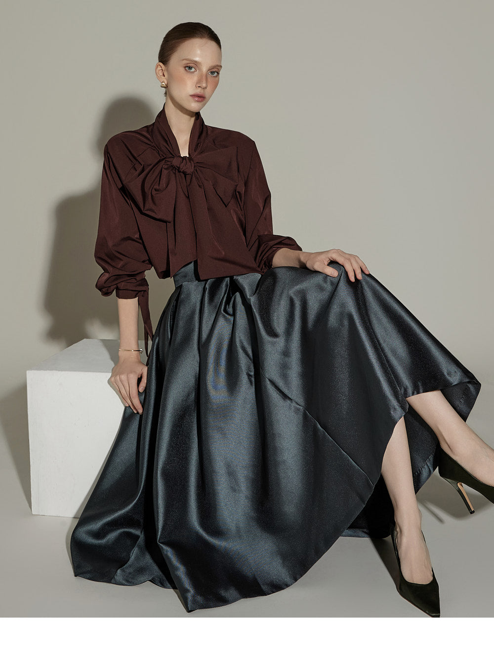 and the tie detail at the neckline can be styled with a ribbon,