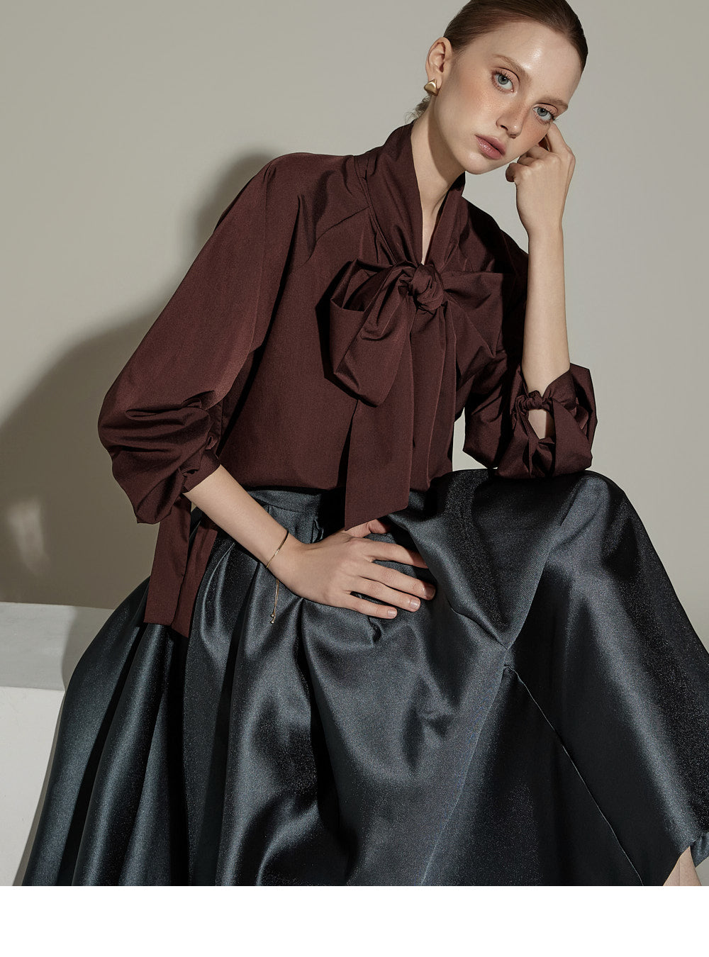 B3141 Blouse with Ribbon Tie