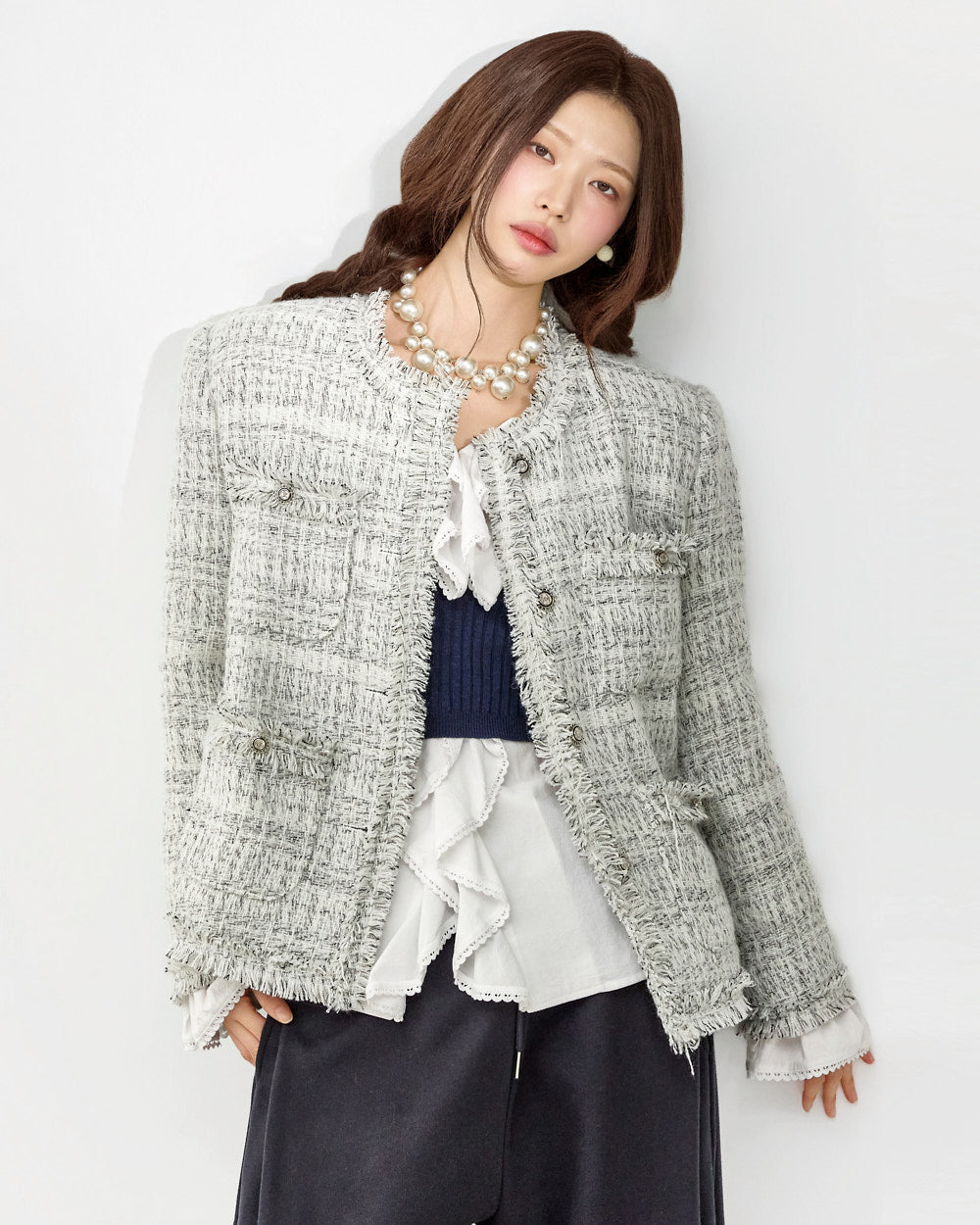 The frill detailing naturally extends from the neckline,
