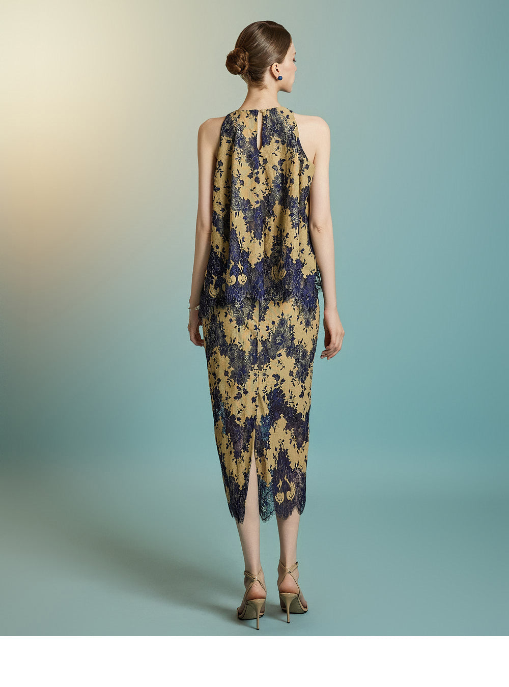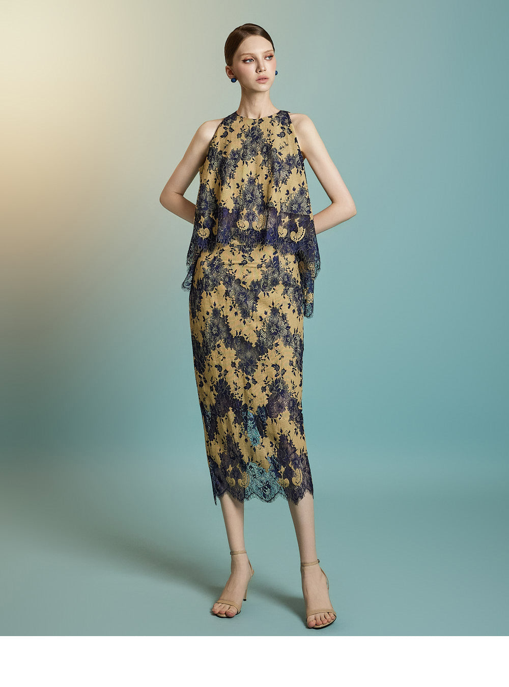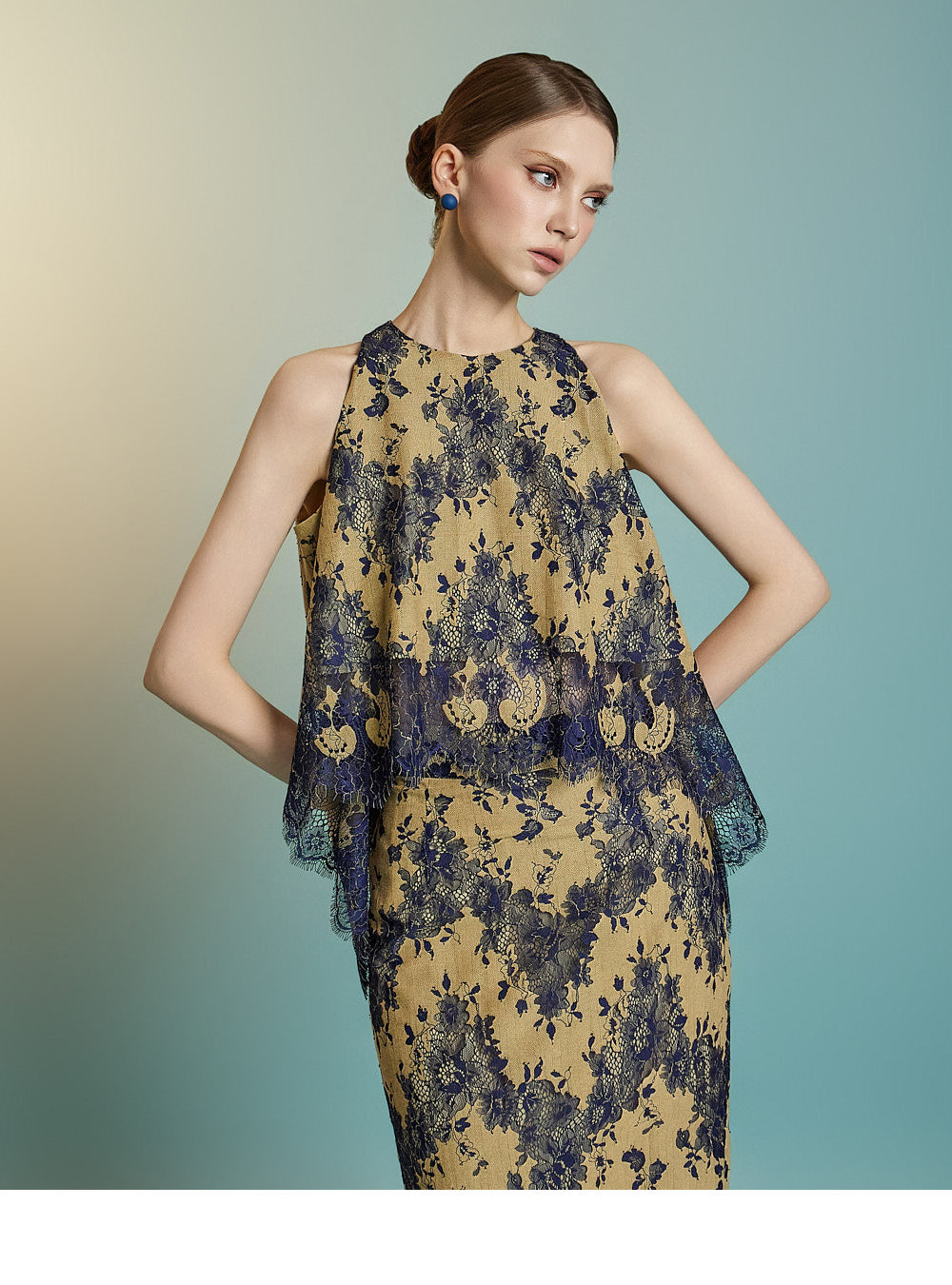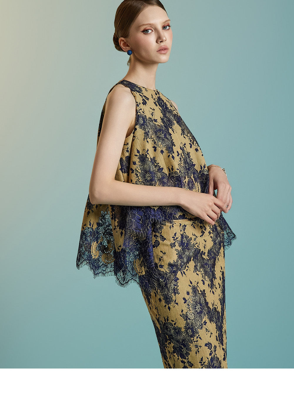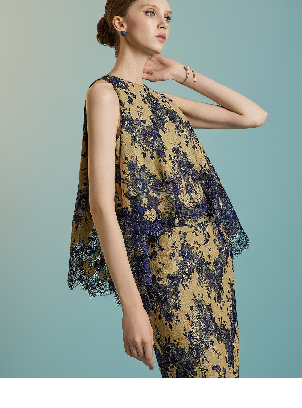这款花卉蕾丝无袖上衣外观精致优雅。