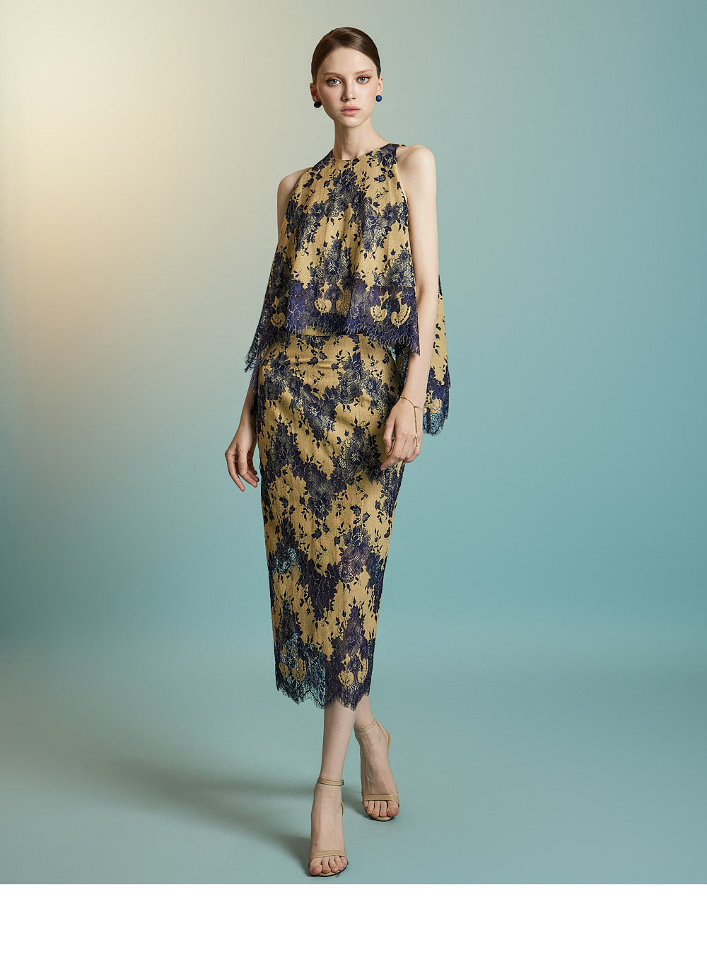 花朵蕾丝增添了一丝精致,而不对称的下摆