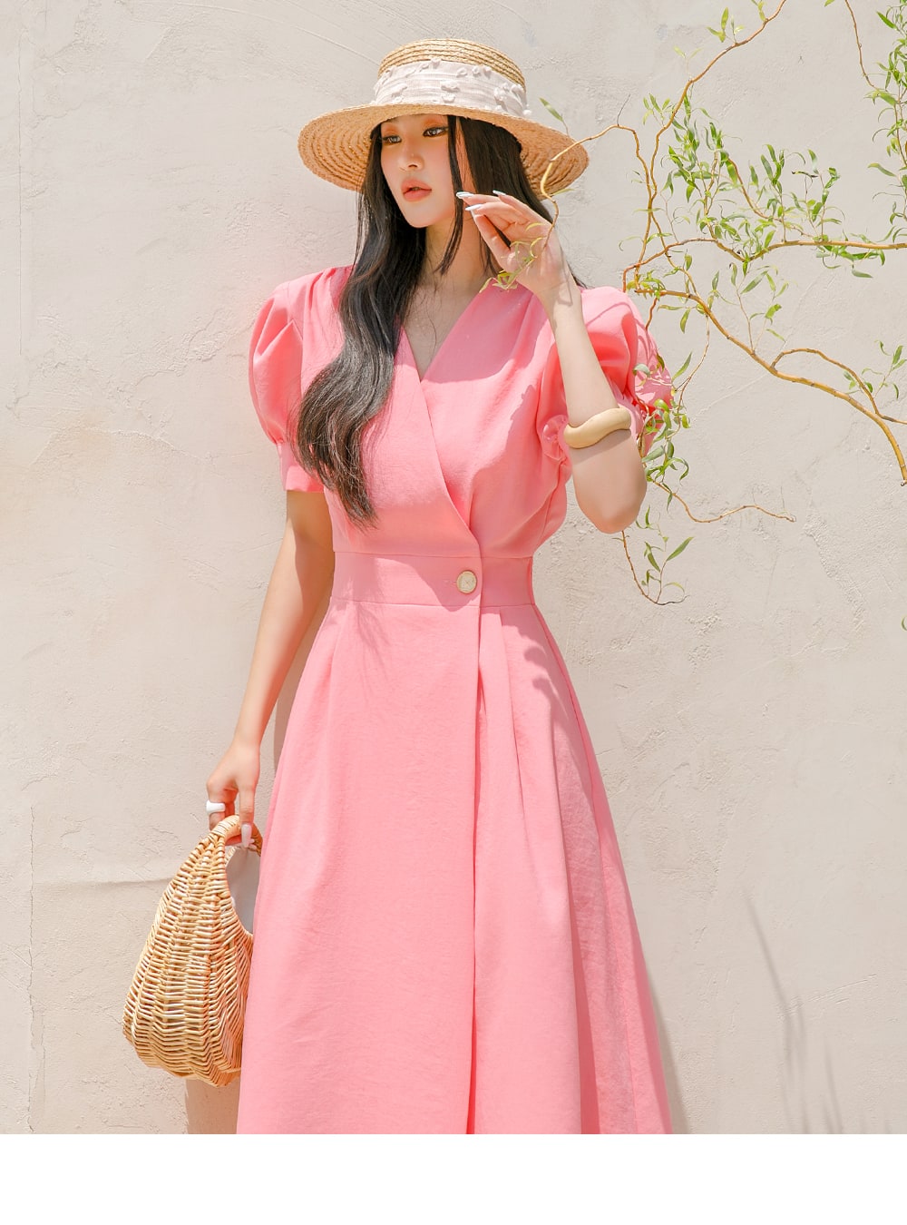 蓬松的泡泡袖搭配垫肩,打造出结构感十足的廓形,