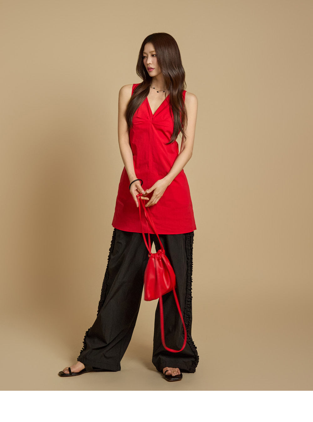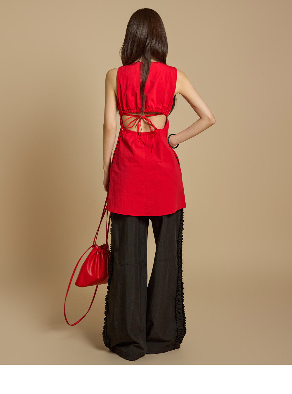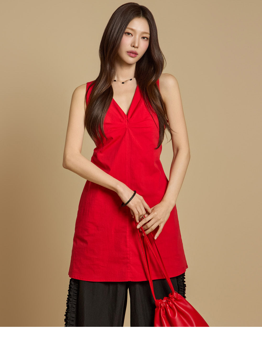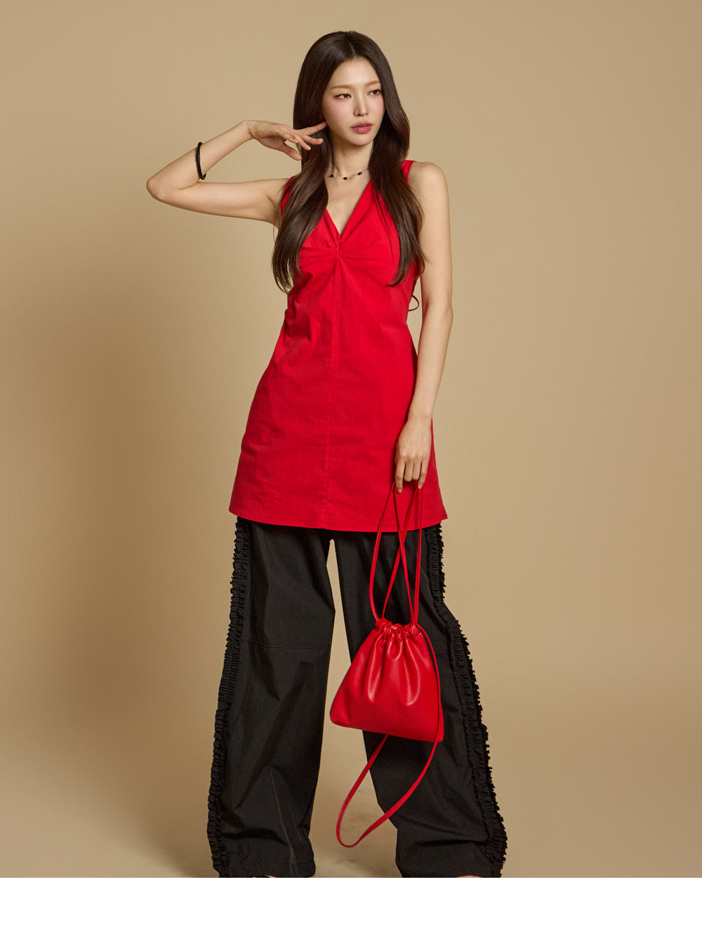 模特身高 171 厘米,穿均码红色衣服。