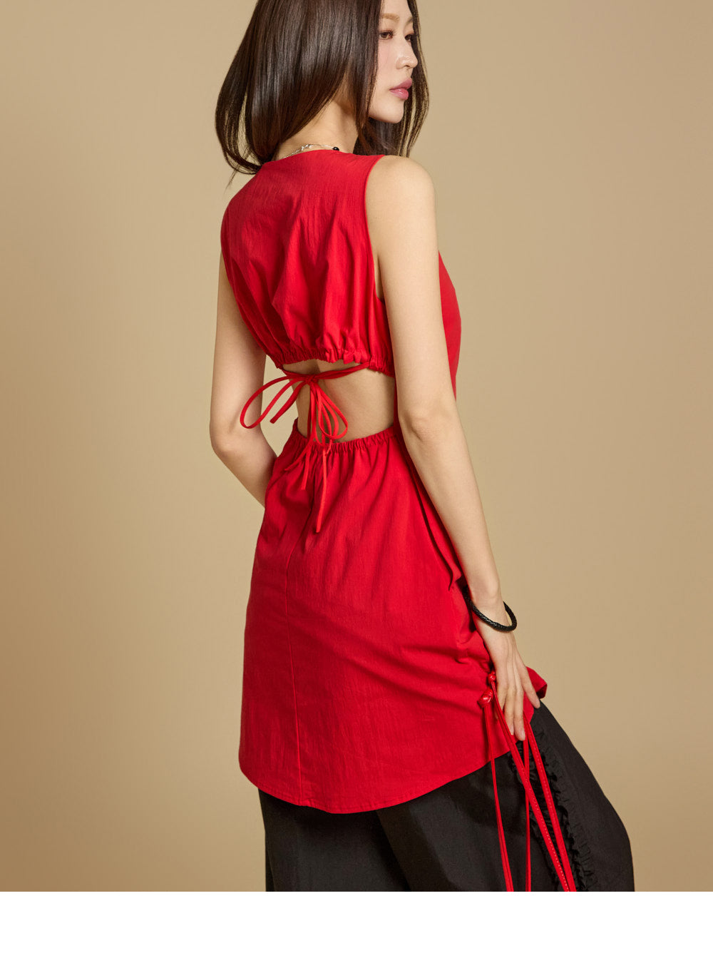 迷你长度和后背开口细节营造出活泼时尚的外观,