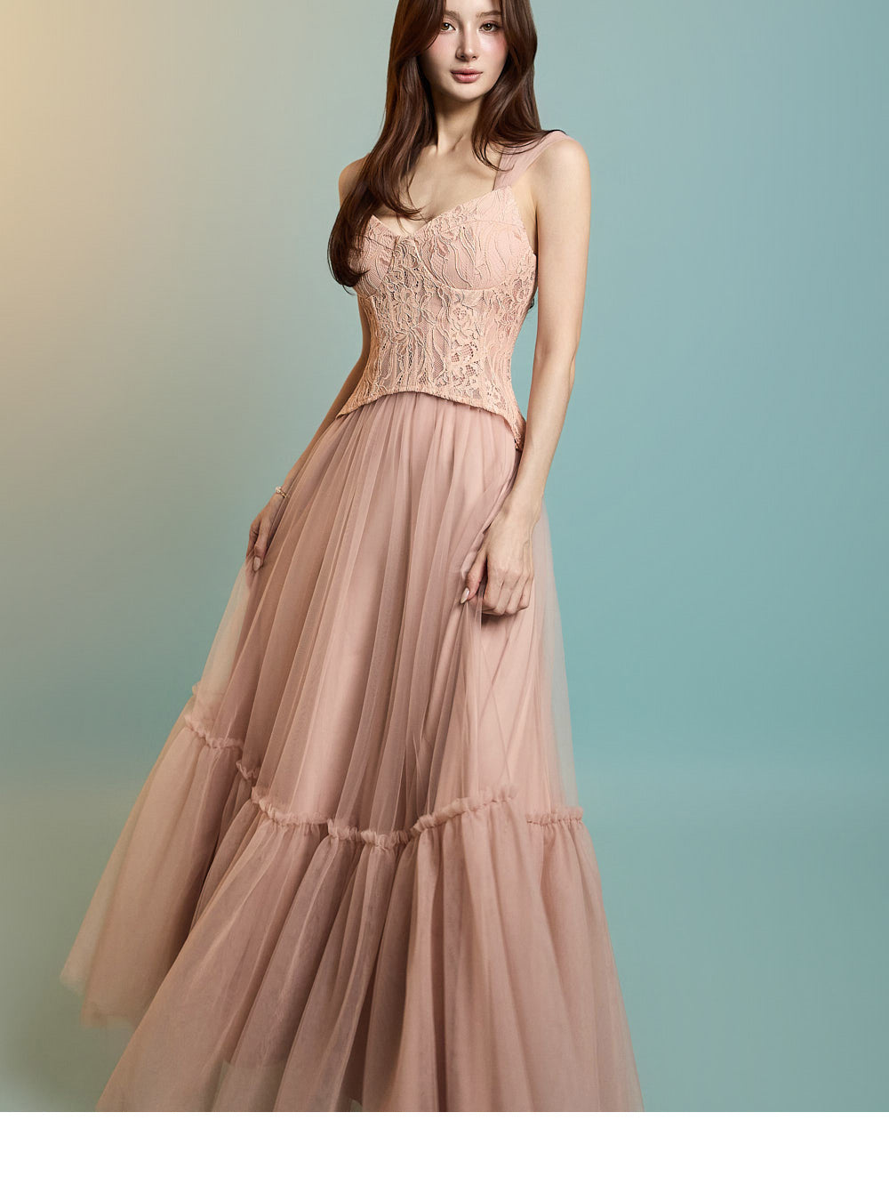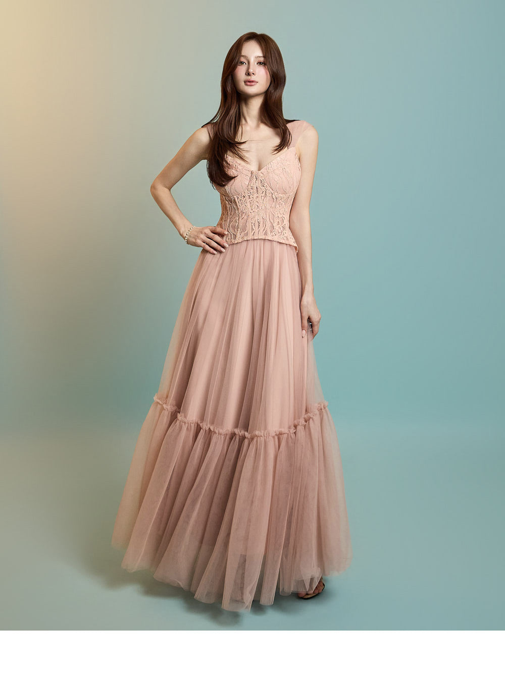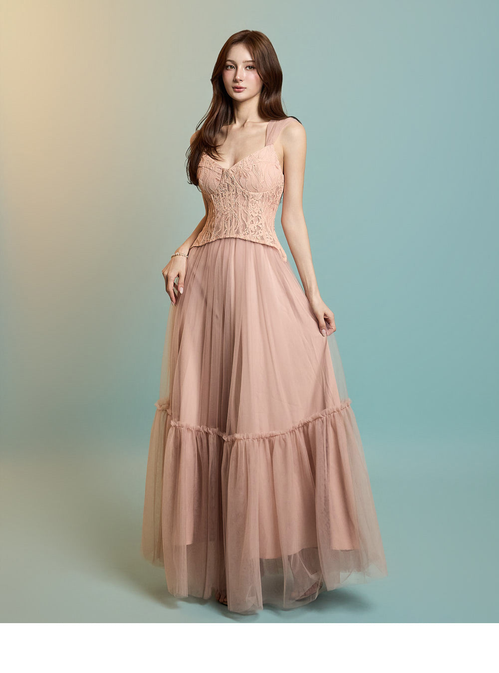 紧身胸衣式上衣和层叠薄纱裙营造出优雅