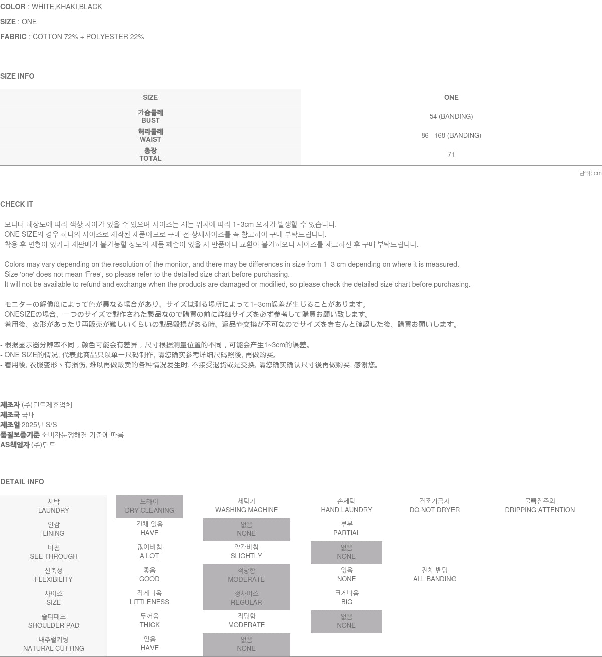 收到退回Dint的商品后,请填写随附的退货申请表,并按照收到时的包装方式重新包装(塑料袋、衣架、按金额赠送)。然后将其寄回Dint。
