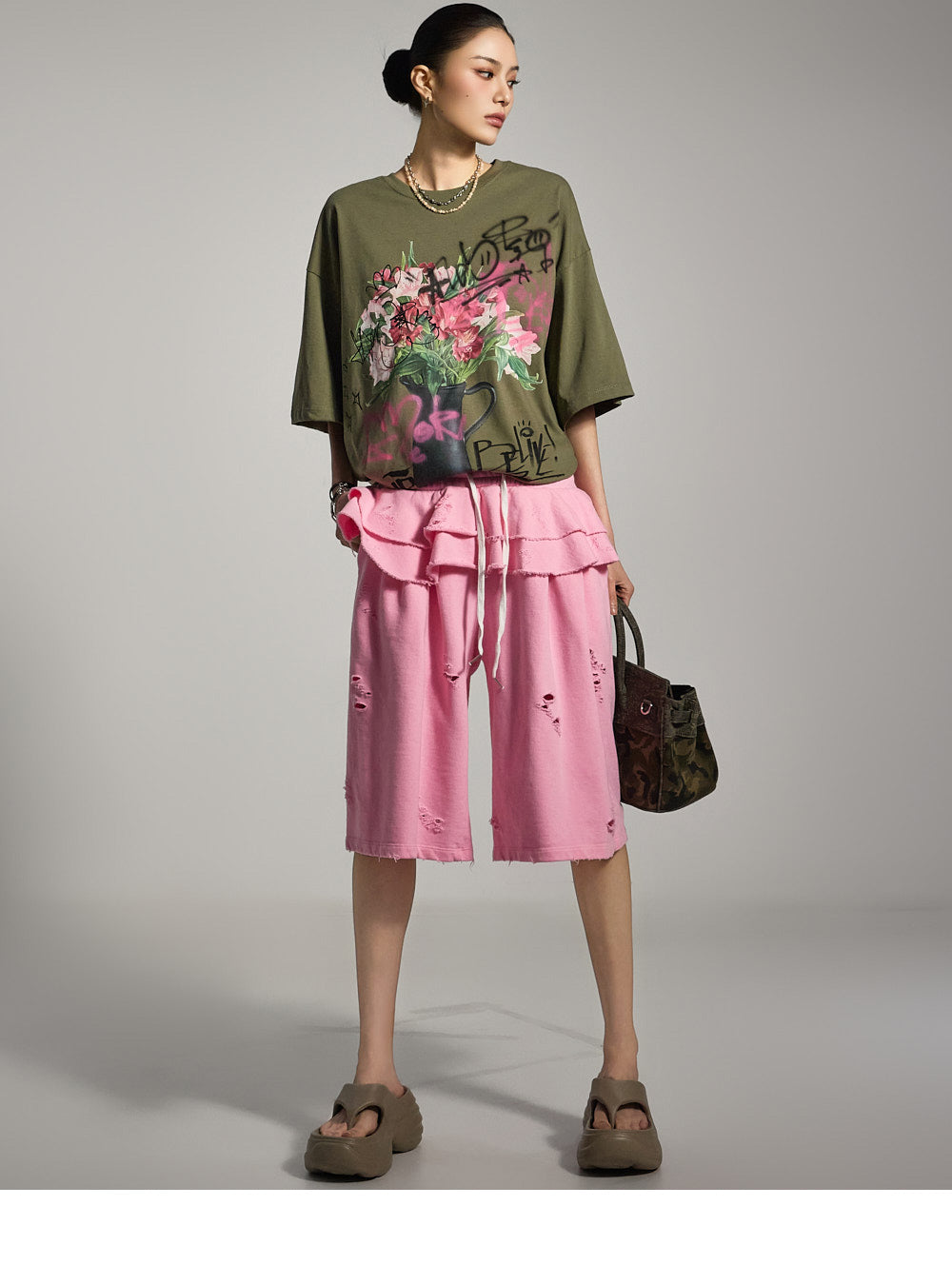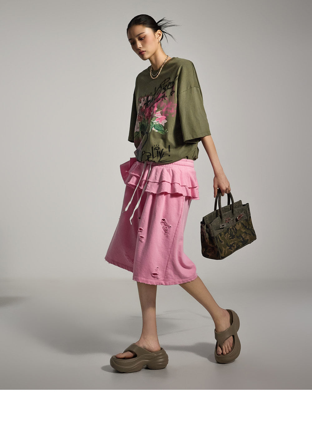 正面的印花细节增添了休闲气息。