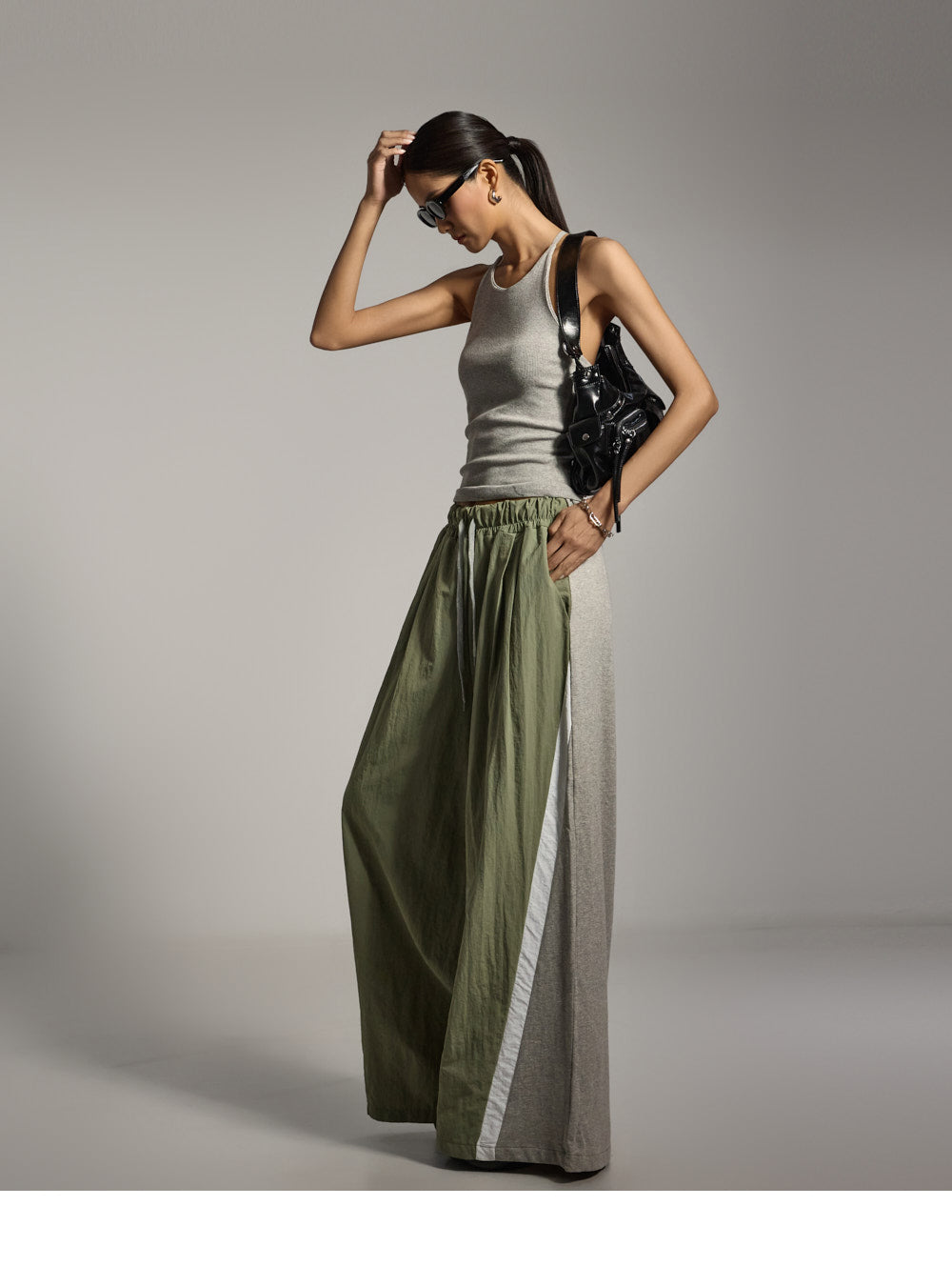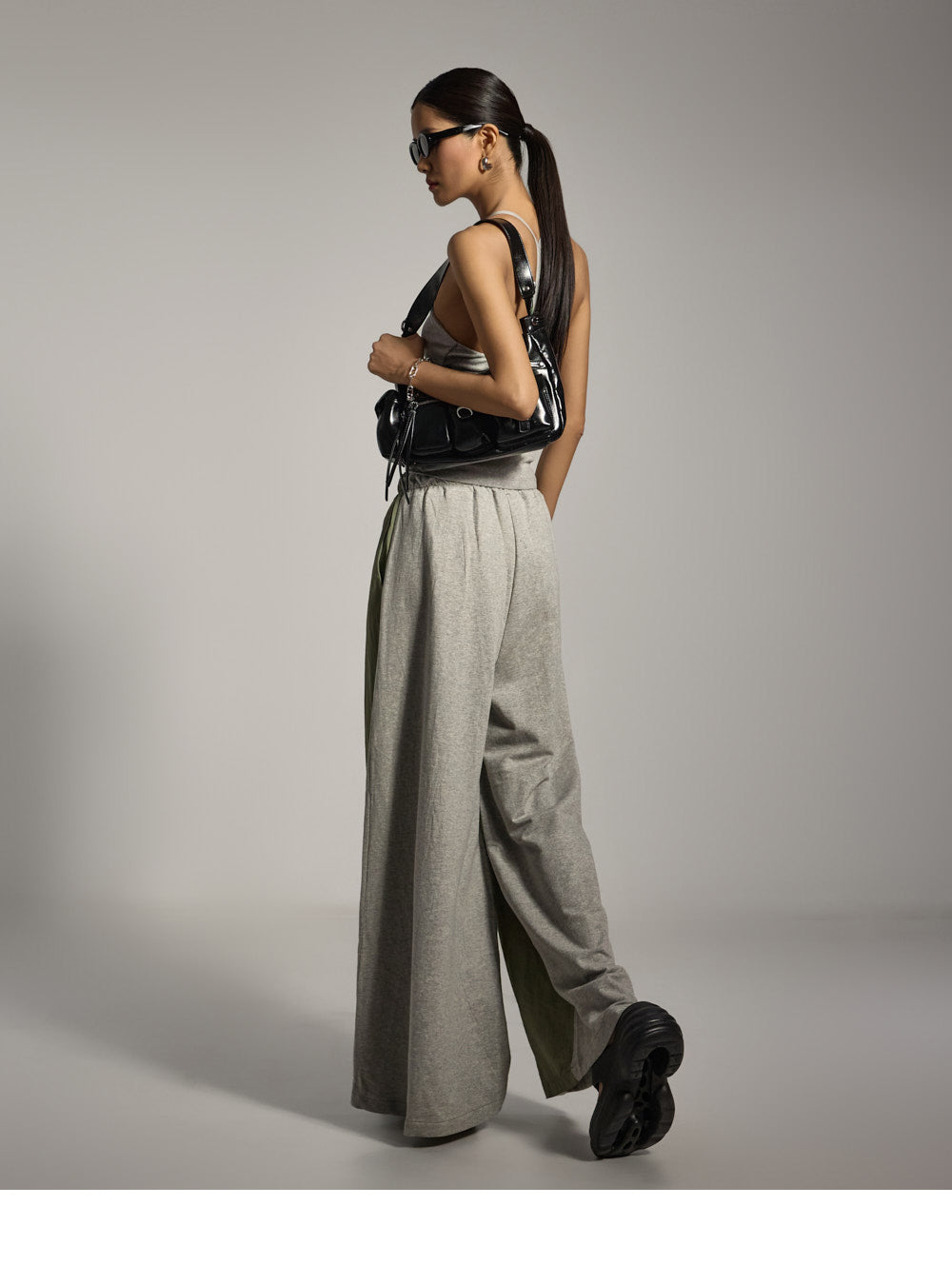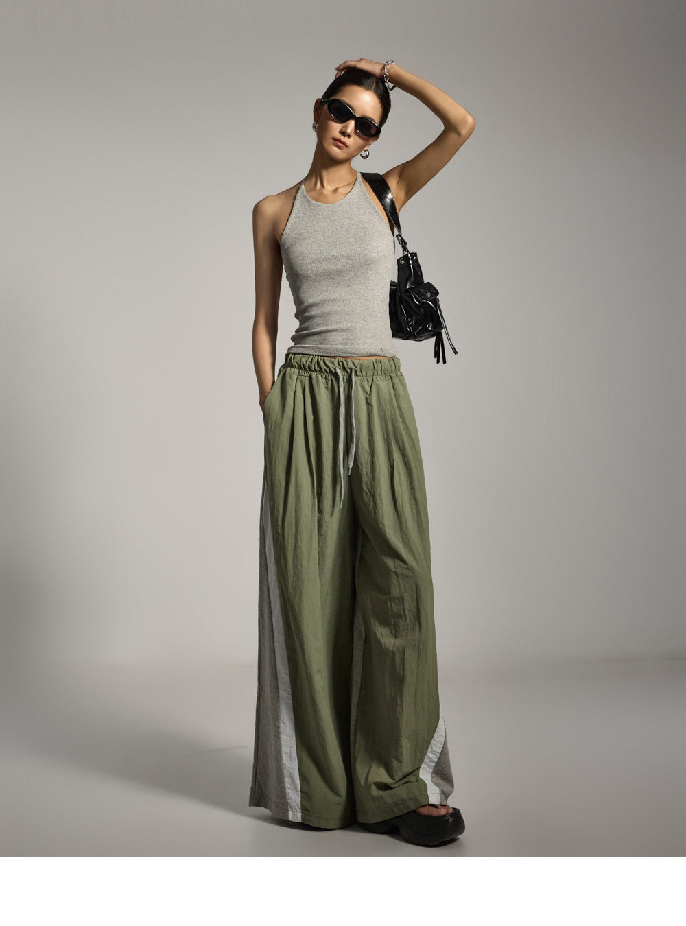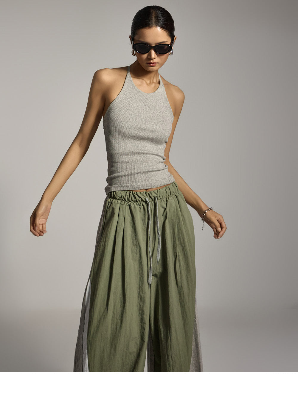 模特身高 173 厘米,穿均码灰色衣服。