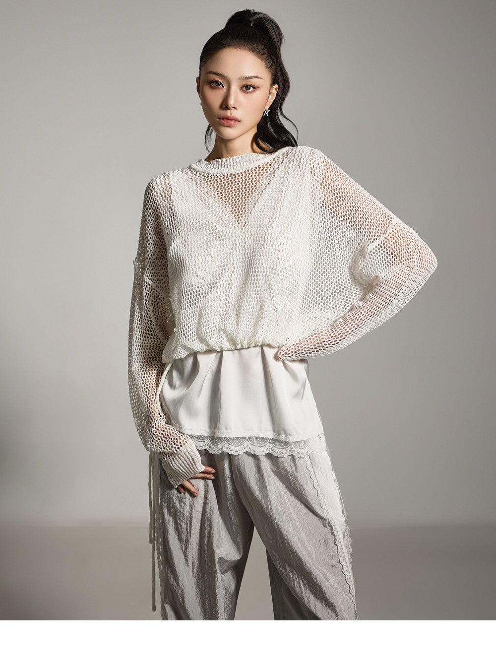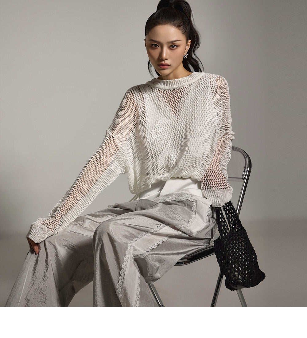 模特身高 171 厘米,穿着均码的象牙色衣服。