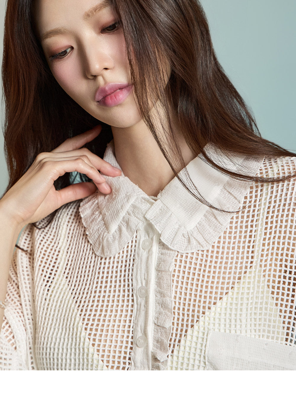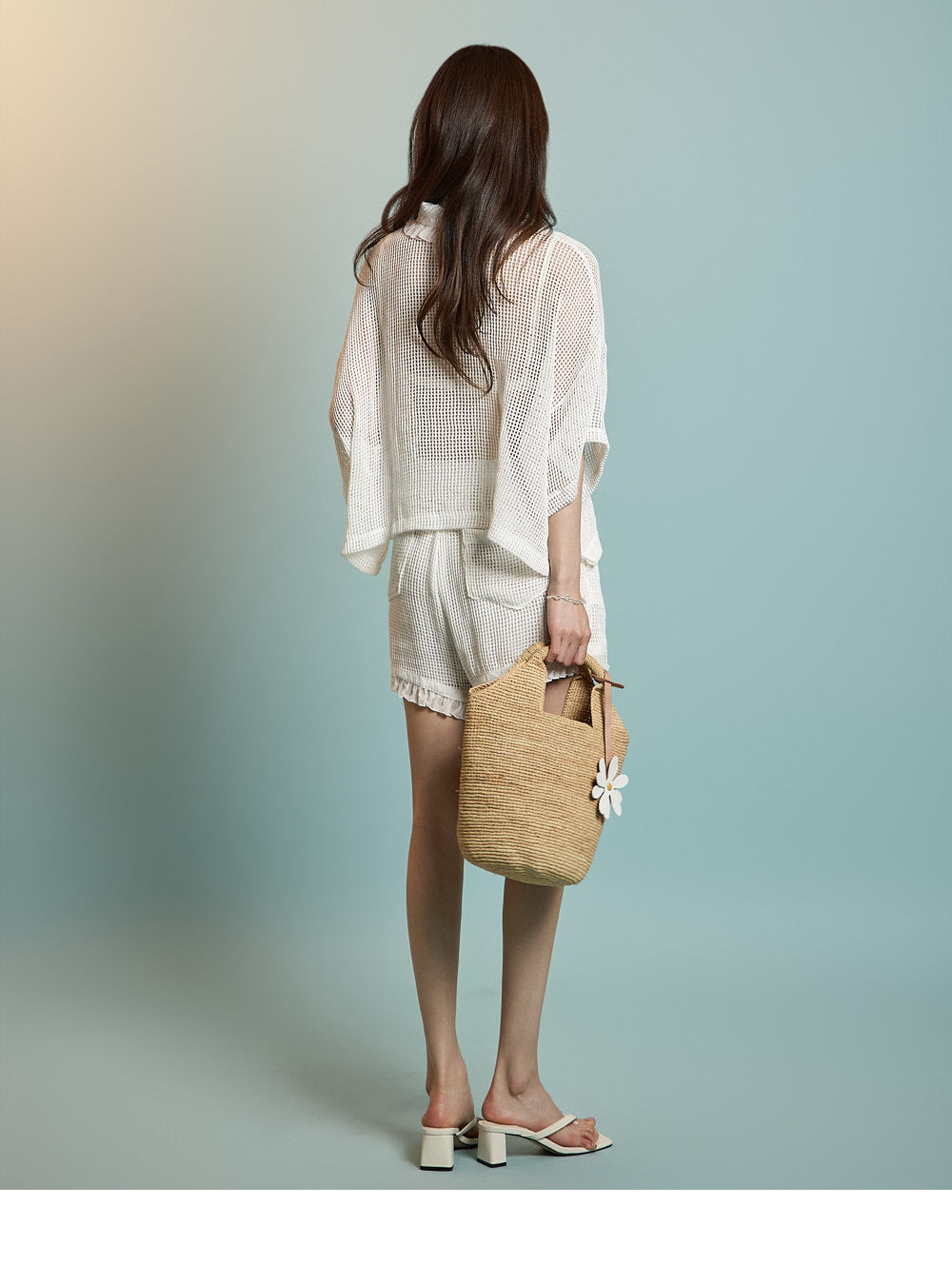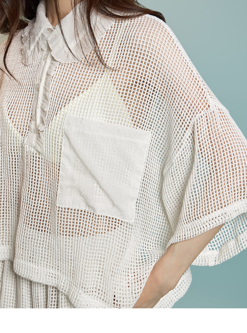 宽松的版型和网状面料营造出宽松自然的轮廓,