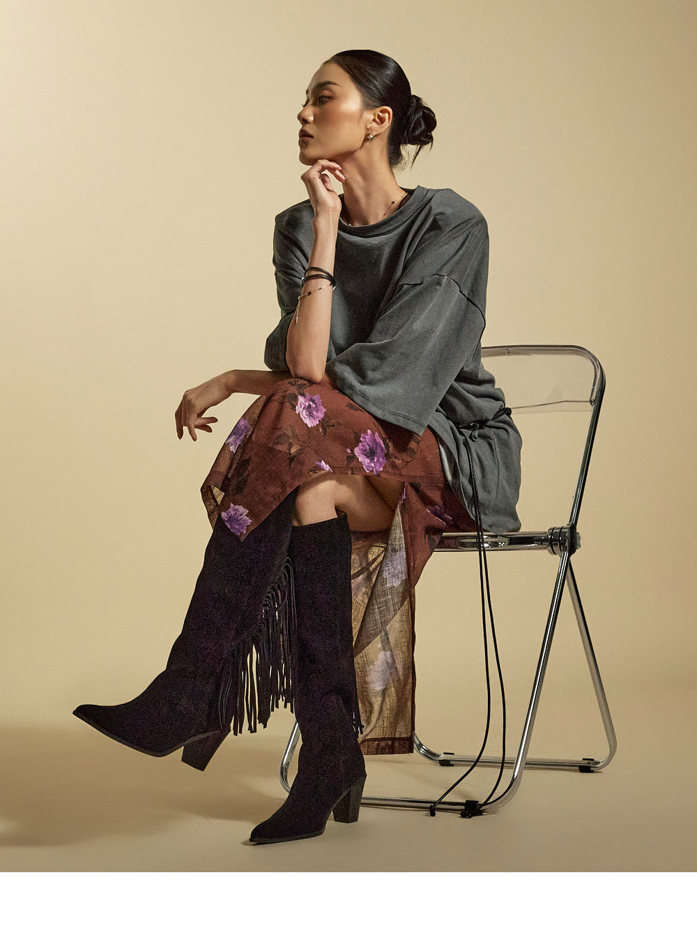 Model is 171CM tall, wearing ONE size in CHARCOAL.