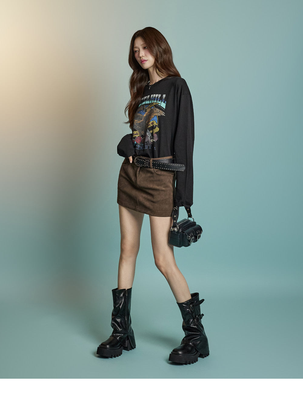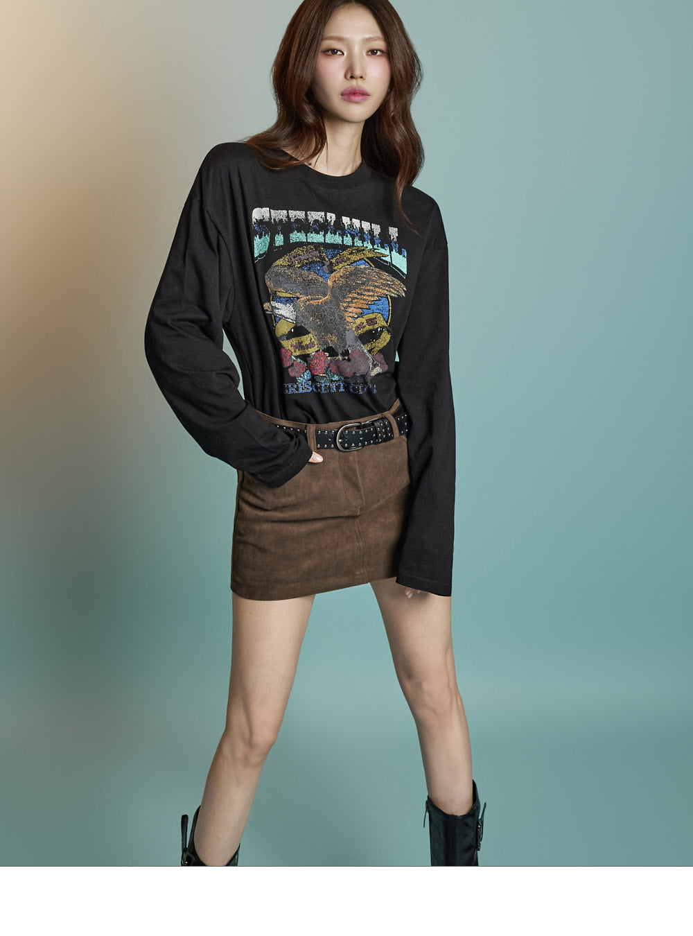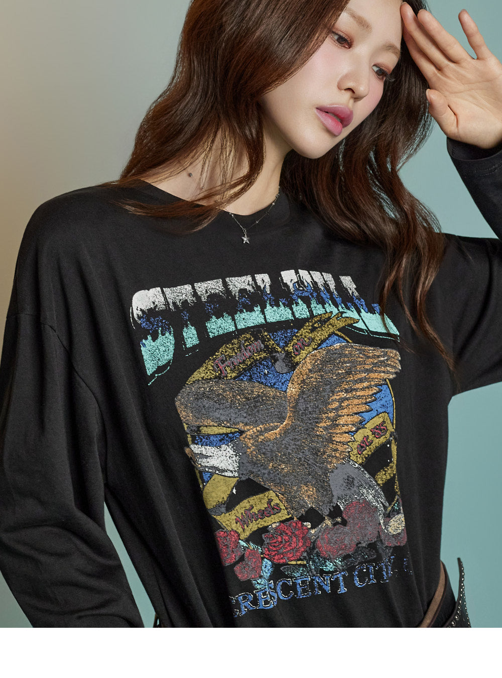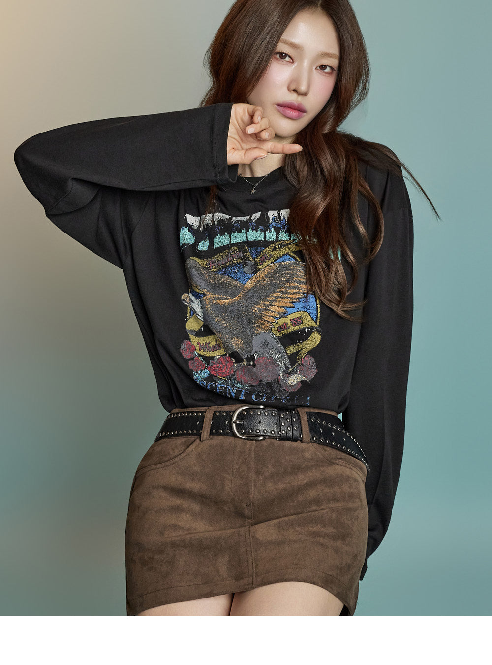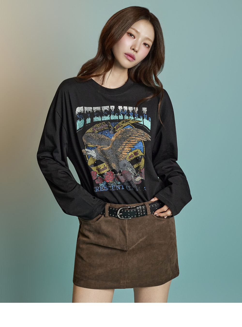 With a loose fit and long sleeves, it creates a relaxed silhouette.