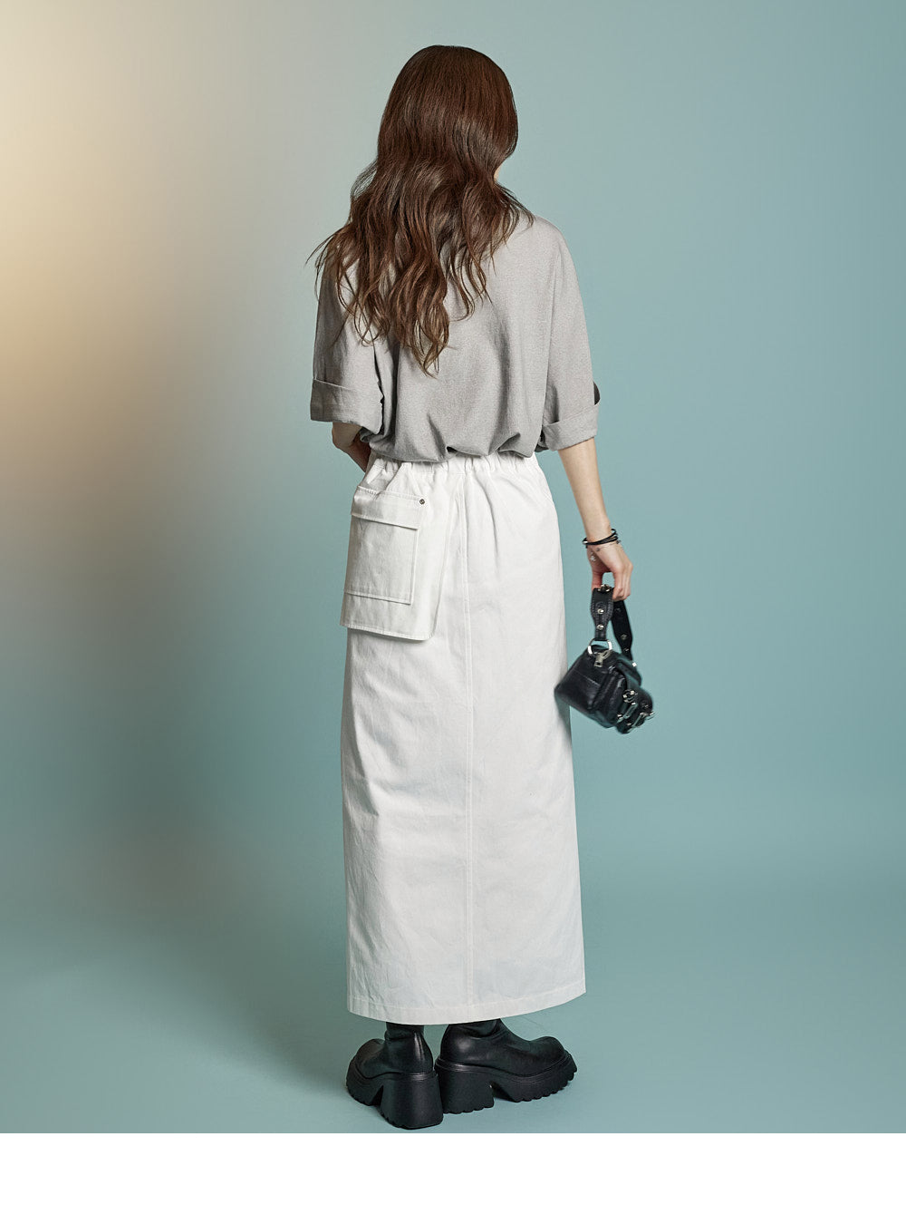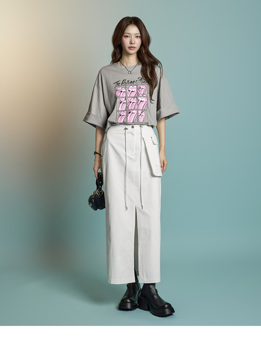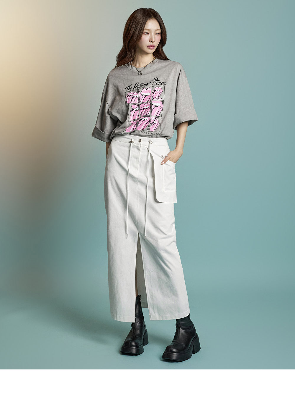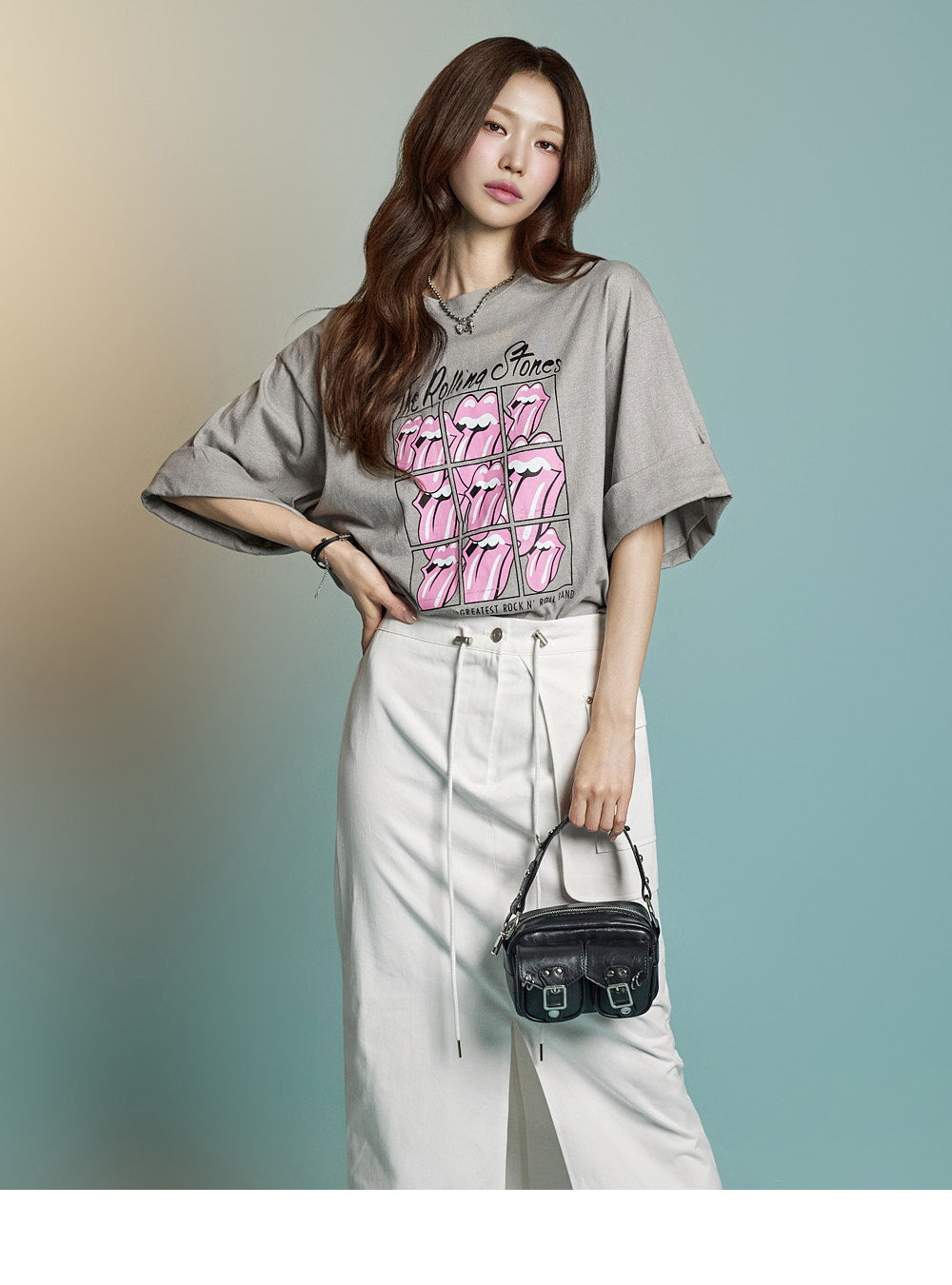 while rolled sleeve details create a natural look.