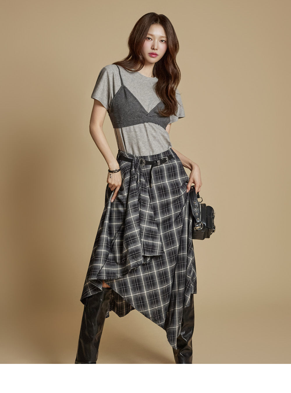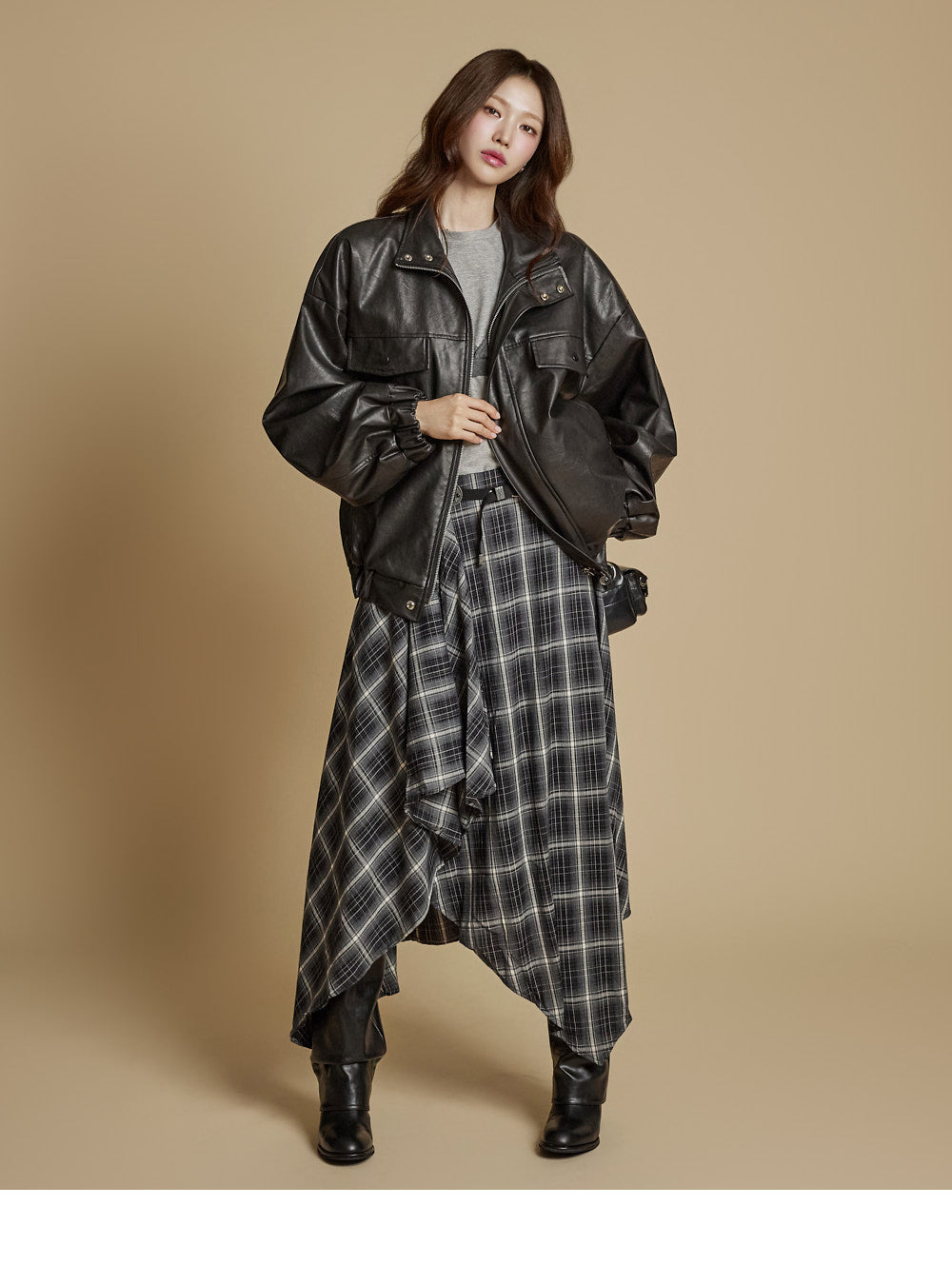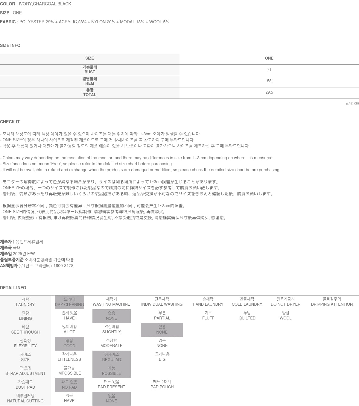 The model is 171cm tall and wears ONE size in charcoal.